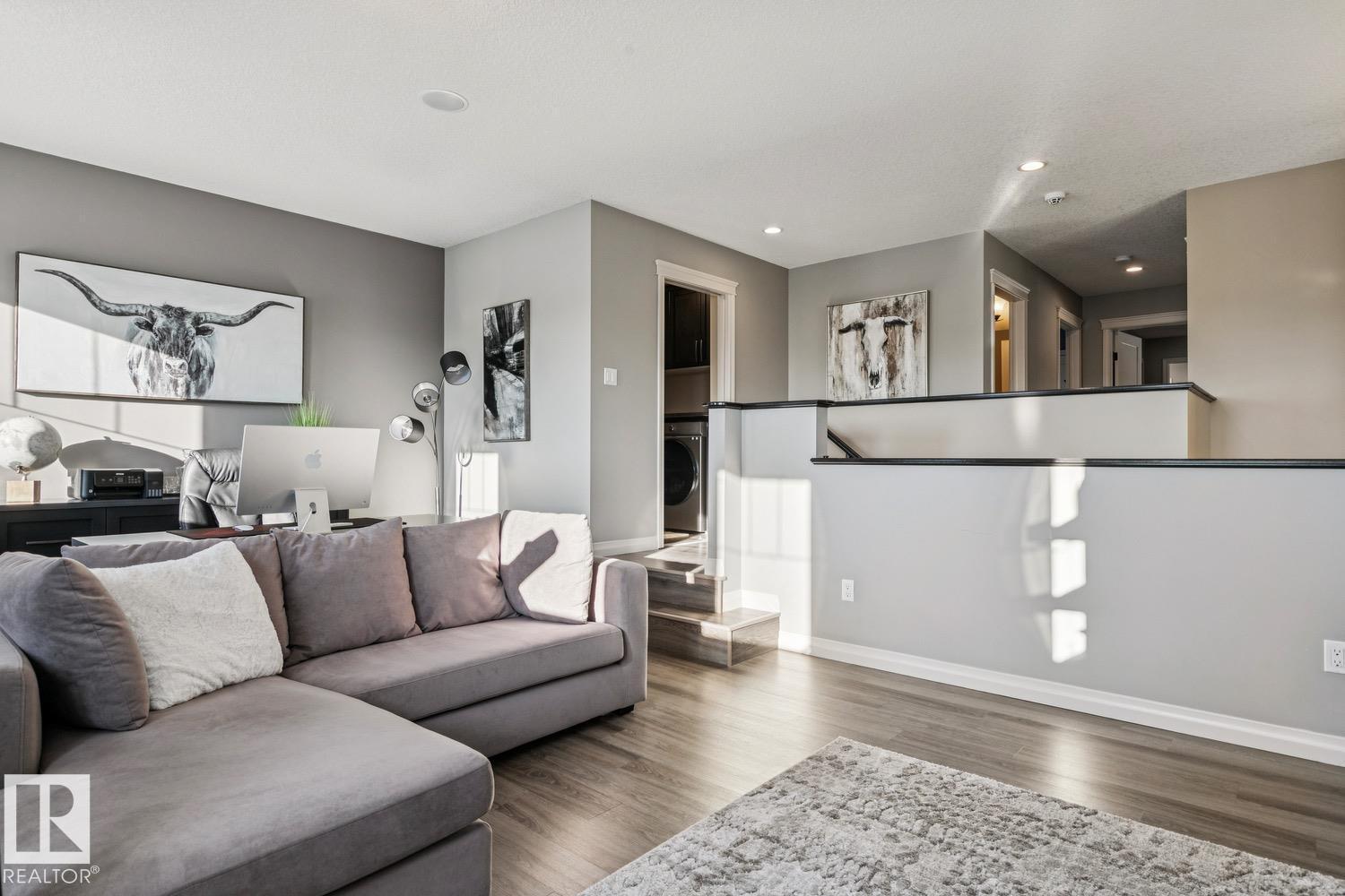 Absolutely gorgeous family home located in the great community of Allard! This 2590+ sqft, FULLY FINISHED 2-storey is loaded with upgrades and will certainly impress. The main floor welcomes you with a very open floor plan, lavish kitchen w/s.s. appliances and granite counters, bright living area w/beautiful gas fireplace, and large dining area. Upstairs you will find the spacious primary suite complete w/5-pc ensuite and walk-in closet, 2 additional good sized bedrooms, additional 5-pc bath, laundry and huge bonus area. The FULLY FINISHED lower level offers an awesome rec area complete w/gorgeous bar, 4th bedroom, 3-pc bath and plenty of storage space. Outside you will enjoy the beautifully landscaped yard and large patio. Central A/C, garage heater, built-in speakers, irrigation system, and more! Located close to schools, shopping and other amenities. Completely turnkey family home in a vibrant community! (id:6769)