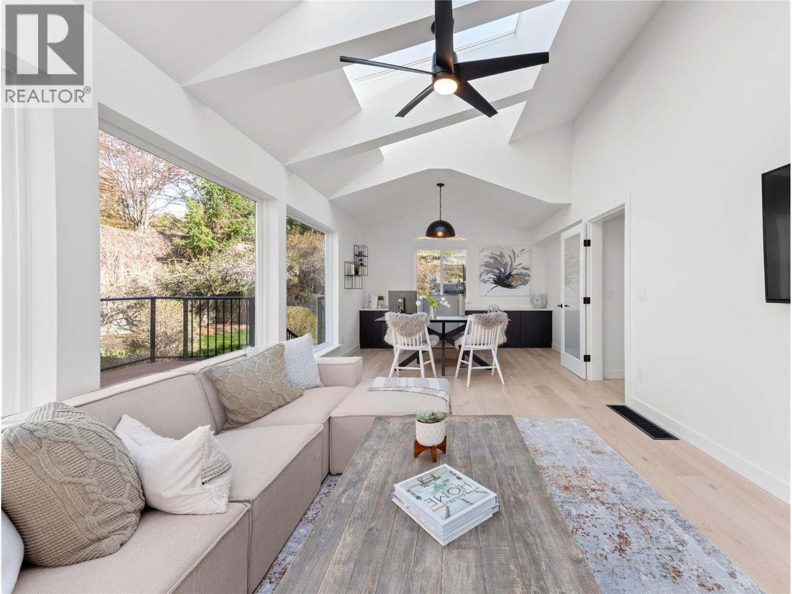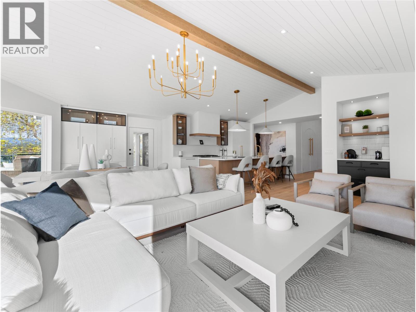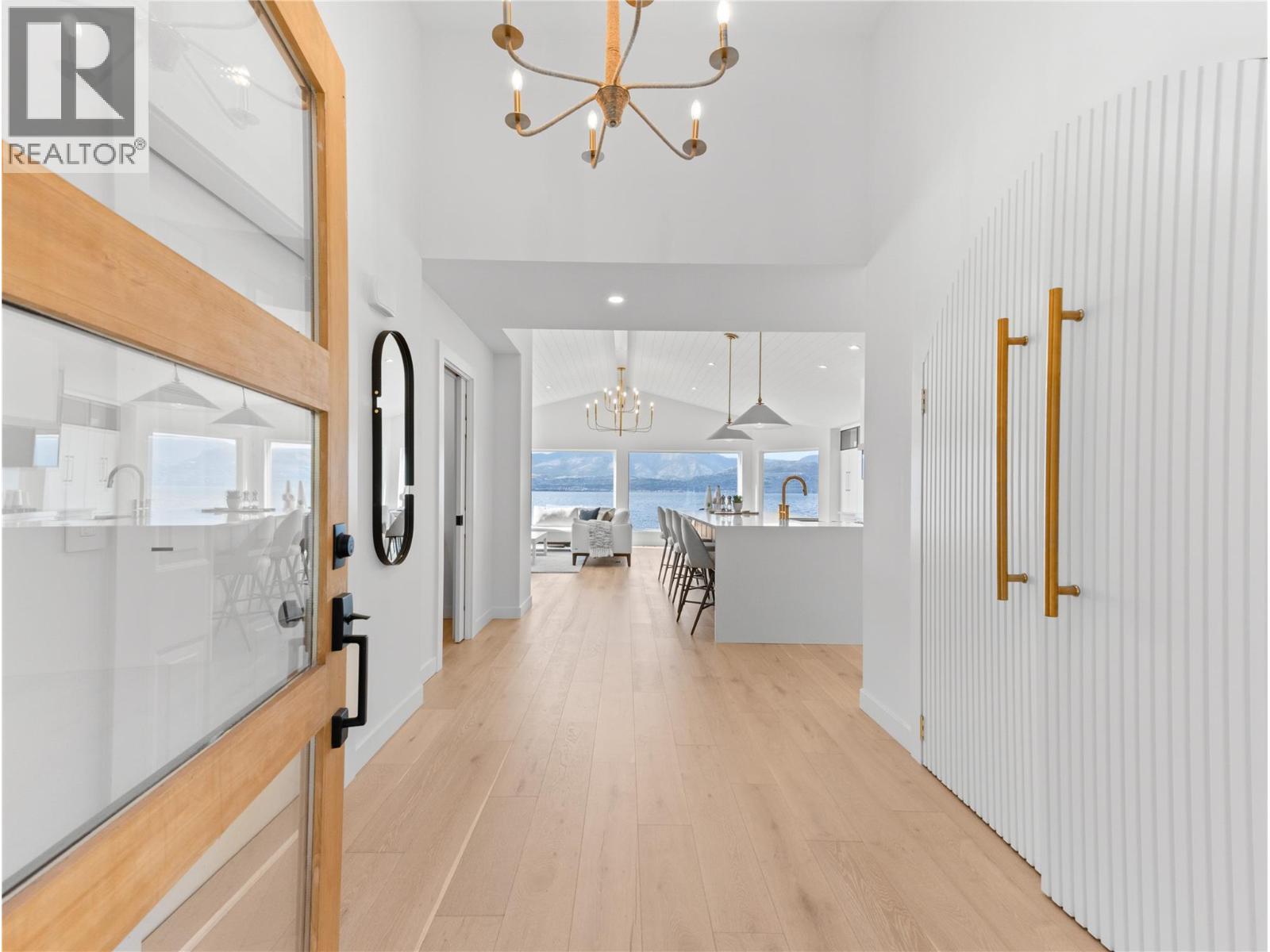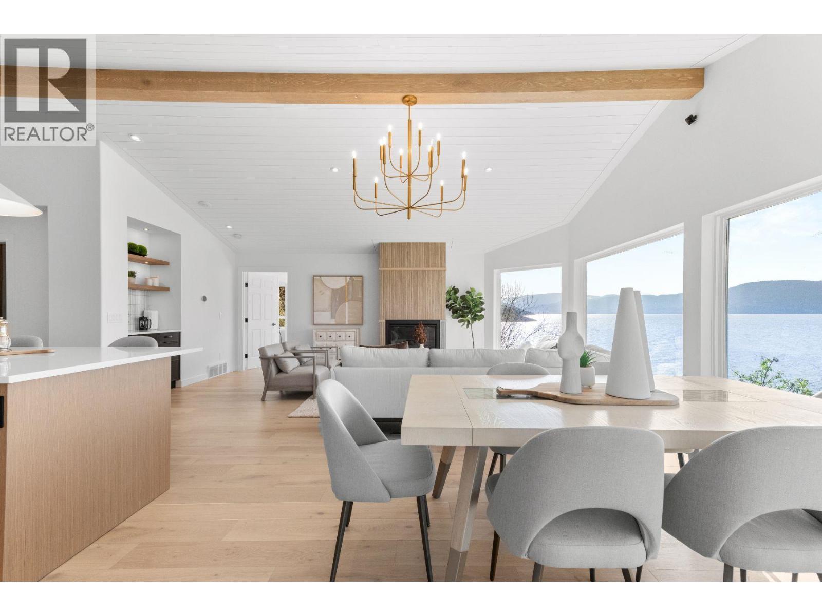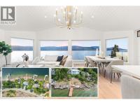 Exquisitely renovated waterfront residence in Kelowna’s prestigious Upper Mission, offering approximately 98 ft of lakeshore with coveted deep water moorage and panoramic lake views. Set on a 0.43 acre lot with a gentle slope to the shoreline, this property combines privacy, natural beauty, and exceptional outdoor living. The main level is professionally curated for seamless one-level living, featuring an open-concept layout enhanced by vaulted ceilings, exposed wood beam accents, shiplap and expansive picture windows that frame the lake and valley views. The chef-inspired kitchen is appointed with premium JennAir appliances, including 6-burner gas range, panelled fridge/freezer, waterfall quartz island, and custom cabinetry. The primary suite offers sweeping 180-degree lake views, a walk-in closet, and spa-inspired ensuite complete with glass shower, freestanding soaker tub, double vanity, and heated smart toilet. The walk-out lower level features spacious games room with pool table, wet bar, and seating area all complemented by floor-to-ceiling windows capturing the lake views. Also, two additional bedrooms, media room, and infrared sauna. Outdoor living is elevated with patio areas, hot tub and outdoor shower. A lakeside change room with half bathroom and second laundry enhances convenience after enjoying the waterfront. Ideally located just minutes from CedarCreek Estate Winery, hiking and biking trails, and the amenities of Upper Mission and Kettle Valley. (id:6769)