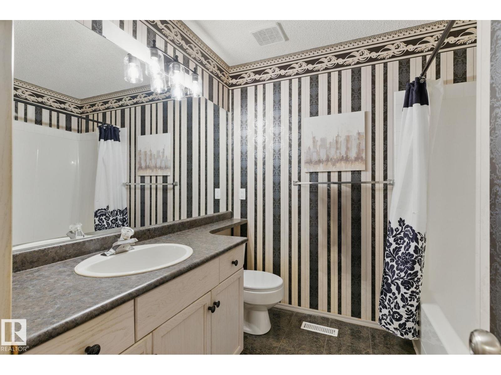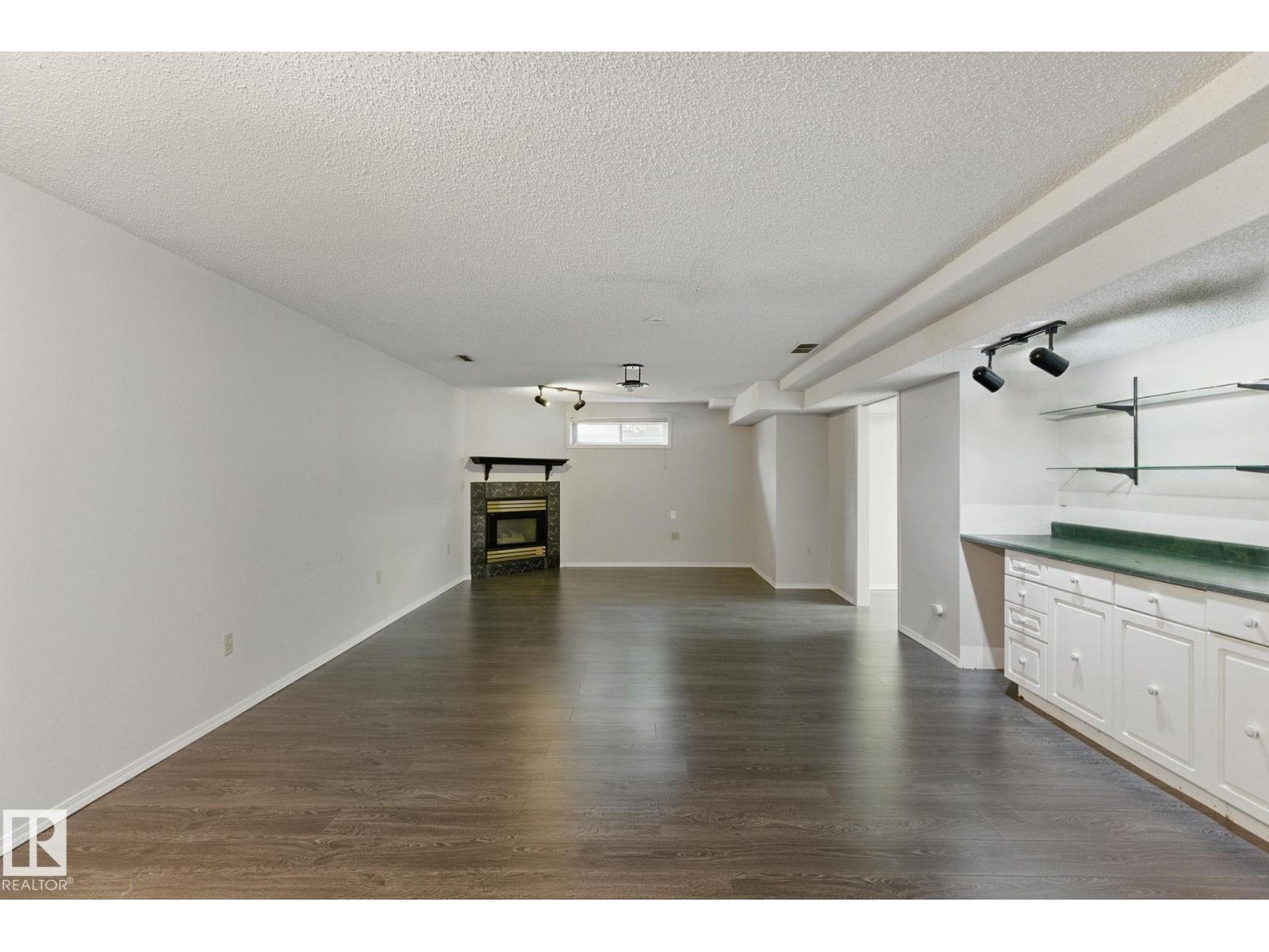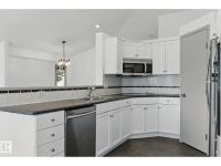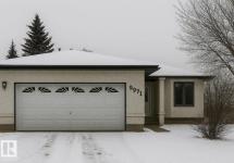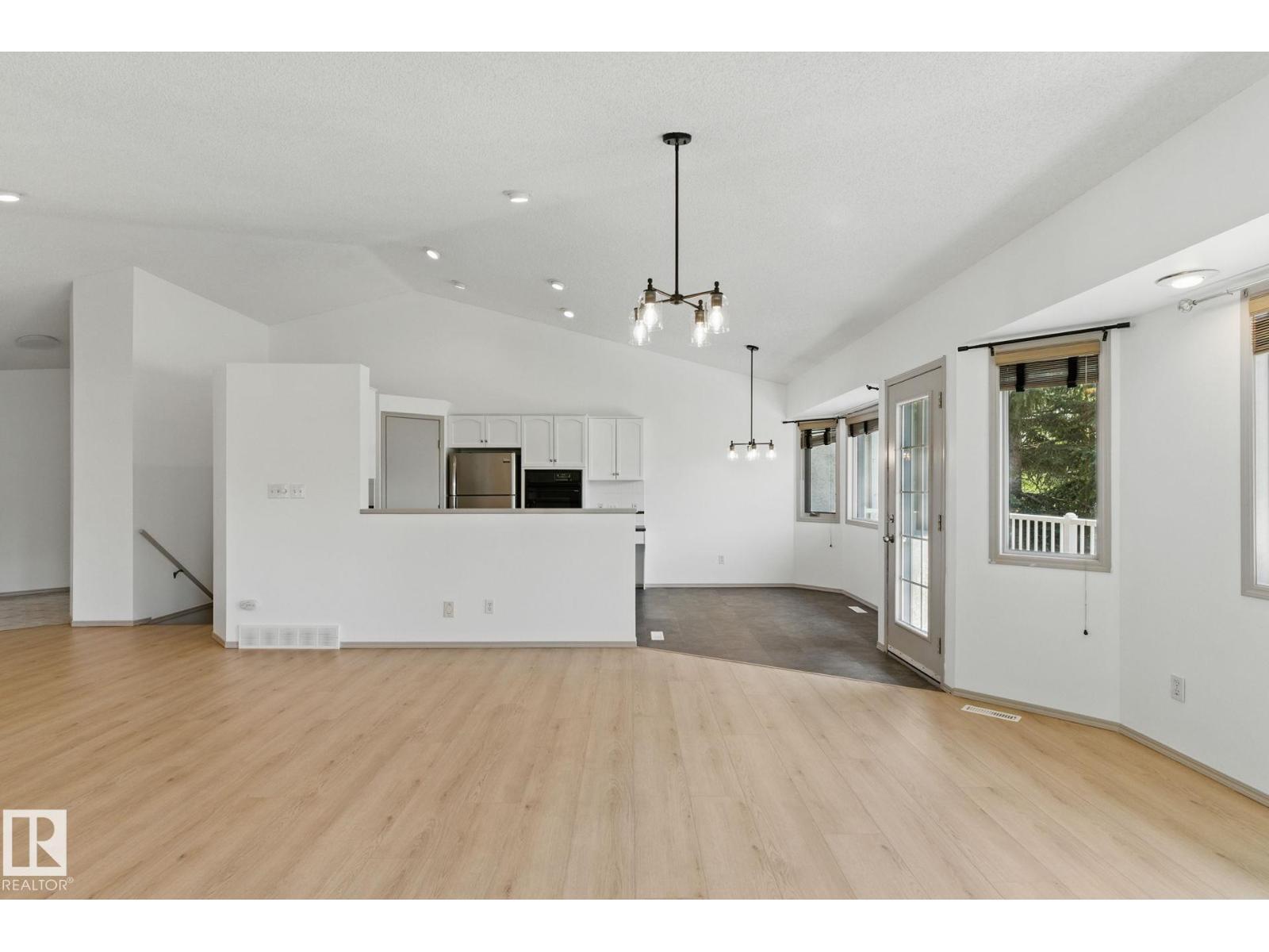 Elegant and spacious 3 bed, 3 bath executive bungalow located on a quiet cul-de-sac backing onto a park. This bright, open-concept home features vaulted ceilings, hardwood and tile flooring, and two gas fireplaces. The large kitchen offers a corner pantry, built-in oven, countertop stove, and garburator. Main floor laundry, central vac, and a deck with views of mature trees add everyday convenience. The fully finished basement includes a 3rd bedroom with walk-in closet, a full bath, family room with wet bar and fridge, games/office space, hobby nook, and ample storage. Double attached garage and no condo fees help keep monthly costs low. Previous owners completed quality upgrades throughout. Walking distance to transit, parks, schools, and close to golf, the Garrison, YMCA, Northgate, Namao Centre, and Hwy 28. A rare opportunity to own a beautifully finished home in a prime location! (id:6769)