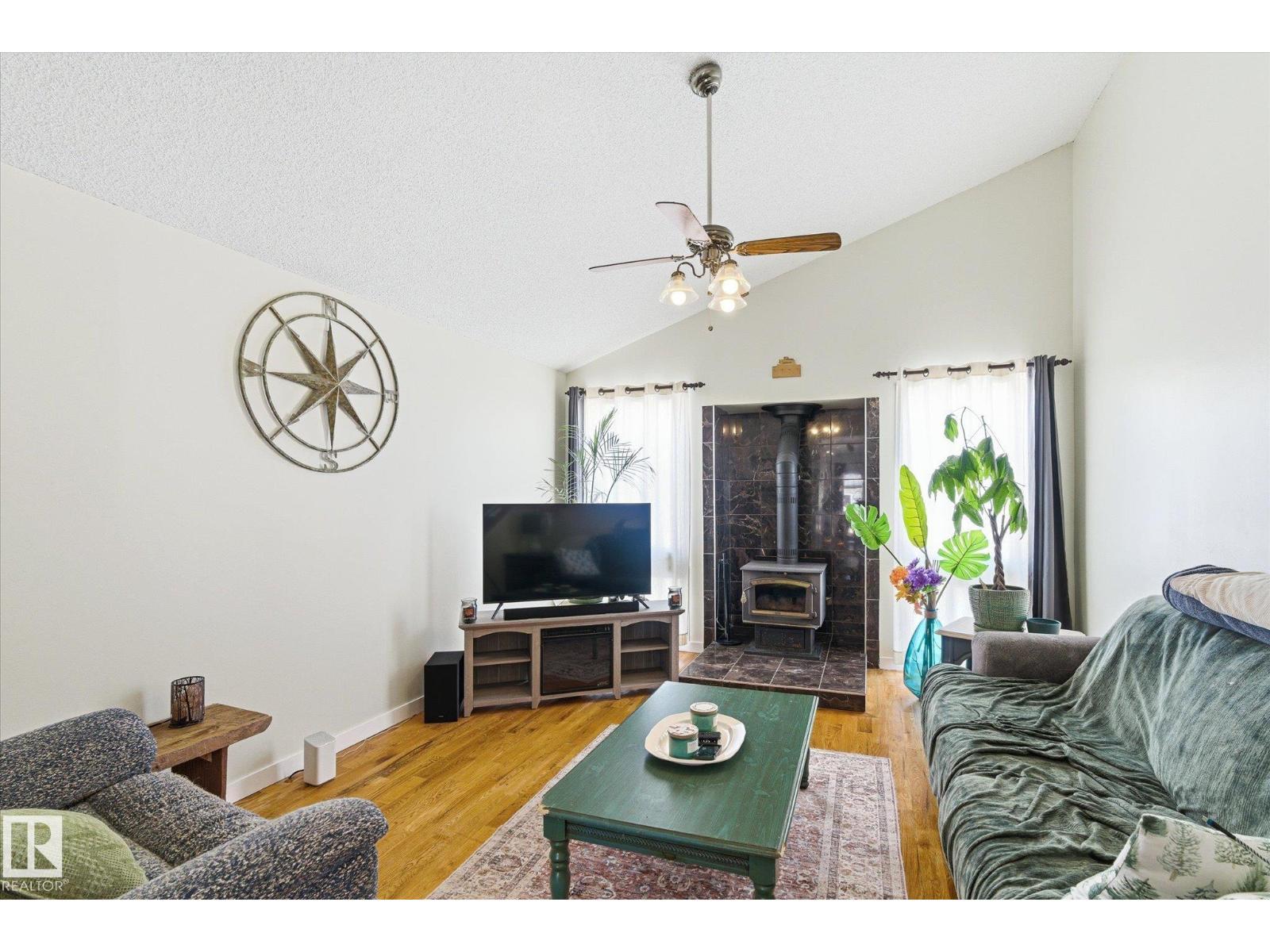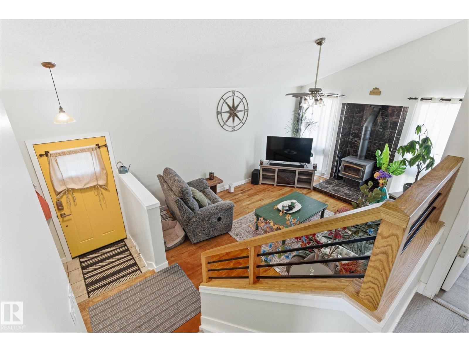 Located in the charming town of Gibbons, just 25 minutes north of Edmonton, this beautifully renovated four-level split offers space, comfort, and a functional family layout. The main living area features vaulted ceilings and a cozy wood-burning fireplace, creating a warm and inviting space to relax or gather with friends and family. With 4 bedrooms and 2 bathrooms, there’s plenty of room for growing families. The partially finished basement offers flexibility for a rec room, home gym, or additional living space. Outside, enjoy a large deck with a natural gas BBQ hookup and a backyard firepit area perfect for entertaining. A double detached heated garage adds comfort and convenience for Alberta winters. Move-in ready and located in a welcoming community. (id:6769)