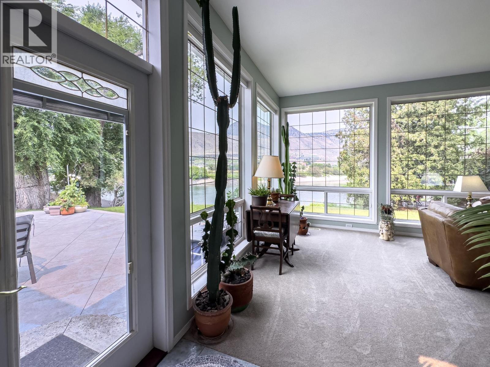 Over 100’ of South Thompson River frontage with a private dock, private beach, and unobstructed sunset views—just minutes from downtown Kamloops. This is a rare opportunity to secure true in-town waterfront with full summer moorage in one of the river’s most desirable stretches. The 2,600+ sq.ft. rancher offers a bright, functional layout with 3 bedrooms and 2 bathrooms, designed to maximize natural light and showcase the river from the main living areas. Expansive windows frame the water and mountain backdrop, while the open-concept kitchen and living space flows seamlessly for everyday living and entertaining. An additional dining or sitting area with fireplace provides flexible use. Multiple outdoor spaces—including a concrete patio off the main living area and a dedicated sunset-viewing patio—offer distinct vantage points to enjoy the setting. The landscaped yard features mature trees, established gardens, and direct access to your private beach and dock. With its combination of frontage, usable waterfront features, and proximity to downtown amenities, this property offers a compelling alternative to larger but more remote riverfront options—an increasingly rare opportunity in the Kamloops market. Buyer to confirm all details if deemed important. (id:6769)