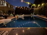 Tucked away on a quiet cul-de-sac, this beautifully updated 4 bedroom plus den and office basement-entry home offers the perfect blend of comfort, style, and functionality. The heart of the home is a stunning kitchen featuring a large island with eat-at bar and 2nd sink, stone countertops, custom paneled fridge, tiled backsplash, gas range, plus 2nd built in oven and convection microwave. Off the kitchen is access to a large deck with natural gas BBQ hookup and pergola with misters - perfect for summer entertaining. Flowing seamlessly from the kitchen is the dining area with 2nd access to the deck and leads to the bright living room complete with built-in cabinetry and a real wood fireplace for cozy winter evenings. Upstairs you'll find two spacious bedrooms, a versatile den, and a sleek 4-piece modern bathroom. The basement adds even more flexibility with a 2 bedrooms, office, 3-piece bathroom, generous rec room, and a well-equipped laundry room with utility sink and storage. Step outside to your private oasis: a heated inground pool, lush greenery, a grassy area for play, underground sprinklers and a handy shed. With ample parking and close proximity to all amenities, this home checks every box for comfortable family living and year-round enjoyment. Brand new HW tank installed January 2026. All meas approx (id:6769)
