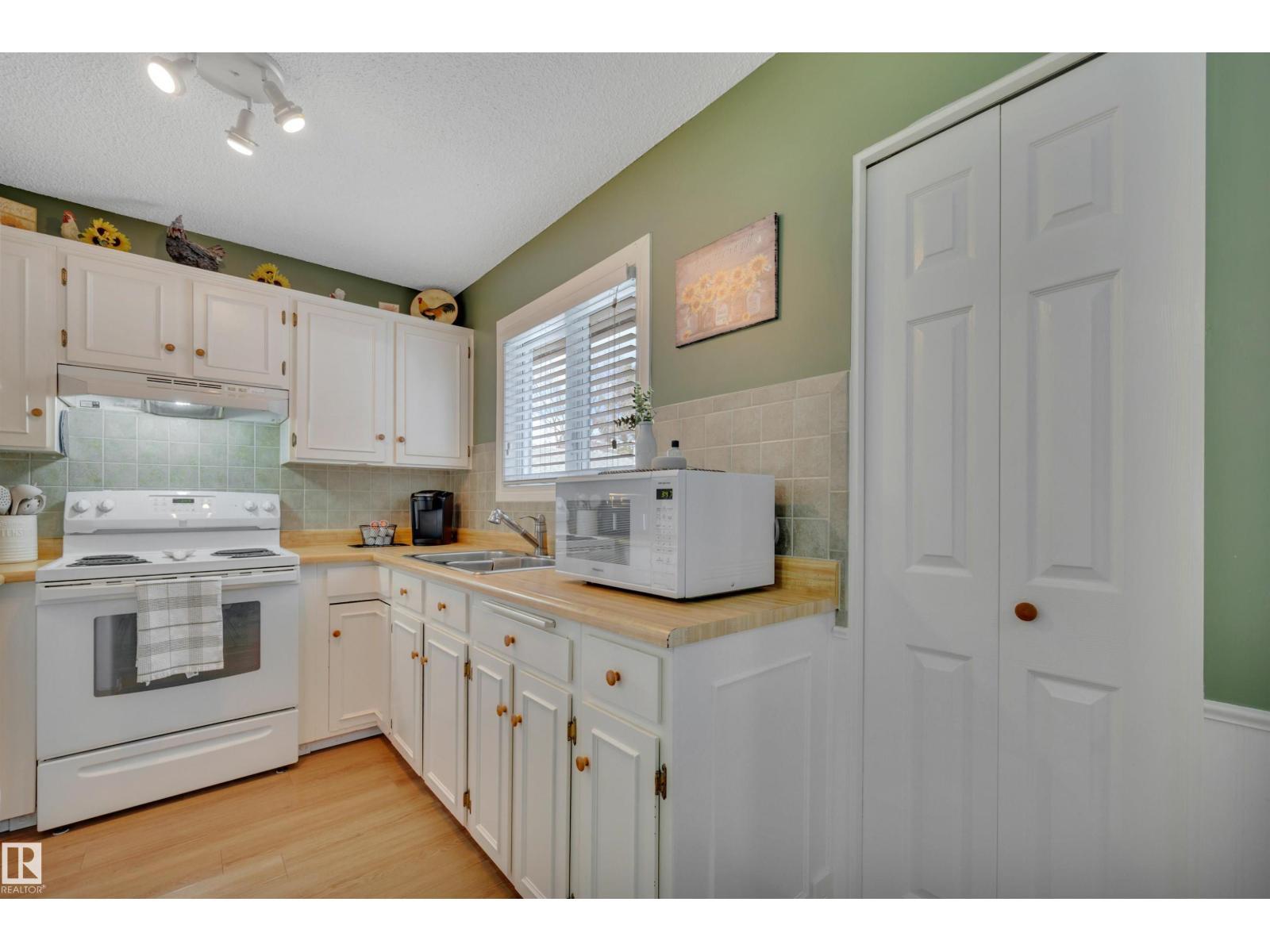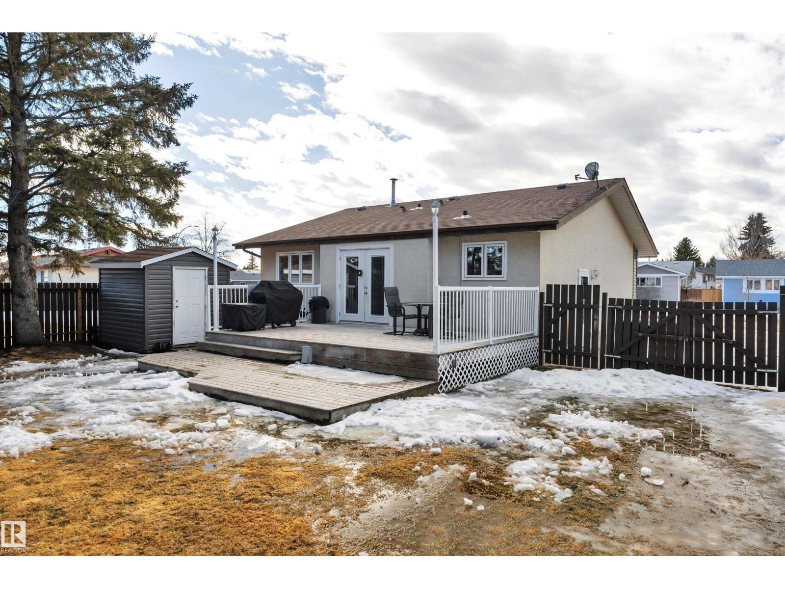 TASTEFULLY UPDATED! BACKS A PARK / GREEN SPACE! RV PARKING! PRIDE OF OWNERSHIP! Searching for move in ready in a terrific neighbourhood with NO NEIGHBOURS BEHIND? This 1010 sq ft 5 bed, 1.5 bath home shows well! Feat: newer vinyl siding, concrete driveway, vinyl windows & doors, paint, lighting, vinyl plank flooring, bathrooms, and more! Well designed main floor provides a spacious living room w/ ample natural light, 3 spacious bedrooms inc the primary bed w/ 2 pce ensuite. Adorable kitchen w/ white cabinets & butcher block countertops, dining & updated 4 pce bathroom. The basement is finished w/ 2 bedrooms, rec room for movie night or play space, & tons of storage space / room to add another bathroom. Your backyard is treed & private, with tons of space for adding a future garage or garden. Large 2 tier deck for summer bbqs, shed, & ample room for bonfires or space for the dogs to run. Steps to playgrounds & nearby schools; the location is superb. An absolute gem, don't miss it! (id:6769)