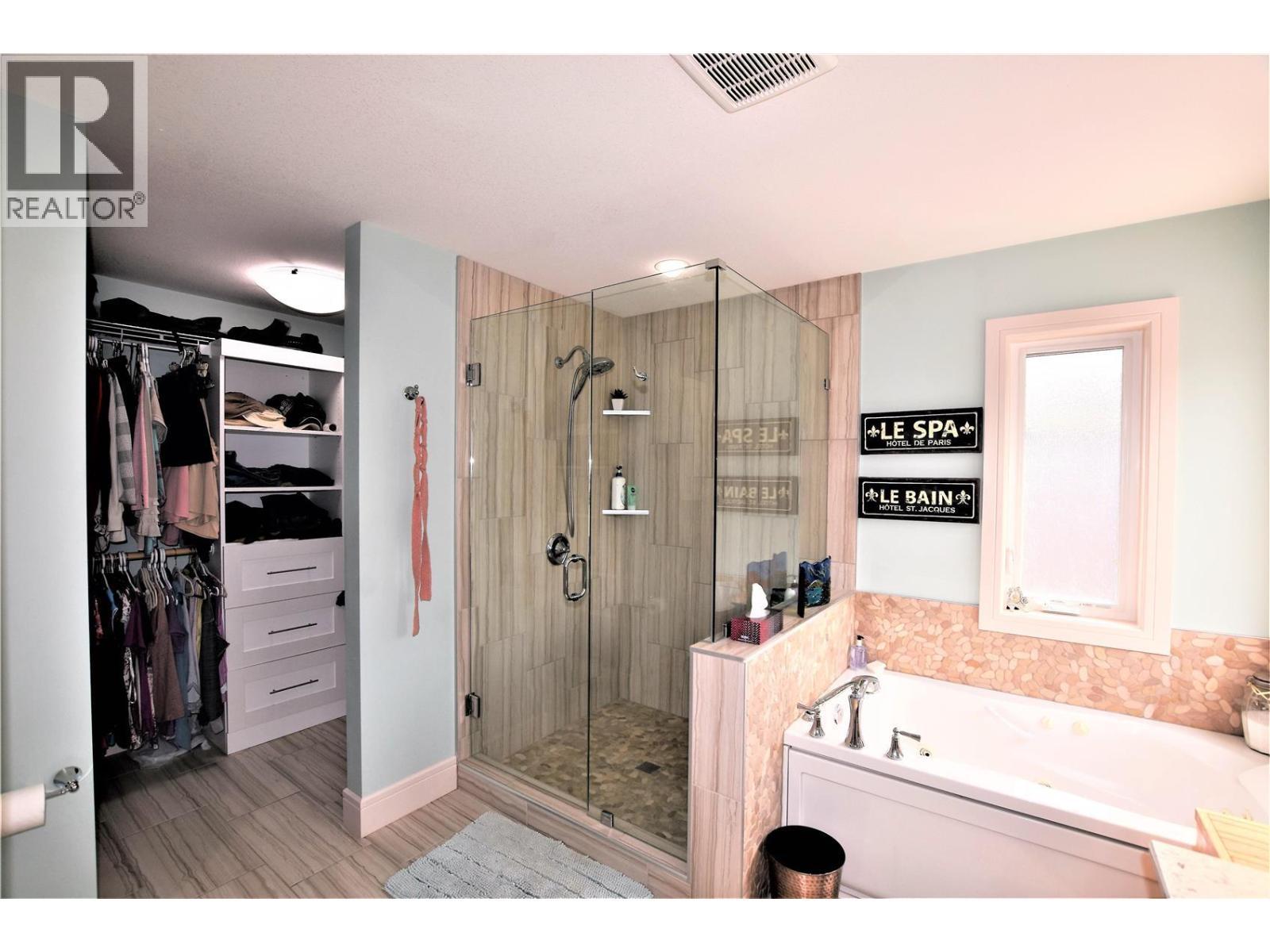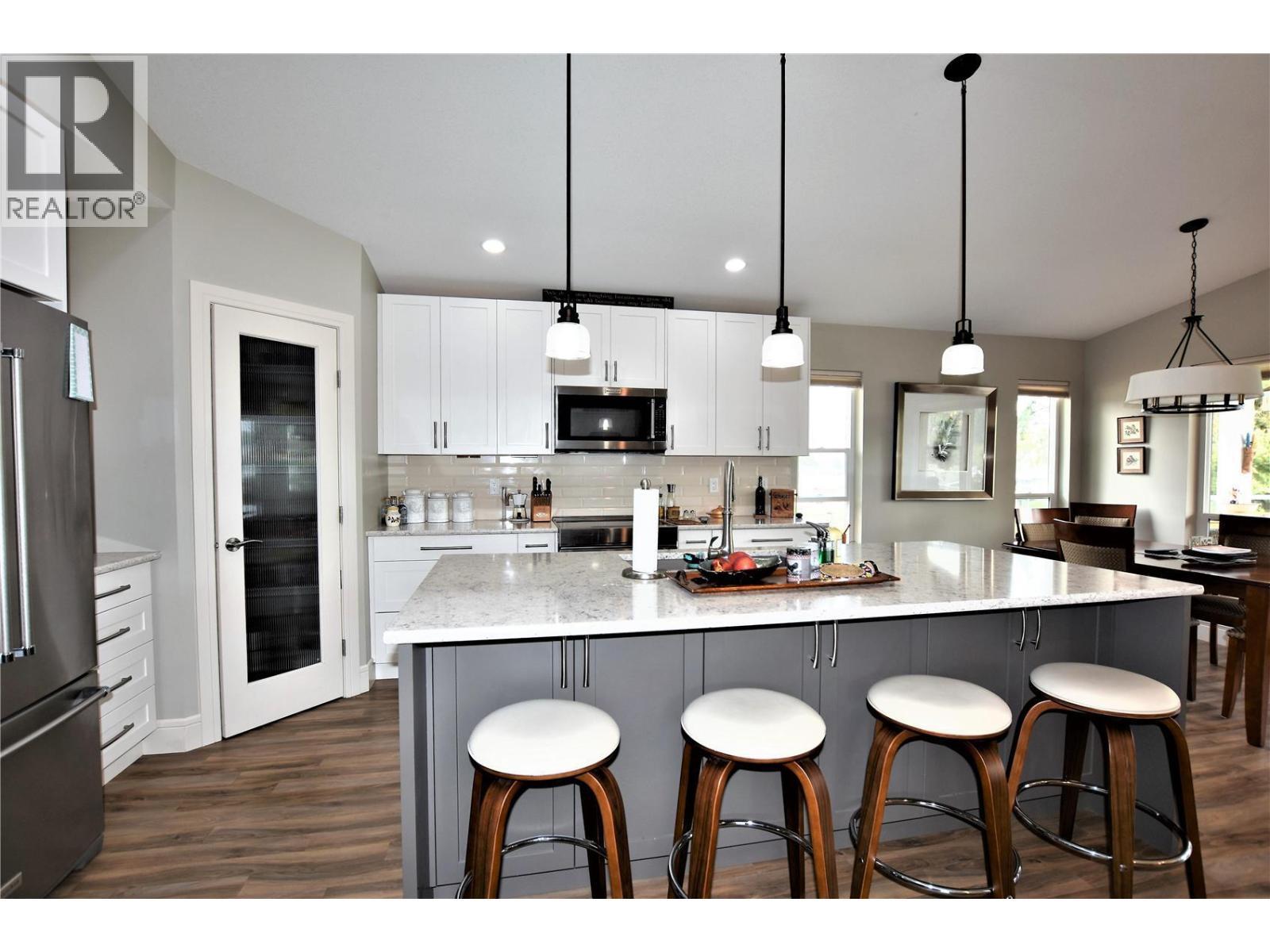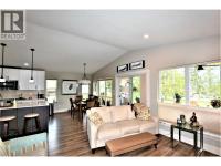 Nestled in the heart of Parker Cove, this stunning 8-year-old home offers the perfect blend of modern comfort and natural beauty. Overlooking dedicated green space and just minutes from the beach, this property delivers an exceptional lifestyle in a peaceful, lakeside setting. The upper level showcases a bright, open-concept living space with vaulted ceilings, expansive windows, and easy-care vinyl plank flooring. The crisp white kitchen is designed to impress, featuring quartz countertops, a spacious island, pantry, and quality stainless steel appliances, including an induction stove. The dining area opens onto a generous 25' x 14' covered deck—an ideal space for relaxing or entertaining while enjoying the serene surroundings. The primary bedroom is a true retreat, offering room for a king-sized suite, a walk-in closet, and a beautifully appointed ensuite with heated floors. This level also includes a convenient laundry area and a 2-piece powder room. Downstairs, you’ll find two additional bedrooms, a full bathroom, and a welcoming family room with direct access to a covered patio—perfect for guests or growing families. Additional features include a double garage, ample parking, sani dump, 30-amp RV plug, underground sprinklers, gas fireplace, and central air conditioning. Located on a registered lease until 2043, with a current annual lease payment of $5159.77. Don’t miss your chance to own this exceptional Parker Cove retreat—where modern living meets the tranquillity of nature. (id:6769)