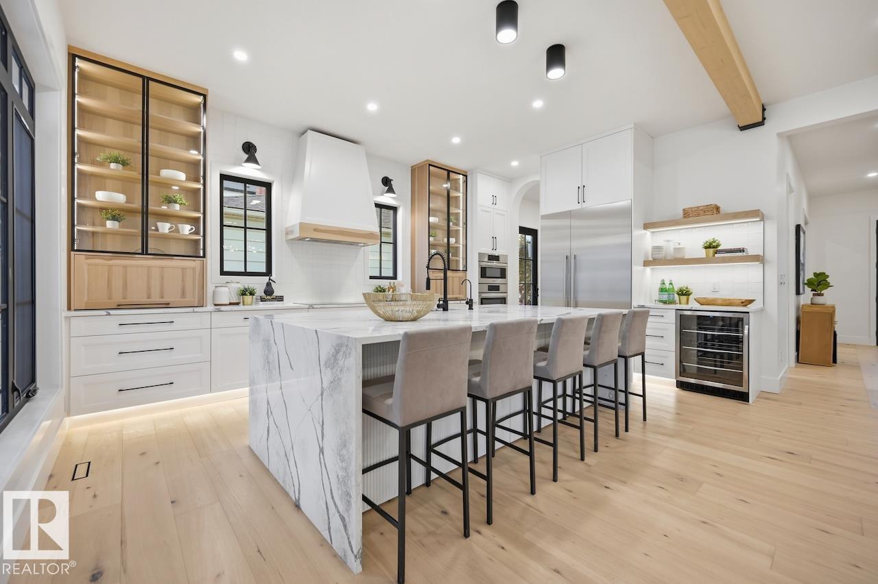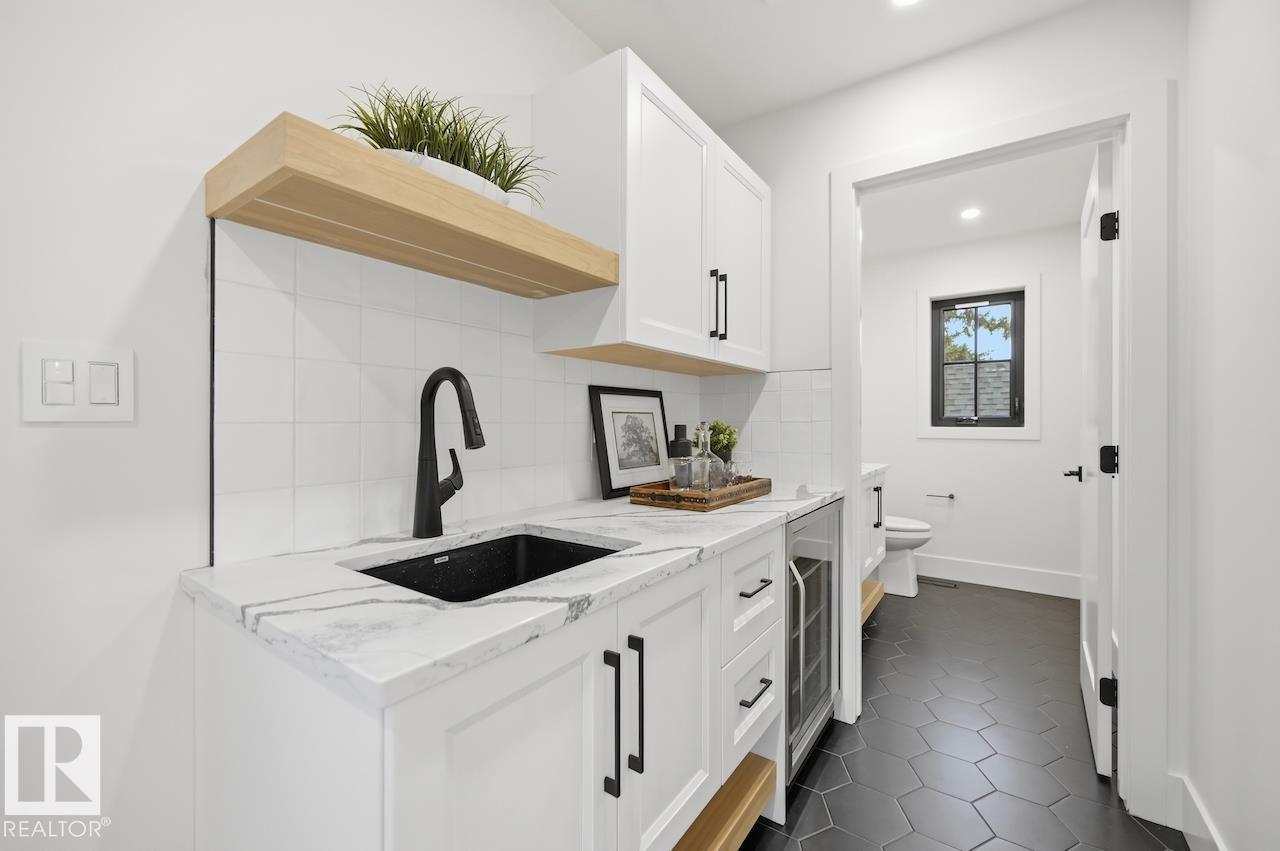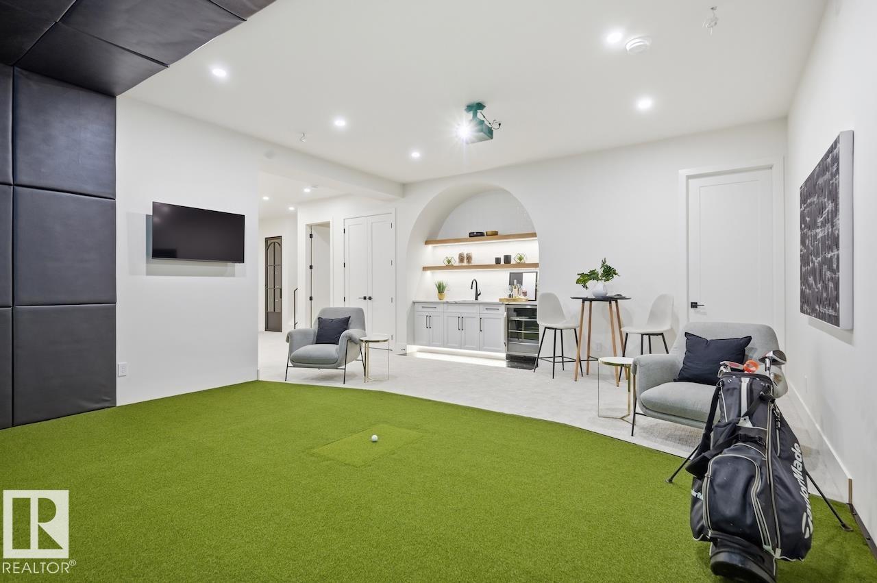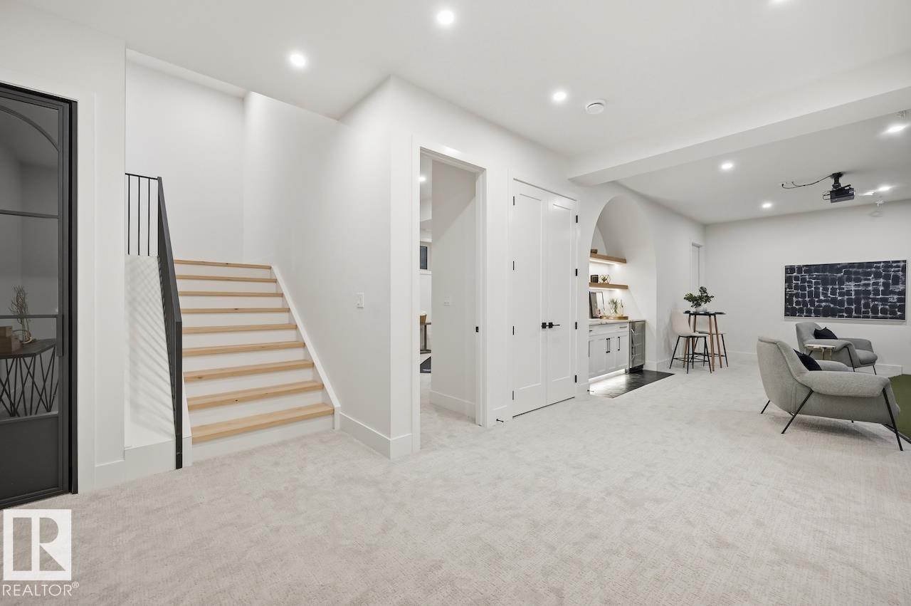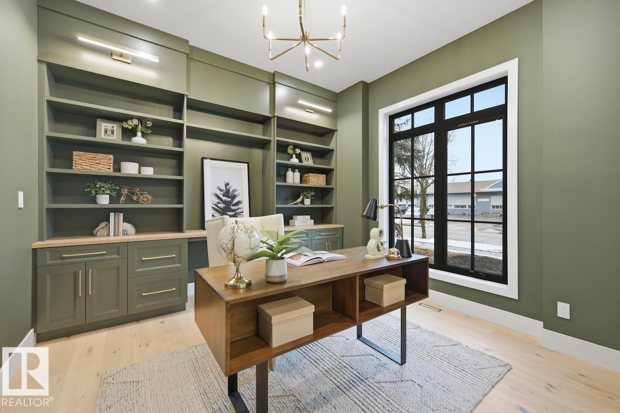 LUXURY 2.5 STOREY HOME WITH 10FT MAIN FLOOR, 10FT BASEMENT CEILINGS & OVERSIZED QUAD DETACHED HEATED GARAGE IN GLENORA! This one of a kind home is a true must see! The main floor features a grand herringbone foyer, large office with custom shelving and cabinets, designer half bath, side mudroom entrance with loads of storage, huge chefs kitchen, coffee bar, WOOD BURNING FIREPLACE and so much more! The 2nd floor features 3 Beds 2 Baths and upstairs laundry room, including the large primary bedroom with a spa like 5pc ensuite (steam shower & soaker tub) and double walk-in closets! The 3rd floor features a bonus room, wet bar, half bath as well as the west facing roof top patio! The basement showcases a golf & game sim media room with 4k projector, wine cellar, 2 large bedrooms, 5pc bath, and 2nd wet bar! Outside enjoy the massive covered 3 season deck with recessed heaters & motorized screens as well as fenced/landscaped yard included. Short walk to spray park, playgrounds, shops, ODR and so much more! (id:6769)