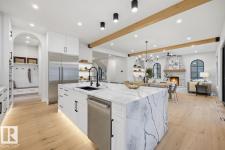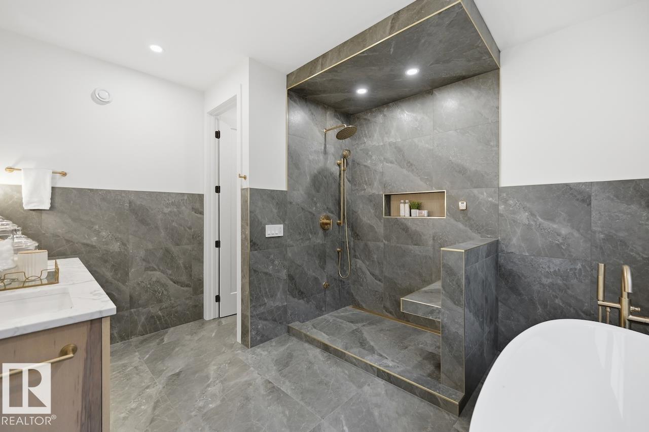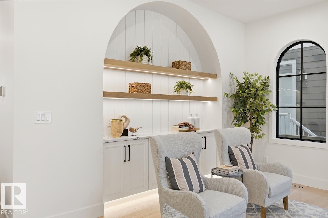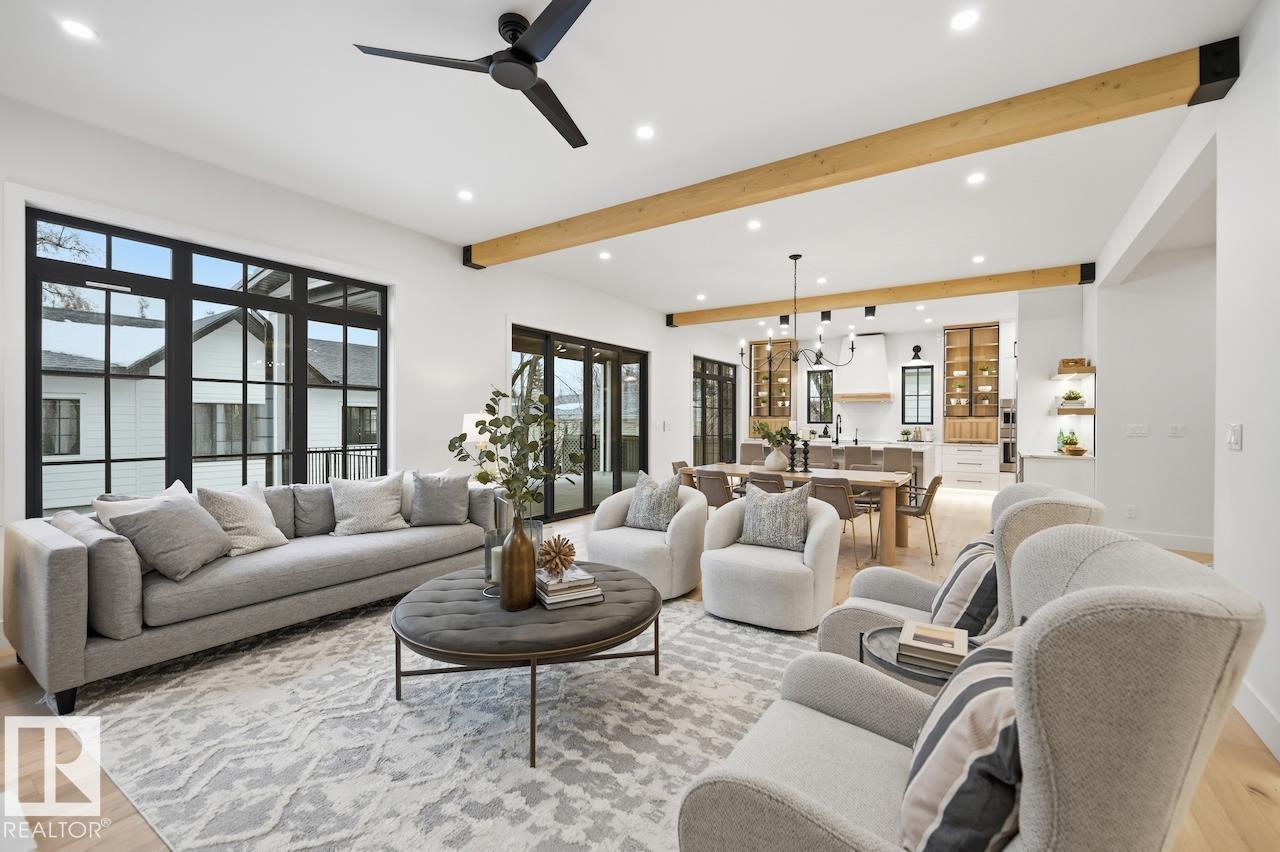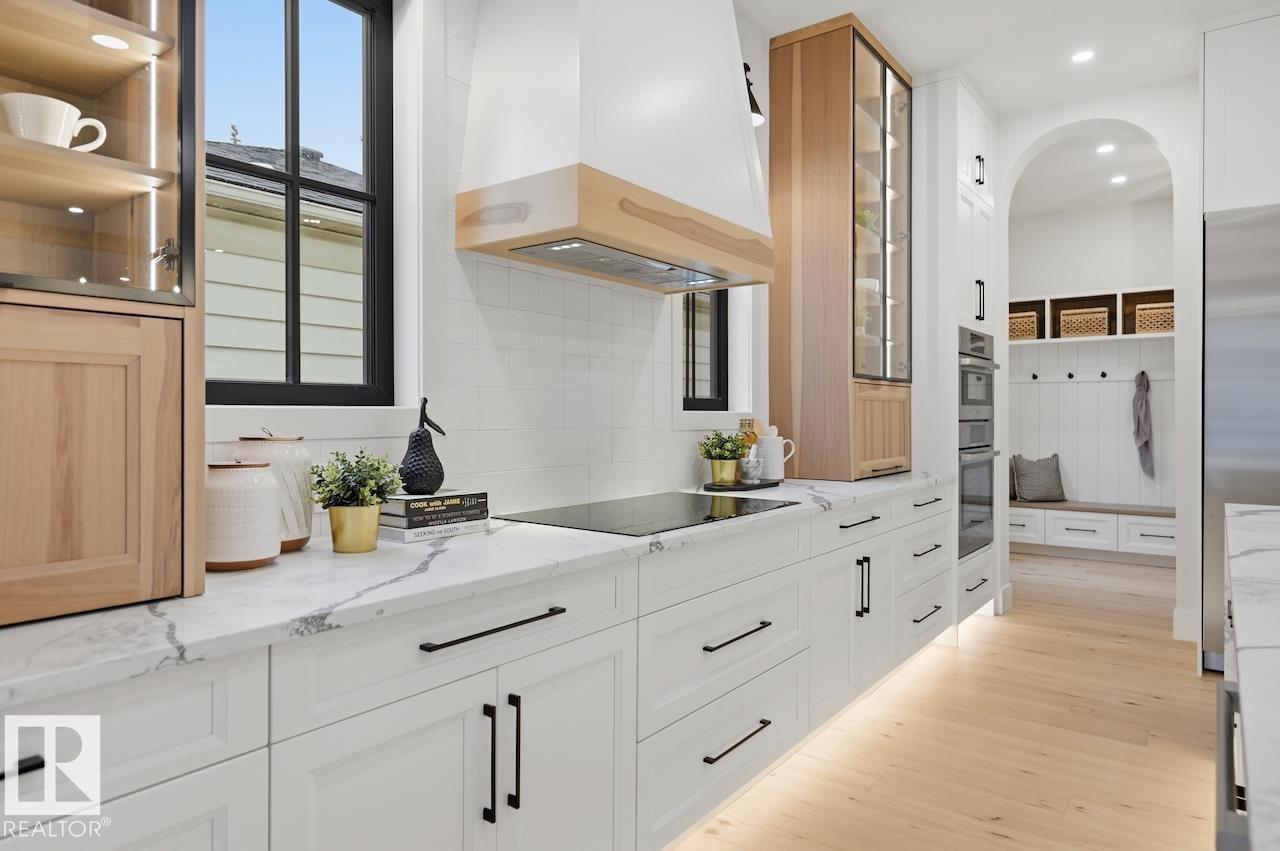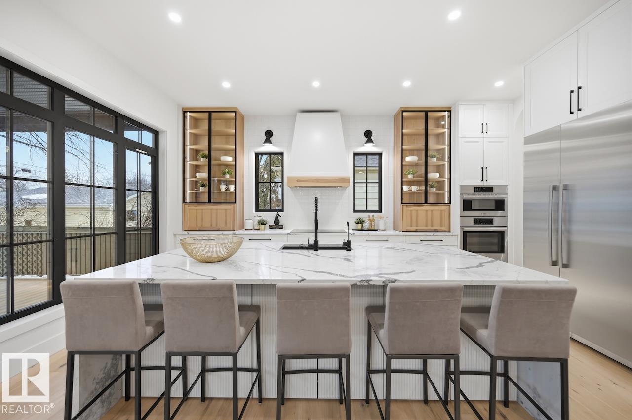 LUXURY 2.5 STOREY HOME WITH 10FT MAIN FLOOR, 10FT BASEMENT CEILINGS & OVERSIZED QUAD DETACHED HEATED GARAGE IN GLENORA! This one of a kind home is a true must see! The main floor features a grand herringbone foyer, large office with custom shelving and cabinets, designer half bath, side mudroom entrance with loads of storage, huge chefs kitchen, coffee bar, WOOD BURNING FIREPLACE and so much more! The 2nd floor features 3 Beds 2 Baths and upstairs laundry room, including the large primary bedroom with a spa like 5pc ensuite (steam shower & soaker tub) and double walk-in closets! The 3rd floor features a bonus room, wet bar, half bath as well as the west facing roof top patio! The basement showcases a golf & game sim media room with 4k projector, wine cellar, 2 large bedrooms, 5pc bath, and 2nd wet bar! Outside enjoy the massive covered 3 season deck with recessed heaters & motorized screens as well as fenced/landscaped yard included. Short walk to spray park, playgrounds, shops, ODR and so much more! (id:6769)