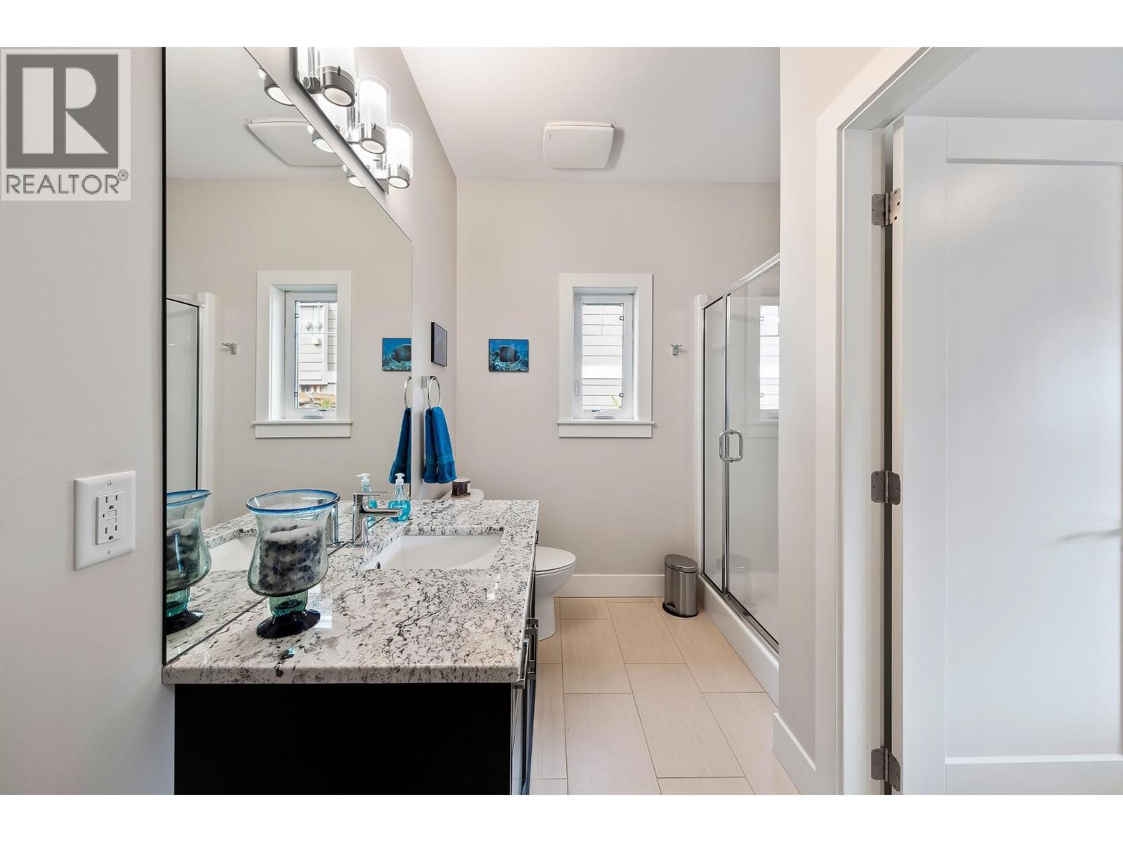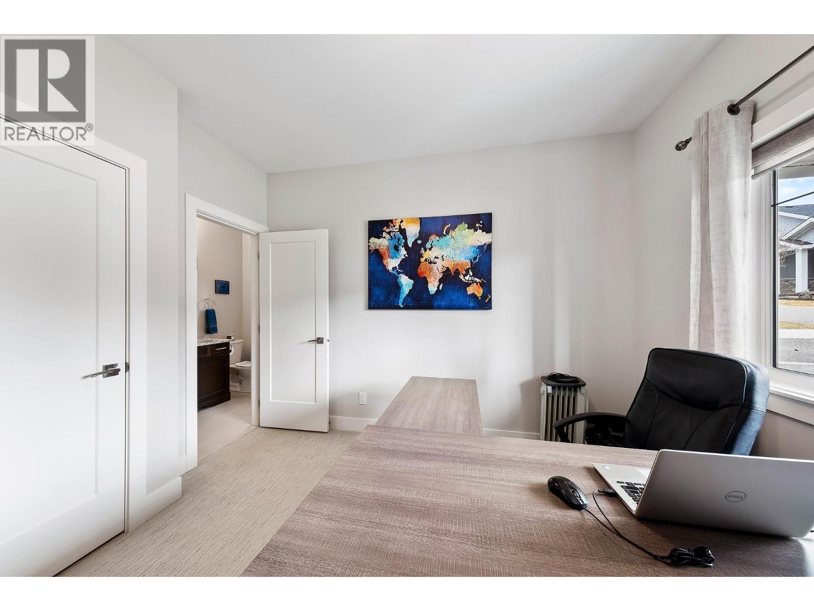 HIDDEN LAKE LOOKOUT Rarely offered, semi-detached 3180 sf, walkout rancher, townhome. Spacious 4 bedroom, 3 full bath home. Desirable quiet setting overlooking the park and Walroy Lake, surrounded by greenspace. Main floor is a comfortable open floor plan, beautiful new travertine finish on fireplace accent wall, main floor primary with full enste, 2nd bedroom or ideal office space with attached main bath. Fully finished walk-out level, great size rec room, 2 more bedrooms, full bath, flex room perfect for crafts or wine room. Bonus of a large storage space. Walk out to a covered patio and enjoy the serenity of your private hot tub. Attached 2 car garage with 220 to accommodate EV’s. Wilden is an exciting growing community with the promise of Wilden Village & Market Square, a place to grab a coffee or bite to eat, convenience store. School Dist has purchased the land beside the Market. The area is surrounded by numerous hiking/biking/walking trails. Five minutes to downtown, 15 minutes to UBCO another 5 to the airport via John Hindle. Bring your fur babies, 2 dogs or 2 cats or 1 of each. Have your Realtor book your private viewing ! (id:6769)