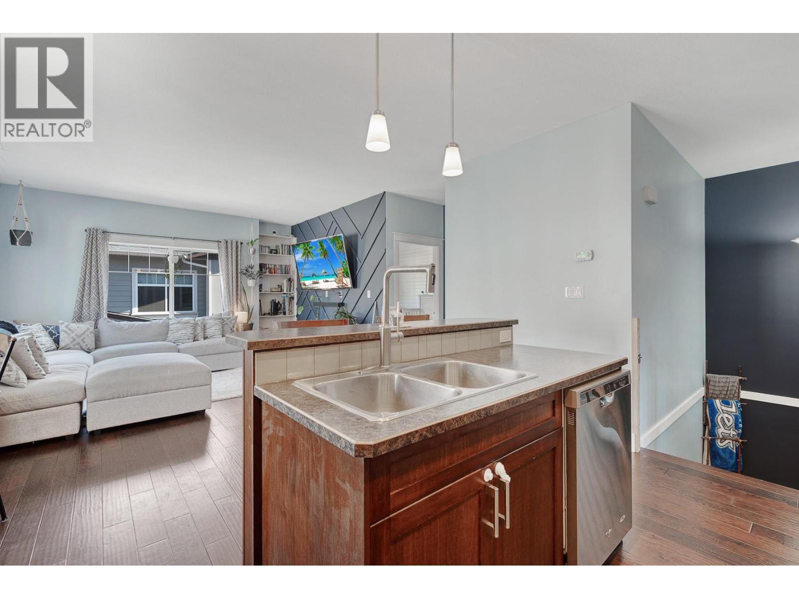 Welcome to Cornerstone Townhomes – Quiet, Quality Living! Tucked at the back of this well-maintained 10-unit complex, this immaculate 3- bedroom + den townhome offers rare privacy and serenity – all just minutes from Vernon’s best amenities. With garage parking and an additional assigned stall right next to the unit, convenience is built right in. Thoughtfully designed with timeless craftsmanship and an open- concept layout, the home welcomes you with a spacious kitchen featuring a large island and quality appliances. The seamless flow to the living and dining areas makes it perfect for hosting or relaxing. The main level features a generously sized primary suite with a spa-inspired ensuite, a second bright bedroom, and a full guest bath. On the entry level, a cozy den, third bedroom with sliding doors to a private patio, an extra bath, and laundry area round out the functional layout. Storage is abundant throughout, and the unit backs onto the quiet side of the development, adding to the peaceful atmosphere. This pet-friendly complex embraces a warm, community feel with LOW strata fees and pride of ownership throughout. Conveniently located close to the hospital, schools, downtown shops, Nature’s Fare, Kin Beach, and extensive recreation – including pickleball, sports fields, walking trails, and more. Don’t miss your chance to own in this tightly held community where quality, quiet, and comfort come together. (id:6769)