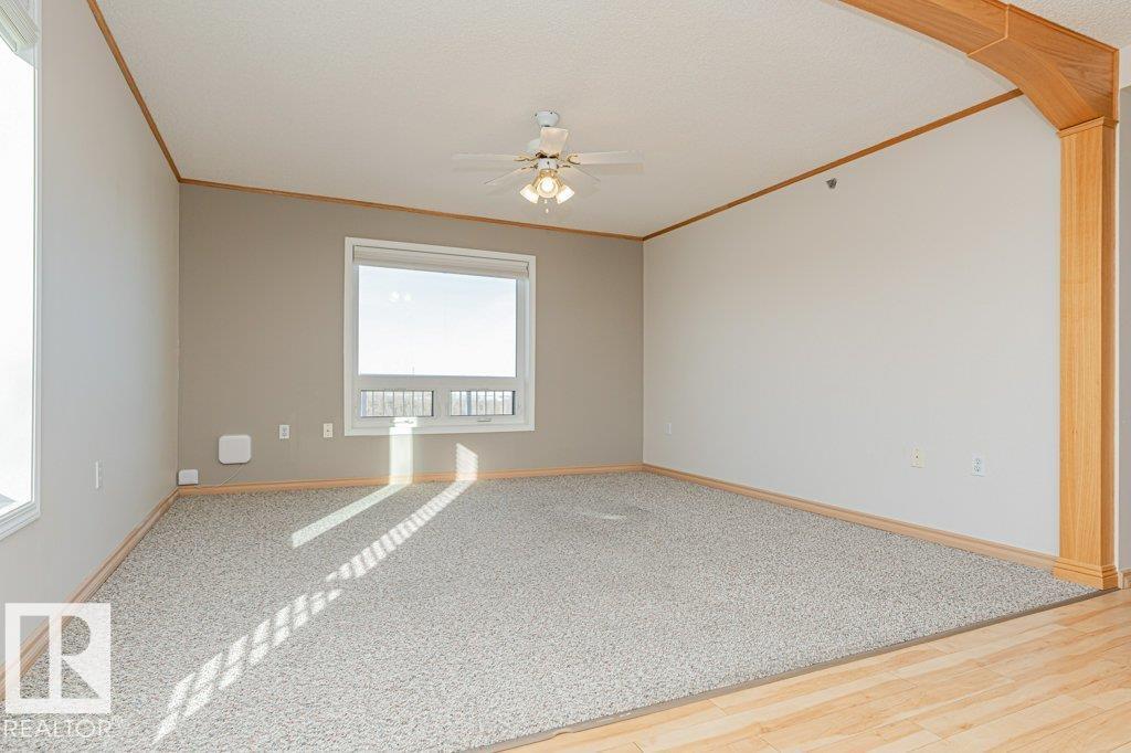 Welcome to Valley Ridge—an exceptional 50+ community offering comfort, convenience, and lifestyle. This top-floor 2 bedroom, 1 bath condo features a rare wrap-around deck with unobstructed views of the North Saskatchewan River Valley—perfect for enjoying peaceful mornings and stunning sunsets. Bright and move-in ready, this home includes all major appliances, in-suite laundry, and a spacious storage room. The self-managed building offers a guest suite, social room, workshop, and convenient car wash in the heated underground parkade, plus one assigned stall and storage locker in parkade. Ideally located close to parks, shopping, and public transit. Immediate possession available—enjoy carefree living in a welcoming community! (id:6769)