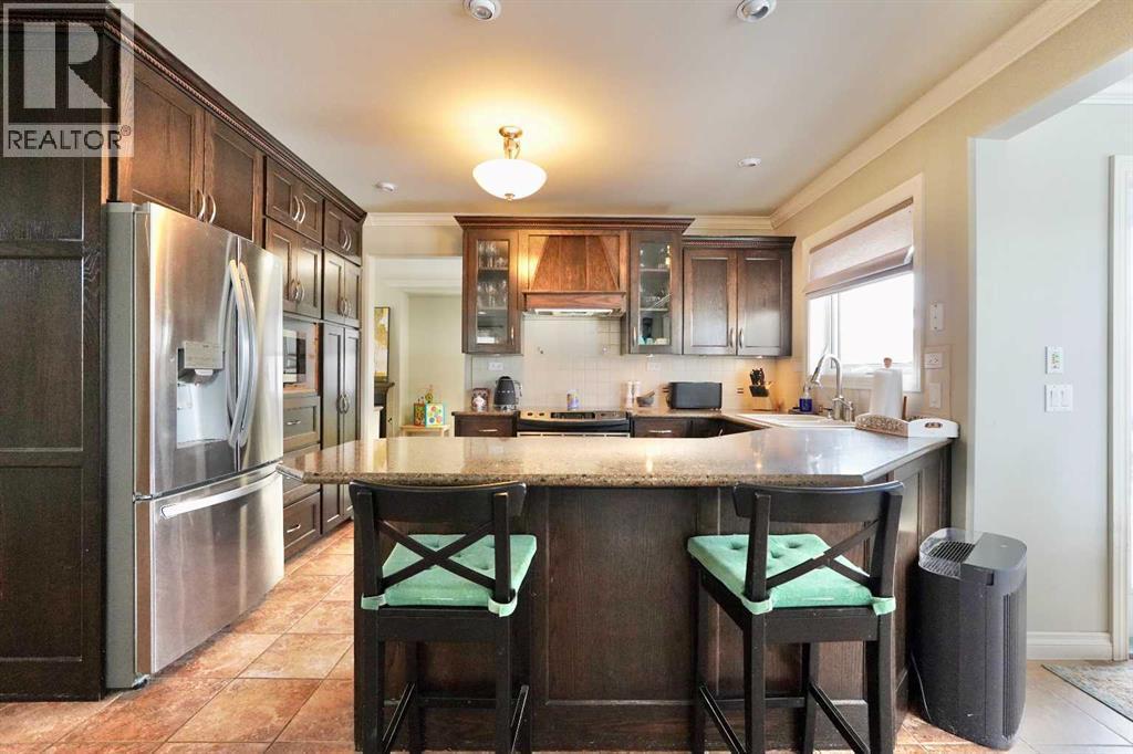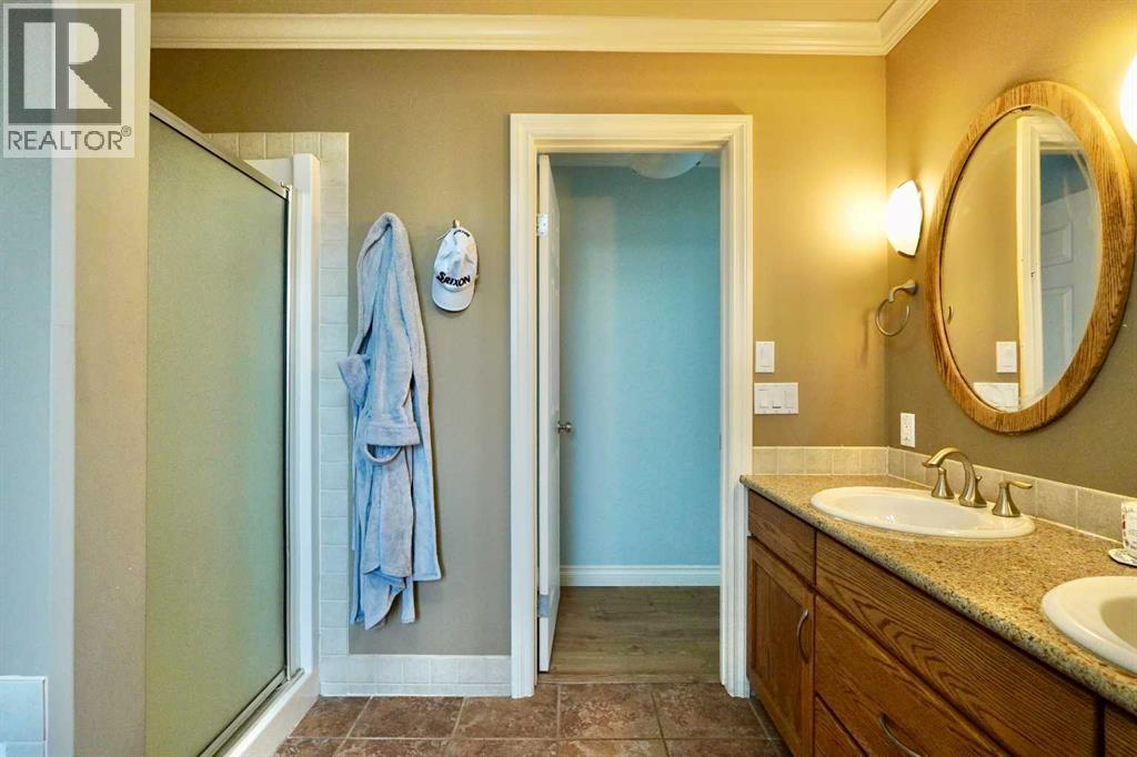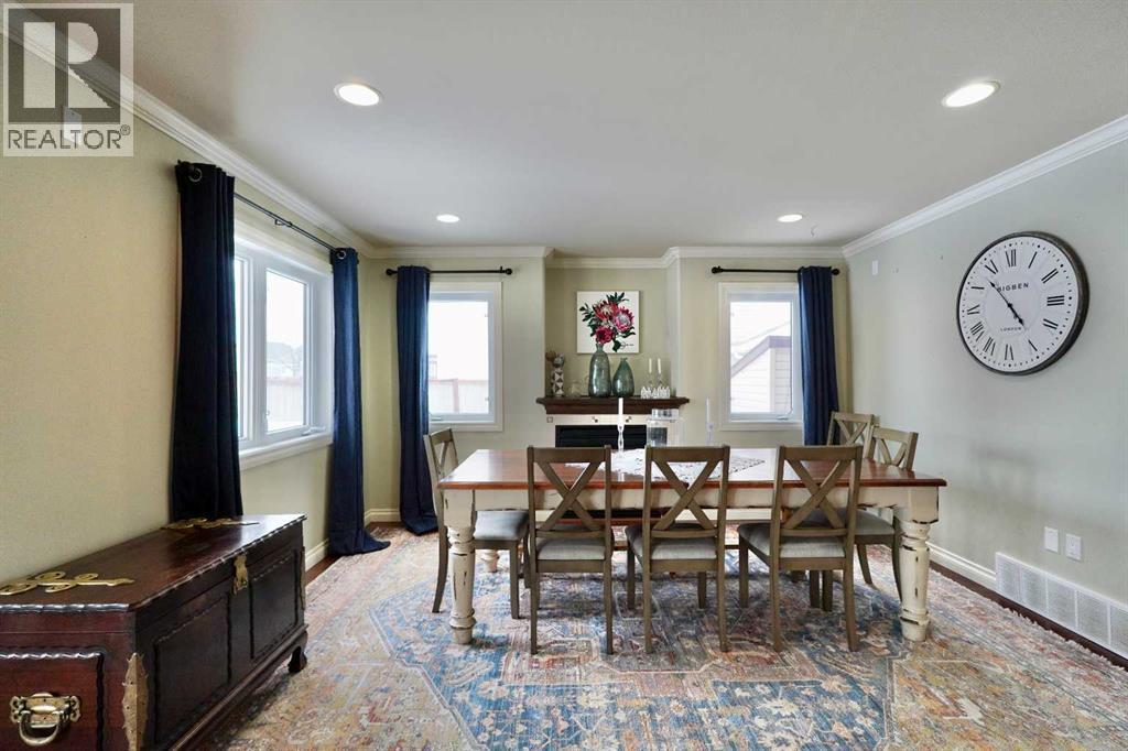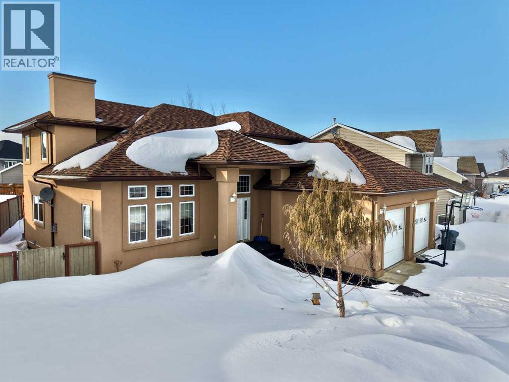 Welcome to this stunning, custom-built 1.5 story home in the highly sought-after Saddleback Ridge community—a true standout with exceptional craftsmanship, thoughtful design, and space for the whole family. Offering 5 bedrooms and 3.5 bathrooms, this property is an absolute must see. Step inside to an inviting open-concept layout centered around a gorgeous kitchen featuring rich wood cabinetry, quartz countertops, stainless steel appliances, a pantry, and an abundance of storage. The kitchen flows seamlessly into the cozy family room, complete with a gas fireplace, and an adjoining dining nook with garden doors leading to the back deck and brick patio—perfect for morning coffee or summer entertaining. On the opposite side of the kitchen, you’ll find an elegant formal living and dining area enhanced by a striking three-sided gas fireplace, creating a warm and welcoming atmosphere for gatherings. The main level also includes a convenient half bath and a well appointed laundry room with direct access to the heated double car garage.Upstairs, discover three generously sized bedrooms, including a spacious primary suite designed for relaxation. The primary retreat features a walk-in closet and a luxurious 5-piece ensuite with a large jetted tub. The additional full bathroom on this level also offers a deep soaker tub for added comfort. The finished full basement—with in-floor heating—adds even more living space. Here you’ll enjoy a large family room, two oversized bedrooms, a 3-piece bathroom, and a dedicated storage room. Outside, the beautifully landscaped and fully fenced yard is a true extension of the home. With a brick patio, retaining wall, underground sprinklers in the front and back, and a storage shed, the outdoor space is both functional and serene. Central air conditioning ensures comfort on warm summer days. This exceptional property offers incredible space, comfort, and features that cater to every member of the family. Don’t miss your chance to view t his remarkable home—book your private showing today and experience all it has to offer. (id:6769)