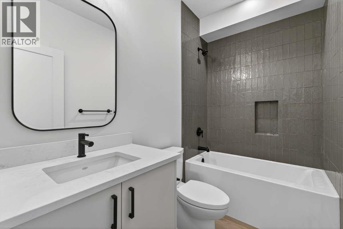 *** For more information, please click Brochure button. *** Welcome to 2125 Montenegro Drive—an exceptionally designed walk-out home in Kirschner Mountain, one of Kelowna’s emerging hillside communities surrounded by nature and scenic trails. Built by Stability Management and move-in ready, this brand-new residence blends warm, modern design with thoughtful functionality. The main level is bright and open, anchored by a beautifully curated kitchen with natural wood cabinetry, quartz countertops, oversized island, gas range, and a full-height stone backsplash. Matte black accents and custom detailing add contrast, while large windows bring in natural light. The living area is centred around a gas fireplace with herringbone tile interior and wood mantle. With 4 bedrooms and 4 bathrooms across 2,928 sq ft, the layout offers excellent flexibility. The primary suite features a spa-inspired ensuite with freestanding tub and glass shower. The lower level includes an additional bedroom, bathroom, and functional living space; plus a 1-bedroom legal suite with private entrance, luxurious finishes, separate laundry, heating, and A/C. Complete with a bright double garage, forced air heating, and central air, this home offers modern comfort just minutes from schools, parks, golf, UBCO, and the airport. GST applicable. (id:6769)