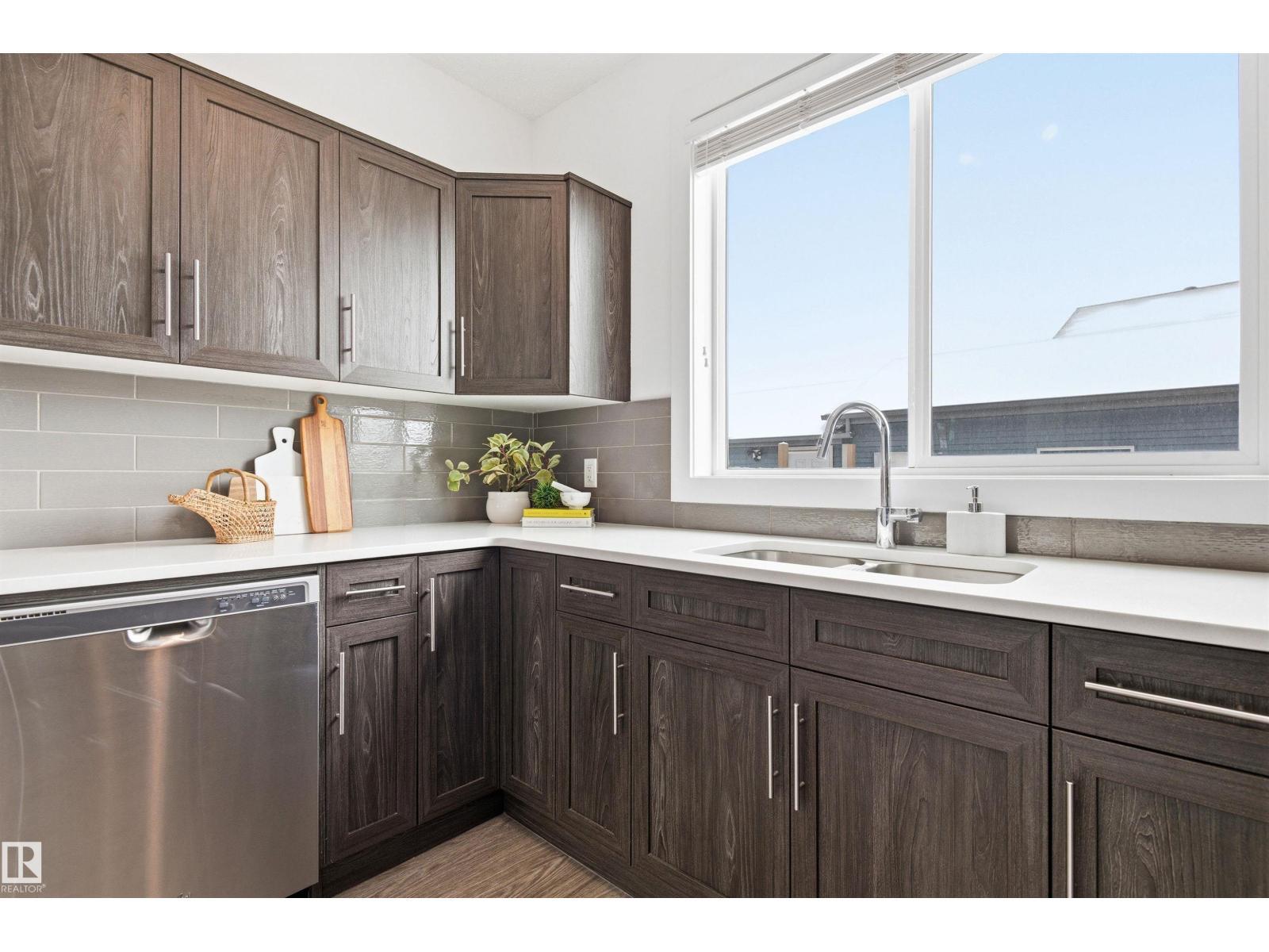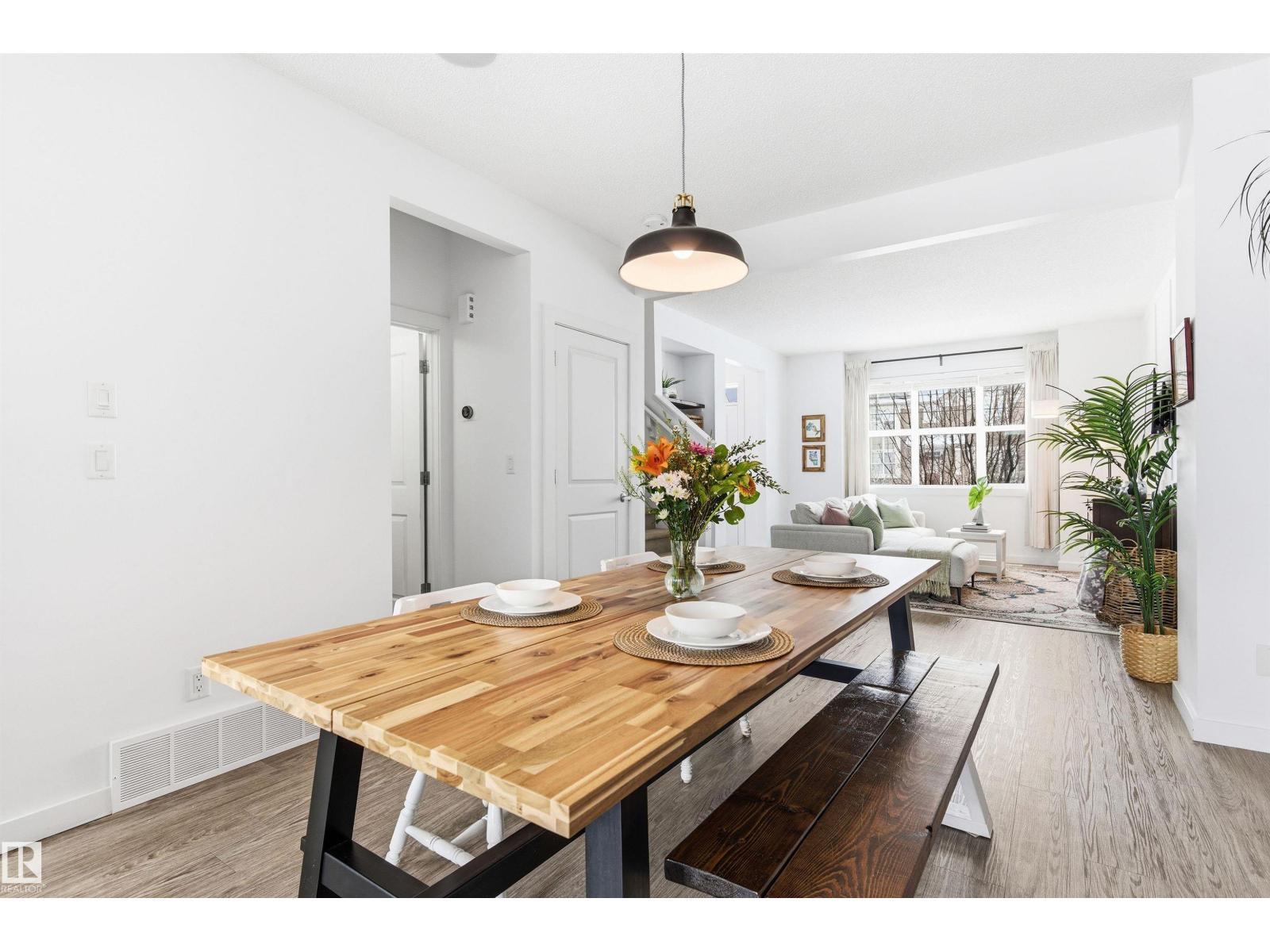 Stylish and functional attached townhouse-style home in a highly convenient Southwest Edmonton location! Offering over 1,400 sq ft of well-designed living space, this property features a bright and open main floor with a spacious living room, dedicated dining area, and a practical kitchen complete with pantry and access to the sunny south-facing backyard. Upstairs, you’ll find a generous primary bedroom with walk-in closet and ensuite, a second bedroom, full bathroom, and a versatile den/office space perfect for working from home. Enjoy everyday comfort with AIR CONDITIONING, plus the added value of a DOUBLE GARAGE and NO CONDO FEES. The sunny south backyard is ideal for relaxing or entertaining. Located close to schools, parks, shopping, and major commuter routes, this is an excellent opportunity for first-time buyers or young families seeking a move-in-ready home in a prime SW location! (id:6769)