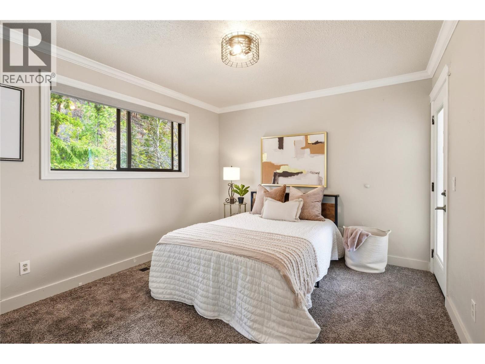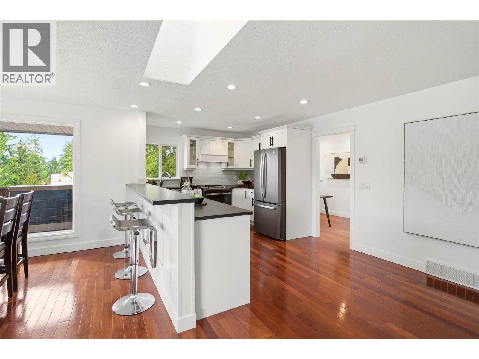 Tucked away off the road in a quiet North Glenmore cul-de-sac, this beautifully updated 2-level home offers almost 2,300 sq ft of bright, versatile living surrounded by mature greenery and peaceful natural surroundings. The upper level features an open living and dining area with large windows that frame sweeping Okanagan Lake and valley views. The renovated kitchen flows seamlessly onto a spacious composite deck—perfect for morning coffee, evening sunsets, and effortless entertaining. This level also includes a generous den or 4th bedroom, a second bedroom, a fully renovated bathroom, and the inviting primary suite complete with a walk-in closet and a modern, refreshed ensuite. The lower level enhances the home’s flexibility with a bright bedroom, a full bathroom, a dedicated laundry room, and a spacious den/rec room with walk-out access to the outdoors. It’s an ideal setup for teens, guests, hobbies, or creating a private home office or media space. With newer furnace and A/C, hardwood floors, a double garage plus abundant exterior parking, and a low-maintenance yard, the home is move-in ready. Steps from parks, trails, and nature, yet minutes to city conveniences, this property offers the perfect blend of privacy, comfort, and everyday practicality in one of North Glenmore’s most desirable pockets. (id:6769)