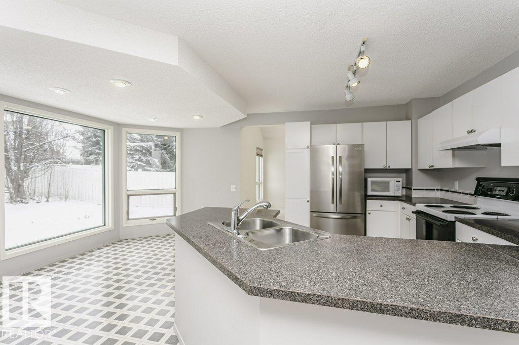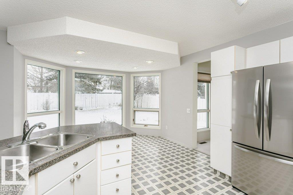 Welcome to Falconer Heights, a highly regarded, family-friendly community in Riverbend, southwest Edmonton. Situated on a quiet street with a generous backyard, this home is close to excellent schools, the river valley, walking trails, public transit, shopping, and the Terwillegar Recreation Centre. Move-in ready with outstanding potential, it offers the opportunity to update and make it your own. The main level features vaulted ceilings, bright living and dining areas, a family room, half bath, spacious mudroom with laundry, and a sun-filled kitchen. Upstairs includes a large primary bedroom with five-piece ensuite, jetted tub, tiled shower, and walk-in closet, plus two additional bedrooms and a full bathroom. The developed basement offers a versatile recreation space ideal for entertaining or play, as well as ample storage. Recent updates include a new furnace and hot water tank (Jan 2026) and newer fridge, washer, and dryer (Jan 2025). A rare opportunity in Falconer Heights. (id:6769)