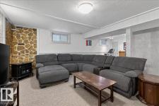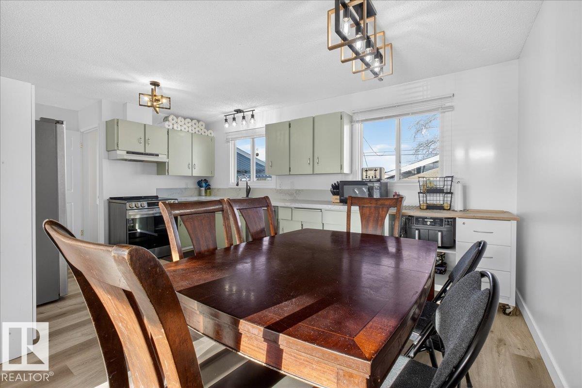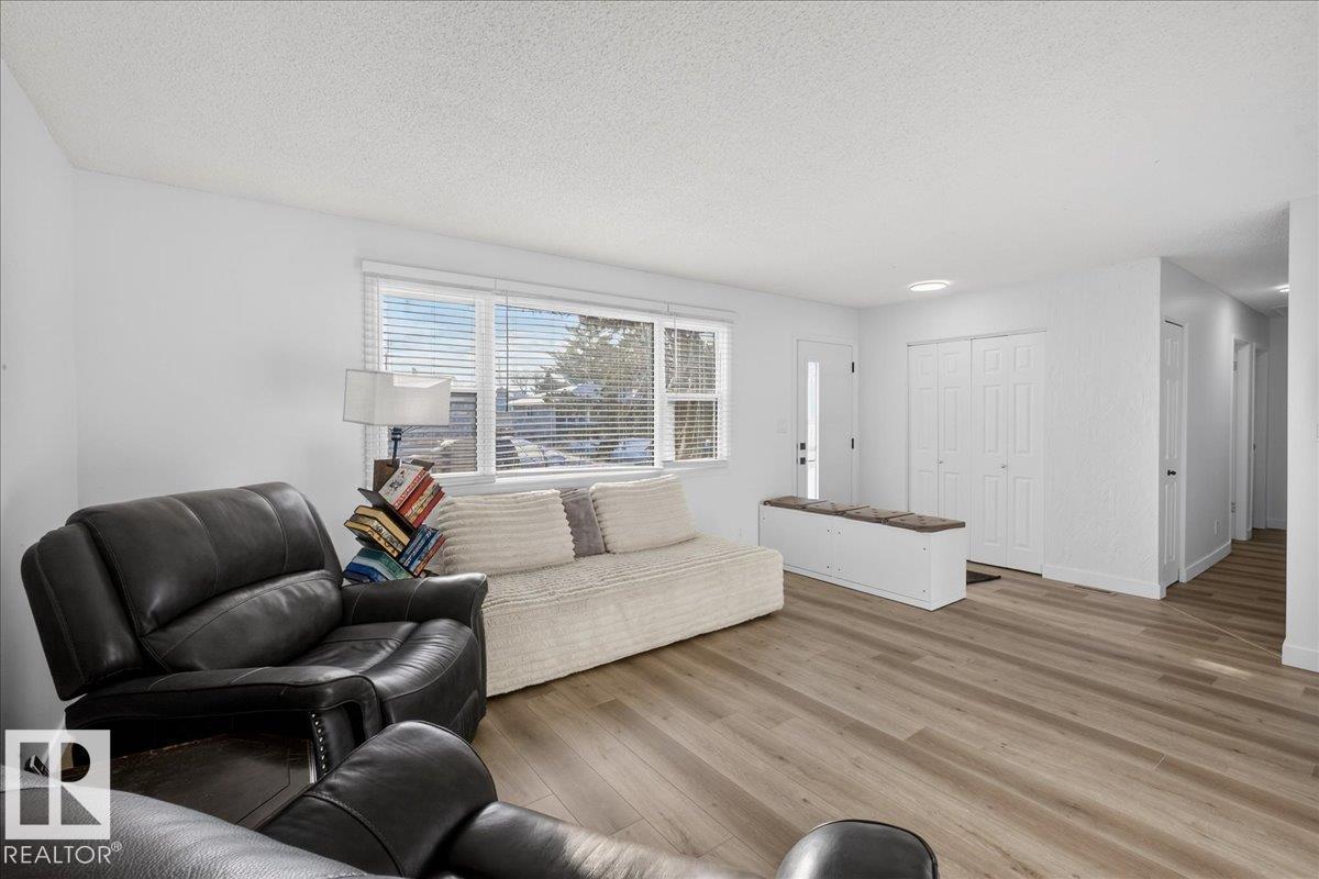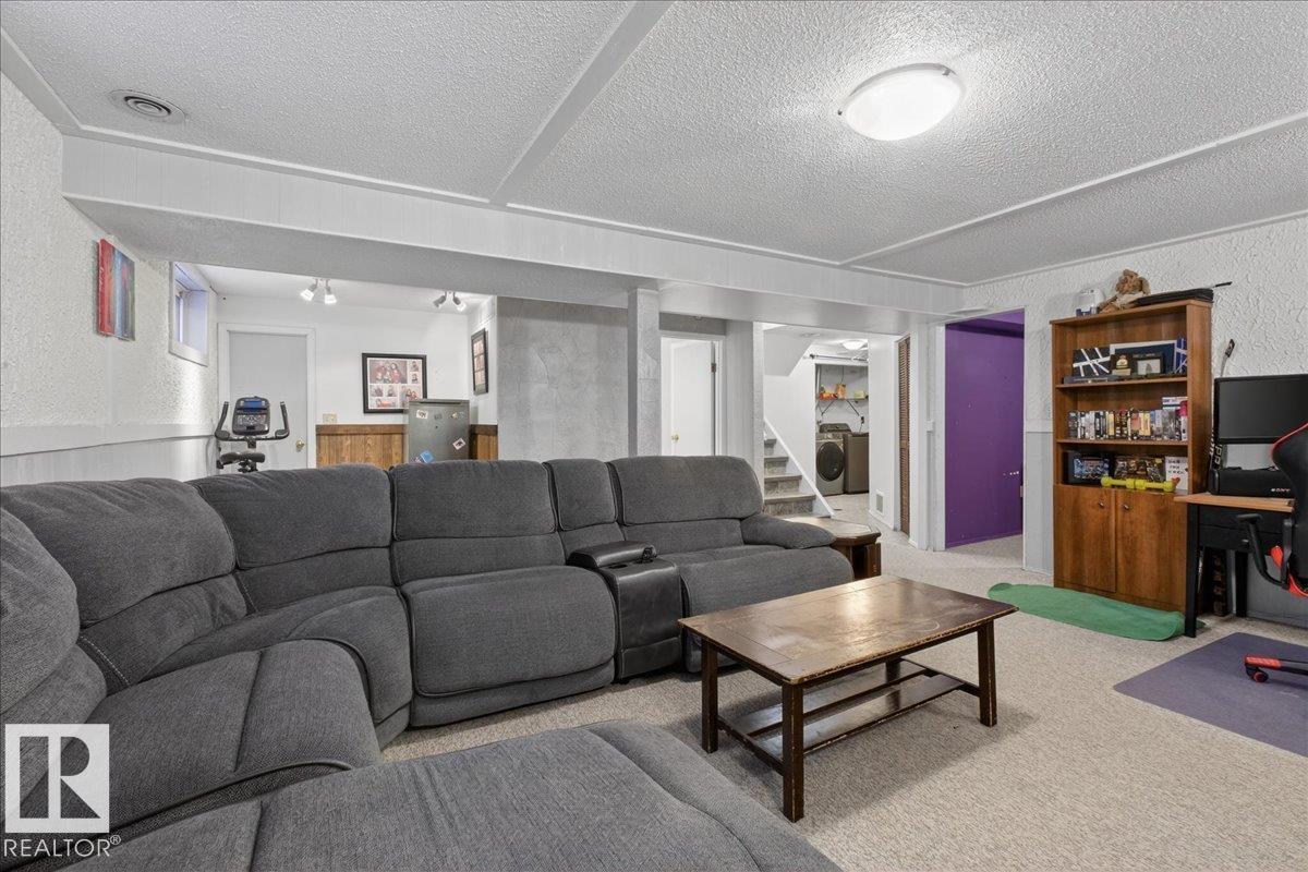 Move-in ready 5-bedroom bungalow in Gibbons, backing onto the green space of the Gibbons Museum grounds. Main floor features new flooring, trim, paint, quartz kitchen counters, and updated bathroom. Primary bedroom with 2-piece ensuite. Basement includes cozy electric fireplace, 3-piece bath, and versatile den for play, office, or storage. Outside, enjoy a mostly vinyl-fenced yard, oversized double garage, and covered back deck—perfect for relaxing while kids play. Walking distance to school, spray park, and Brumfit Park. A fantastic family home in a great location! (id:6769)