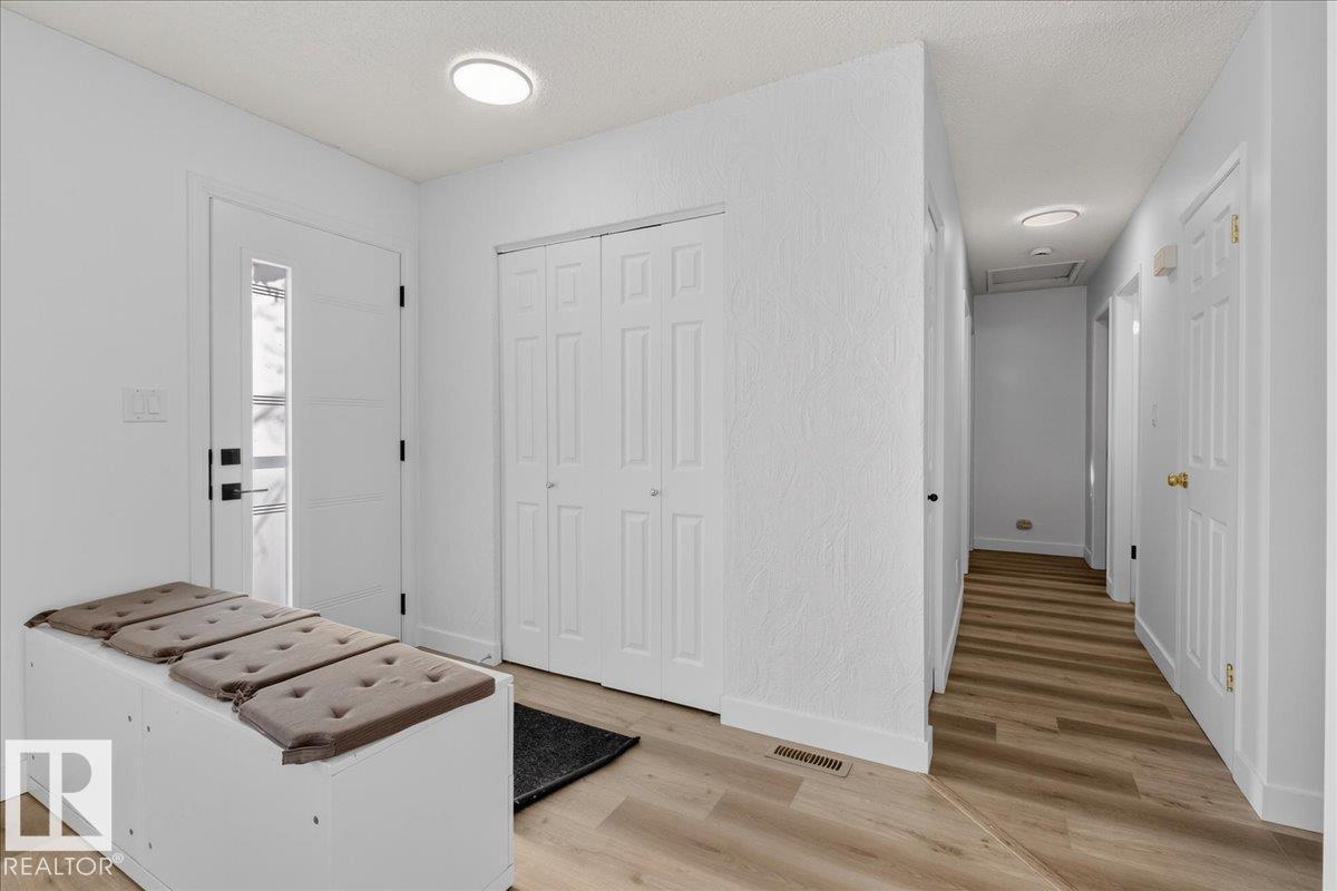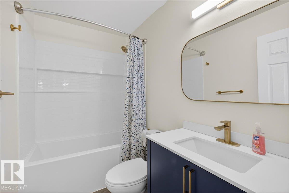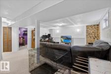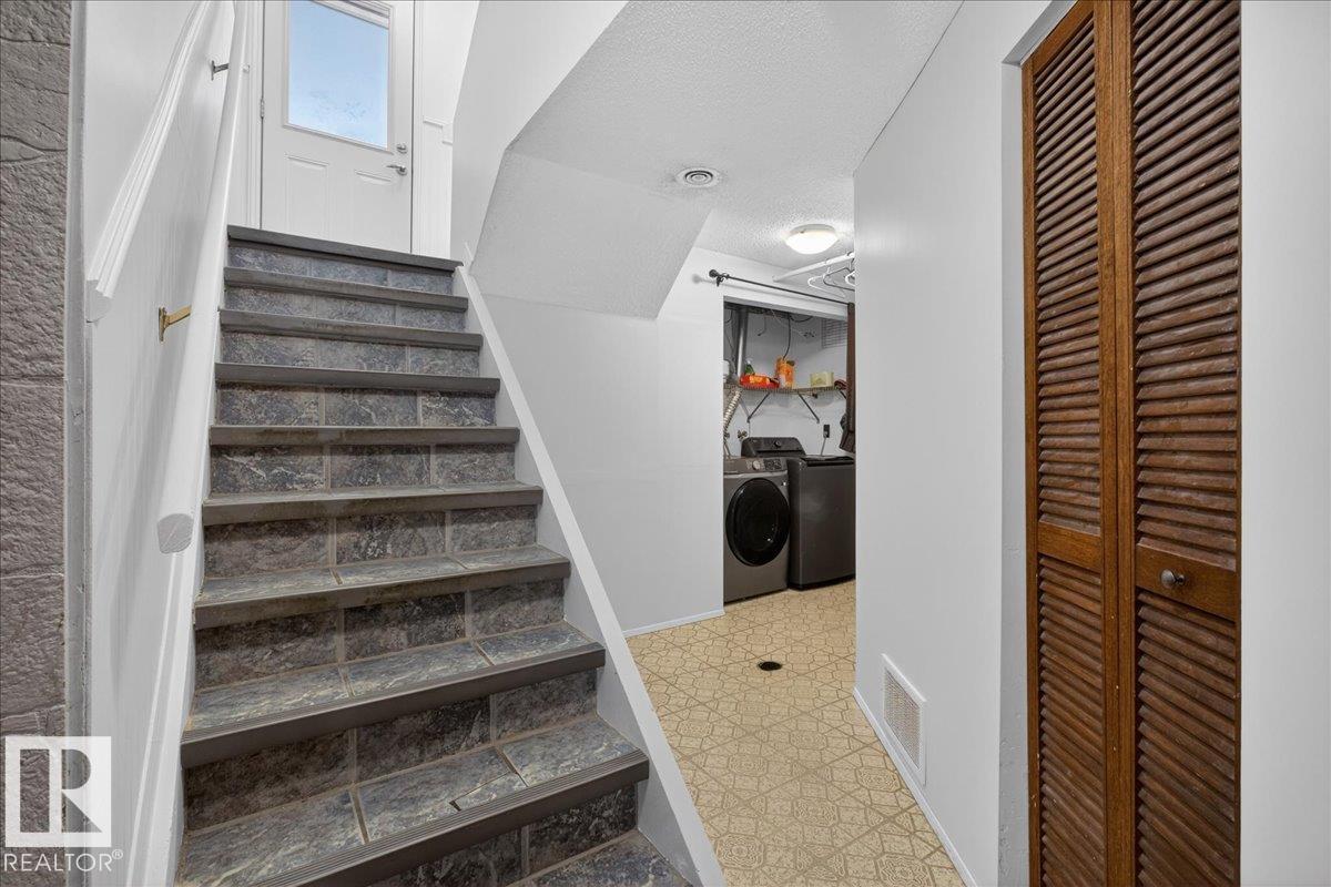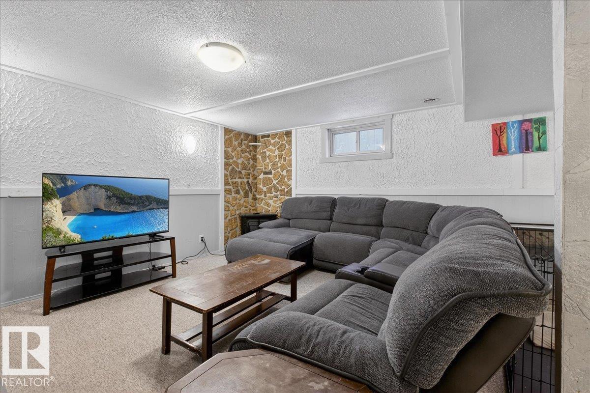 Move-in ready 5-bedroom bungalow in Gibbons, backing onto the green space of the Gibbons Museum grounds. Main floor features new flooring, trim, paint, quartz kitchen counters, and updated bathroom. Primary bedroom with 2-piece ensuite. Basement includes cozy electric fireplace, 3-piece bath, and versatile den for play, office, or storage. Outside, enjoy a mostly vinyl-fenced yard, oversized double garage, and covered back deck—perfect for relaxing while kids play. Walking distance to school, spray park, and Brumfit Park. A fantastic family home in a great location! (id:6769)