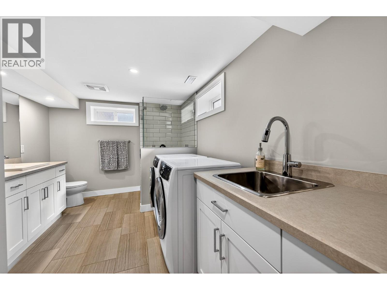 This desirable Valleyview 4-bedroom, 2-bath home offers nearly 2,000 sq. ft. of living space and features original hardwood flooring throughout the bright main floor, which includes a welcoming living room and a well-appointed kitchen with stainless steel appliances, ample storage, and a cozy dining nook with access to the fully fenced yard. The spacious primary bedroom provides double sinks for added convenience and abundance natural light with windows on either side of the room. Completing the main floor are two additional bedrooms and a 4-piece bathroom. The fully finished basement includes a large rec room with an electric fireplace and built-in storage, a generous laundry room with a 3-piece bathroom featuring a custom tiled shower and heated tile floors, plus a dedicated wine cellar. Outside, enjoy a beautifully landscaped backyard with a pergola-covered patio, terraced garden beds, raised boxes, and three storage sheds. Recent updates include a new roof, eavestroughs, doors, windows, siding, and exterior paint, along with a fenced deer-proof yard, underground sprinklers, upgraded electrical, and a 7-year-old furnace, hot water tank, and A/C. This move-in-ready home blends charm, comfort, and modern convenience in a fantastic location. All measurements approx. (id:6769)