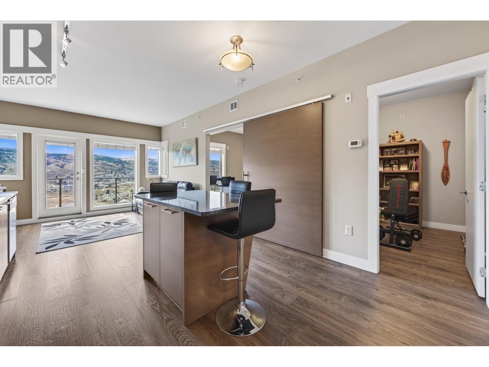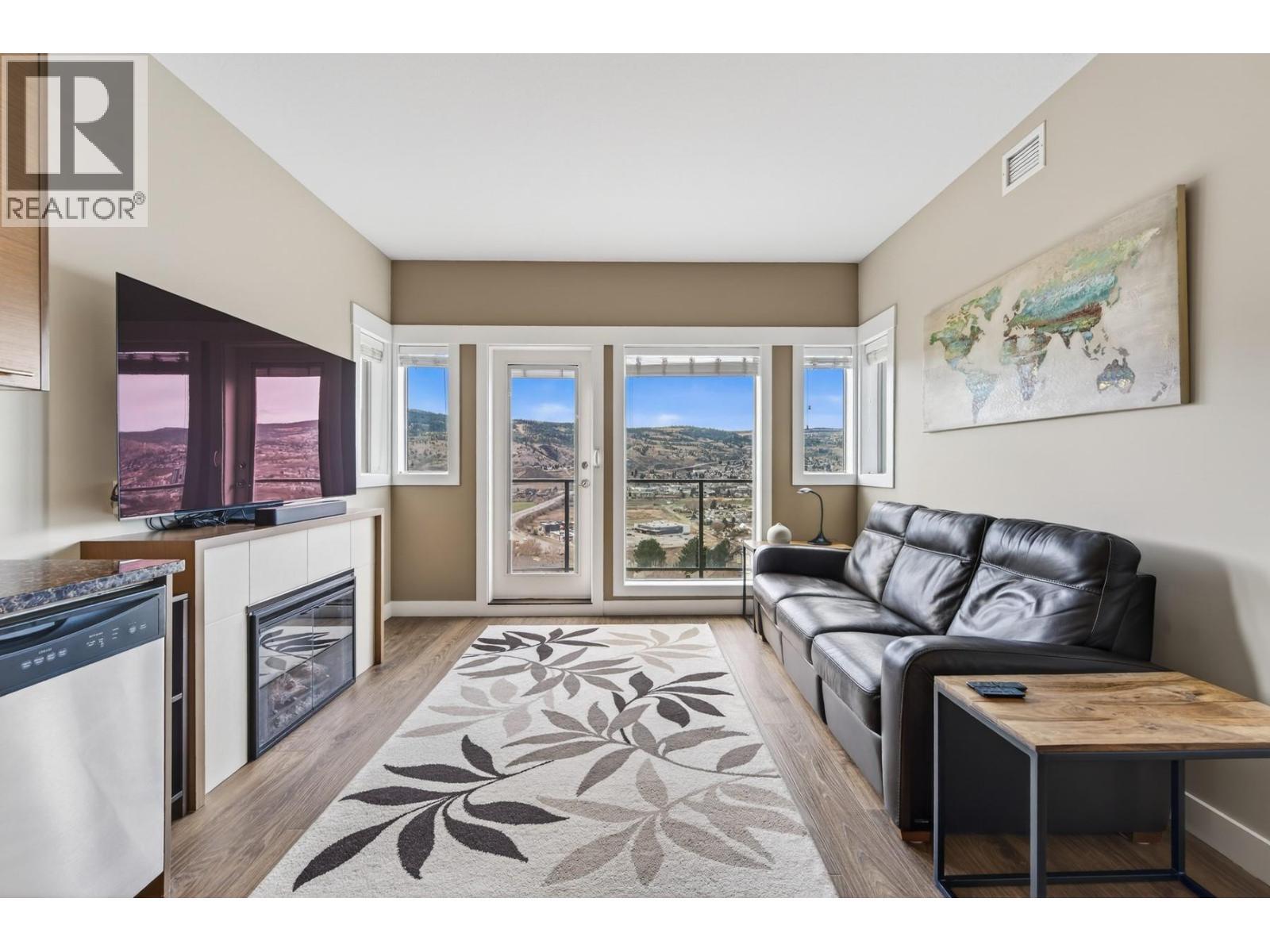 This location is unbeatable. Located in the Alamar building at Talasa, this top floor, south-facing unit captures breathtaking views of the city, mountains, and river. Sit back, relax, and take in the changing skies and city lights at night. Meticulously cared for, the condo features new high-quality vinyl plank flooring (2024) and fresh paint throughout, giving it a like-new feel. The kitchen offers an island with seating, granite countertops, S/S appliances, and cabinetry with undermount lighting. The living room is positioned to maximize the views and includes a comfortable electric fireplace. With two bedrooms plus a den, this layout is ideal and offers slightly more square footage than similar units. Two full bathrooms include a 4pc main and 3pc ensuite. A standout feature is the step-in closet in the primary. Enjoy a lock-and-go lifestyle with geothermal heating and cooling, 1 underground parking stall (#16), and 1 storage unit (#50). Steps to Sun Rivers Commons with Riverbrew Cafe, Wasabi Japanese, Pizza Hut, daycare and a pharmacy. View today! (id:6769)