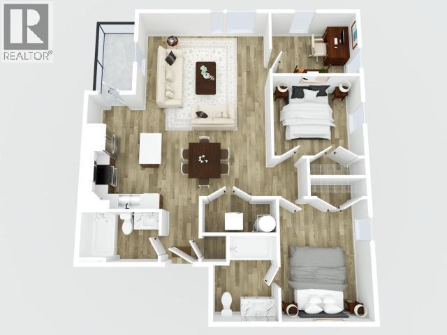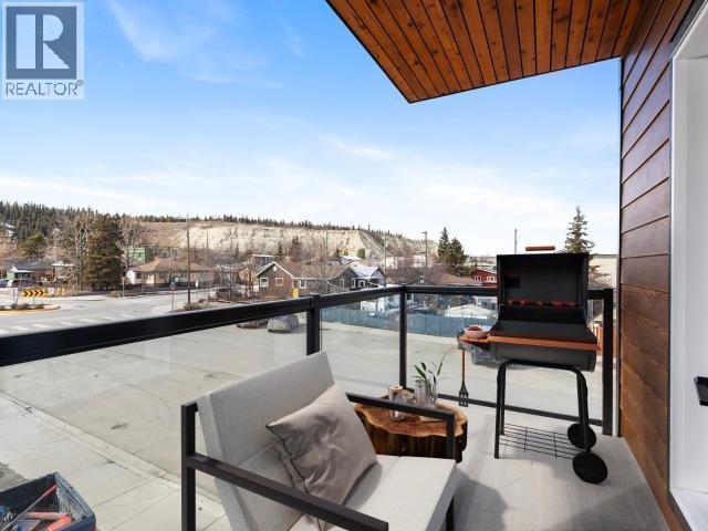 Top floor. Bright corner. Downtown dialed! Suite 301 at 5th & Black offers 949 sqft of modern, well-designed living in a centrally located downtown condo building. This 2-bedroom + den, 2-bathroom corner unit features three exterior walls with northwest exposure, bringing in evening sun and front-row aurora potential. Inside, clean finishes and a smart layout carry throughout, with vinyl plank flooring, large windows, and a sleek kitchen complete with quartz countertops, tiled backsplash, and an island with seating. The primary bedroom includes a full ensuite, while the second bedroom and versatile corner den offer flexibility for guests, a home office, or creative space. A private balcony with evening sun and views, powered parking stall, and exterior storage locker round out the package. Pet-friendly, rental-friendly, and close to trails, transit, shops, groceries, restaurants, and everyday downtown conveniences--urban living, Yukon style. Available now. (id:6769)