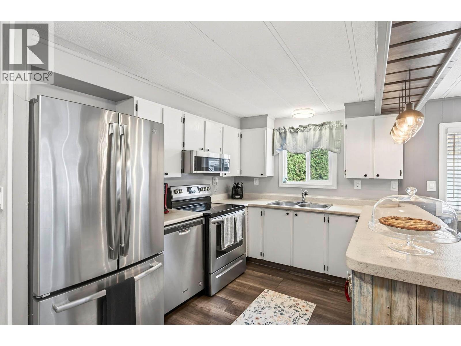 Welcome to Brock Estates, one of Kamloops' nicest parks. This well-maintained manufactured home is in the adult section. The bright and inviting interior features 2 bedrooms, a full 4-piece bathroom, and an open-concept kitchen, dining, and living area. There is also space for a laundry/mudroom, along with an addition that provides extra square footage, thoughtfully divided into two spacious rooms that are ideal for a den or office and a second living area. Additional highlights include central air conditioning, a covered sundeck, and a large yard with mature fruit trees and a garden. The home has seen several updates over the years, including windows, furnace, roof and fencing. This is one of the best-managed and best-maintained parks. Call and book your viewing! (id:6769)