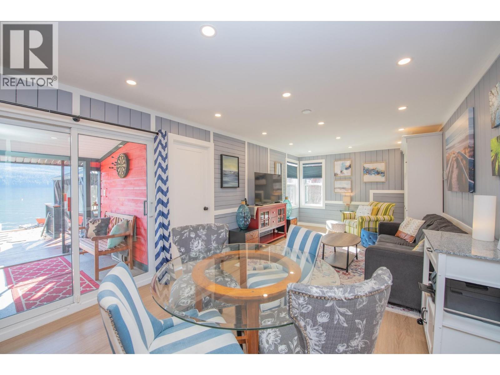 Welcome to your dream getaway on one of the Okanagan’s most desirable lakes. This beautifully updated 2 bedroom + den home comfortably sleeps up to 9 & comes fully furnished, allowing you to move in & start enjoying lake life immediately. Whether you're looking for a family retreat or a turnkey investment, this property is designed for effortless enjoyment & future potential. No detail has been overlooked in the thoughtful upgrades, from the improved water system & comprehensive drainage plan to the upgraded 200-amp panel in the home & an additional 200-amp service in the ready to finish bunkie. The oversized septic system further supports future development possibilities & the landscaped yard features a gabion wall, creating a perfectly flat, usable outdoor space even during high water levels. Enjoy sunny lake days from the floating dock, unwind on the spacious deck, engineered to support a 12-person hot tub or relax & BBQ on the covered back deck. Additional highlights include generator backup, a vented & heated crawl space, french drains around the property for optimal drainage, and hot & cold water in the front yard ready for an outdoor shower. A water filtration system with UV light & reverse osmosis in the kitchen ensures clean, reliable water year-round. With power, road access, and convenient boat access from Rivermouth Marina, this exceptional property truly is the perfect Okanagan four season escape! Snowmobile, Swim, Fish and Hike right from your front door. (id:6769)