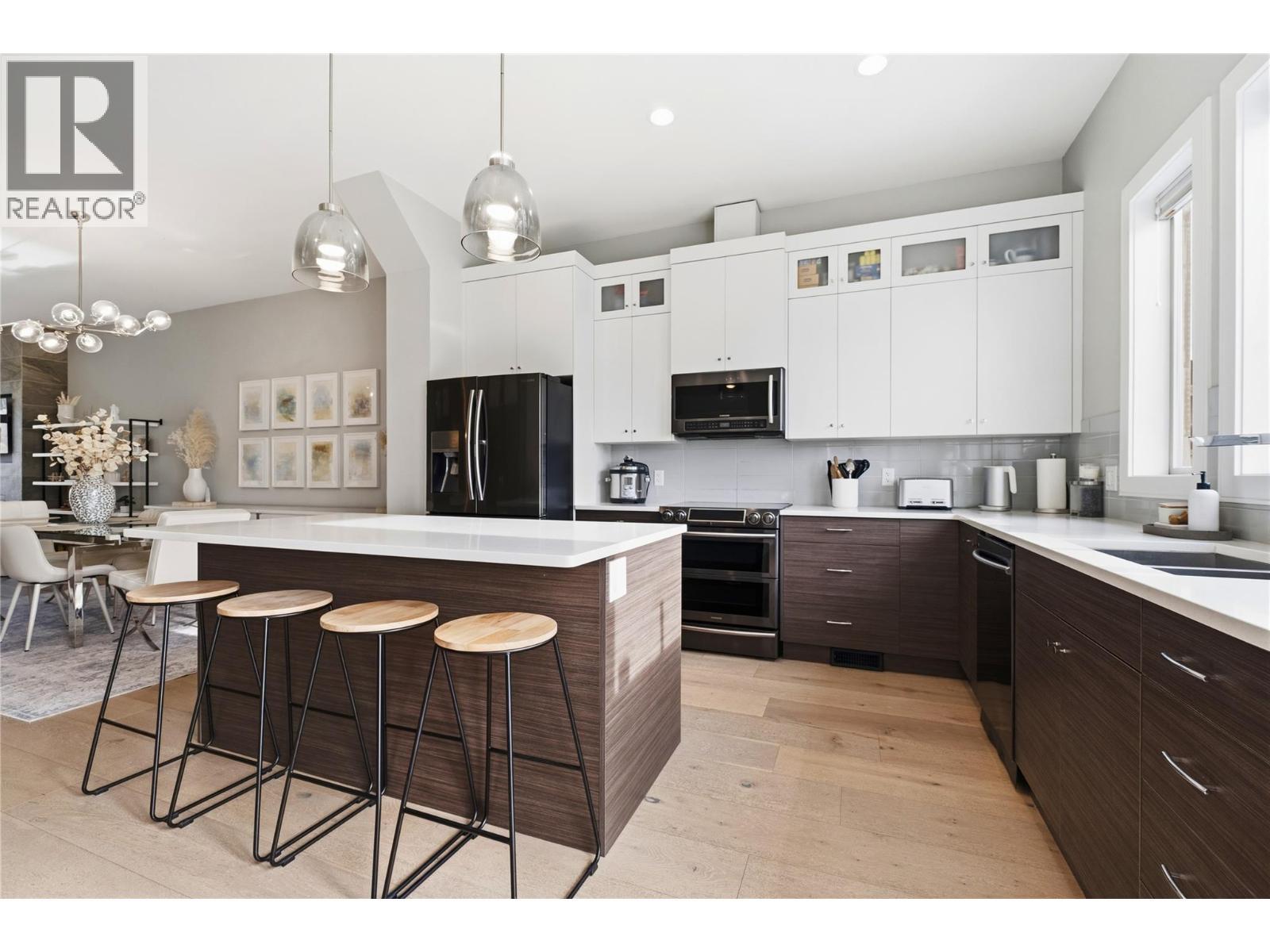 A pristine, turn-key & fully furnished walkout rancher home with the best views of Black Mountain Golf course & walking trails to new tennis court & playground of Birkdale park. Dunbar Villas is the perfect choice for retirees or a family looking for a low maintenance 2017- built home with no-strata fees as a semi-attached non strata development. Enjoy a bright open-concept layout with modern finishes, hot water on demand, engineered wide plank flooring, quartz counters, high ceilings, two separate living areas upstairs & down, 3 spacious bedrooms with views, 2.5 bathrooms, plus a full lower level walk-in closet or flexible den space. The main living area opens to a full balcony with backdrop of mountains, while the walkout rear yard adds extra outdoor living space with synthetic lawn throughout ($20,000 value). It also offers a double garage, generous storage, & move-in ready condition with over 2400+sqft. Why pick an older home when this one requires no work! Located in a family-friendly Kelowna neighbourhood with access to paved trail walkways, playground, open green space for kids & dogs to explore. Big White is just 35 minutes away, Kelowna International Airport approximately 15 minutes, everyday amenities including Save-On-Foods, IGA, Starbucks, Tim Hortons, and Shoppers Drug Mart within 7 minutes, and sought-after Aberdeen Hall Preparatory School (K–12) only 15 minutes away. A well-located home with flexibility, comfort & lifestyle appeal. (id:6769)