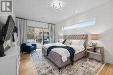 Welcome to 1091 Westpoint Drive, a stunning executive home perched at the summit of Woodland Hills. With over $350,000 in improvements & upgrades to indoor and outdoor areas by current owners, this residence has been thoughtfully designed, built, & finished to reflect its prestigious setting. This is a home that truly rewards coming home — ideal for busy professionals, productive work-from-home days, entertaining friends & family, or enjoying relaxed family weekends. The main floor layout is exceptional, featuring a spacious great room with generous living & dining areas capable of hosting a dozen or more guests. The gourmet kitchen will impress any home chef, offering premium appliances including a double-door refrigerator, 6-ring gas stove, oversized island, & Quartz countertops. A large office/den with a striking floating carbon fibre desk accommodates multiple workstations & a glass-fronted wine room adds function & flair. The primary suite on the main floor is a private retreat, complete with a spa-inspired ensuite featuring a soaker tub, walk-in shower, & direct access to a primary-adjacent hot tub. Upstairs, four additional spacious bedrooms are connected by a central loft and media area with a built-in wet bar, plus access to two upper decks, one with outdoor fireplace & lake view. Additional features include white oak plank flooring, in-floor heating on the main, instant hot water on demand, smart lighting, 6-zone audio, & dual 5.1 surround systems. (id:6769)