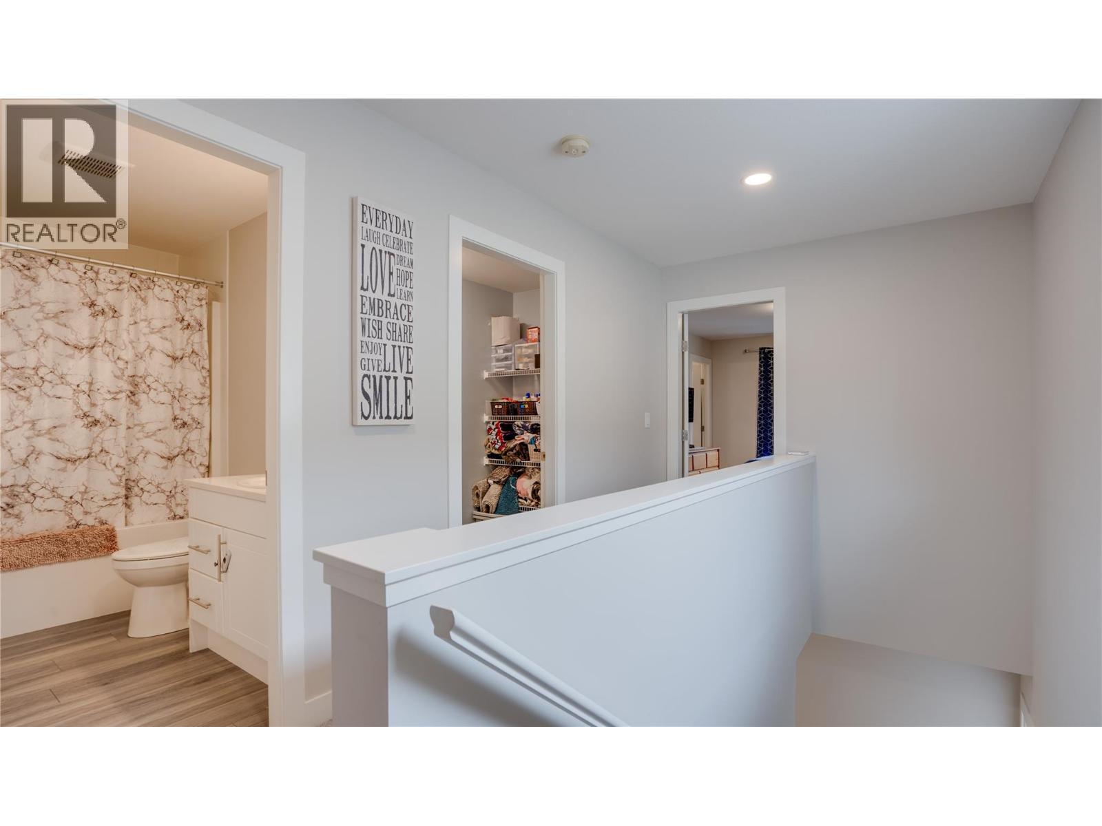 Beautiful 6 year old townhome in Vernon British Columbia. This 3 bedroom 4 bathroom townhome is the perfect starter home and the perfect place to start your family. Boasting a level entry kitchen, livingroom entertainment area with a large deck with a view of Vernon's Okanagan Landing as well as a 2 piece bathroom. Upstairs has a large master bedroom(with a view of Okanagan Lake) with it's only ensuite and walk-in closet, 2 other well sized bedrooms, an additional full bathroom and a laundry room(which is oversized compared to similar units in the complex). Downstairs has an additional full bathroom, large entertainment room and a utility room, perfect for storing all your seasonal gear. The yard is perfect for a pet or enjoying the Okanagan Summers and also has a newer hottub. Garage has also been upgraded with an EV charger! (id:6769)