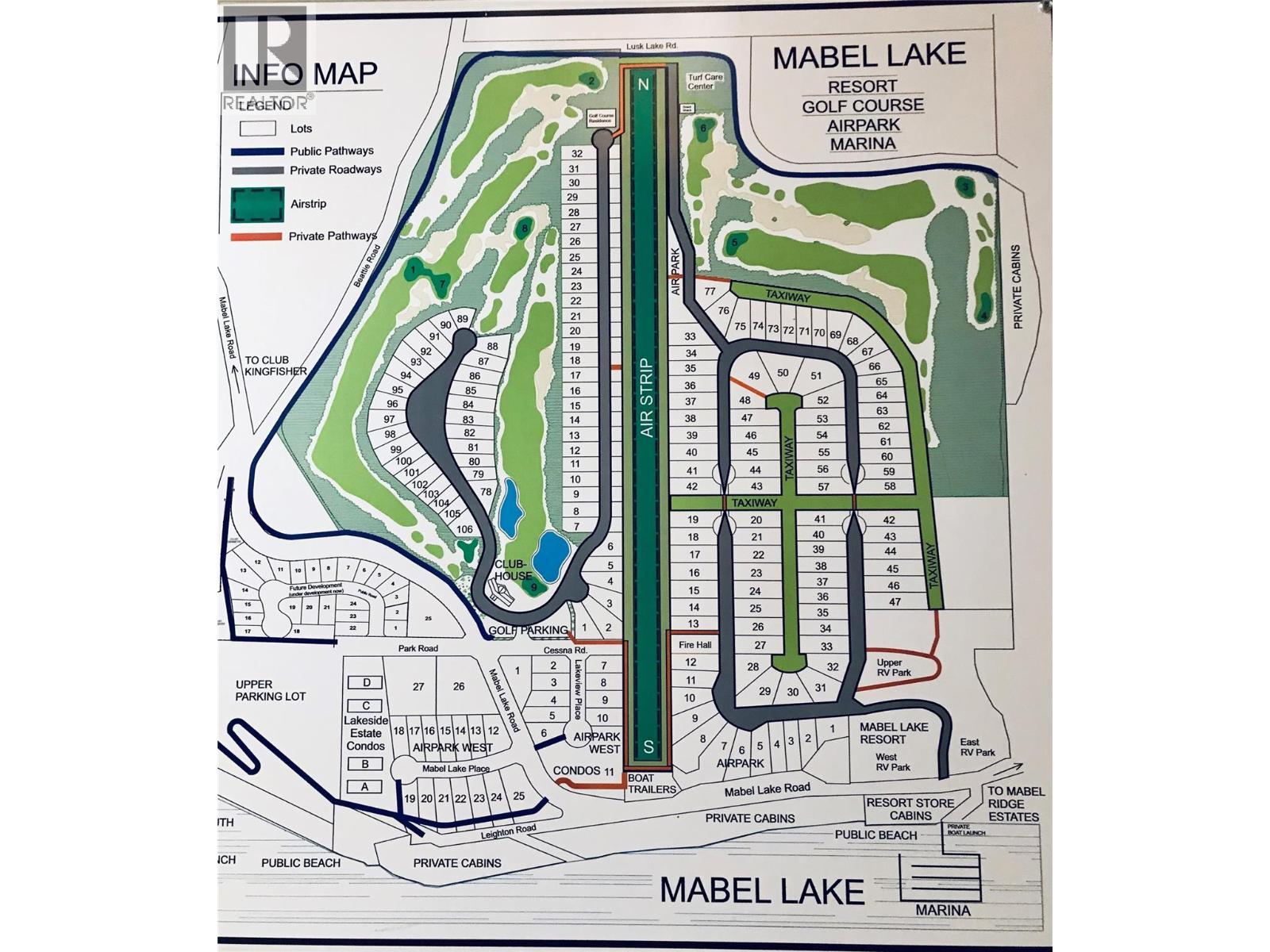 Discover a world-class recreation site and home base for adventure at Mabel Lake, where you can arrive by car, boat, or plane via the private grass airstrip to experience the ultimate Nature’s Playground. This premium lot is perfectly positioned next to the 6th T-Box of a Les Furber-designed golf course, offering the flexibility to build your dream vacation home or bring your RV. The Premier Outdoor Living space is an entertainer’s dream, featuring a low-maintenance composite deck, a custom wine barrel propane fire pit, and a traditional wood-burning fire pit, complemented by a private gazebo and mature trees for a quiet retreat. Highlighting the property's Site Features & Versatility are 2 full-service RV hookups for hosting friends and family, plus a garage conversion with a private guest suite, 3-piece bath, and laundry. A portion of the garage remains for a golf cart and paddleboards, with ample parking for boat trailers. Residents enjoy a short golf cart ride to the lake, marina, and pickleball courts, along with community amenities including a public golf course, clubhouse, and grocery/liquor store. A 26' boat slip and the RV trailer are available to purchase separately. With low strata fees and world-class fishing nearby, this unique resort destination is just an hour from Vernon or Sicamous. (id:6769)