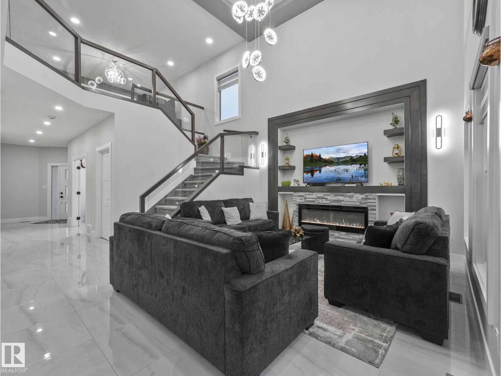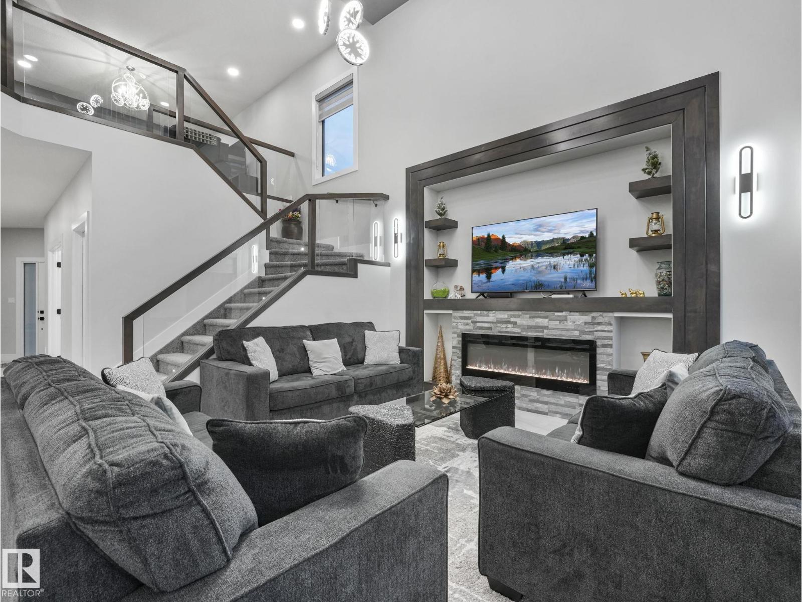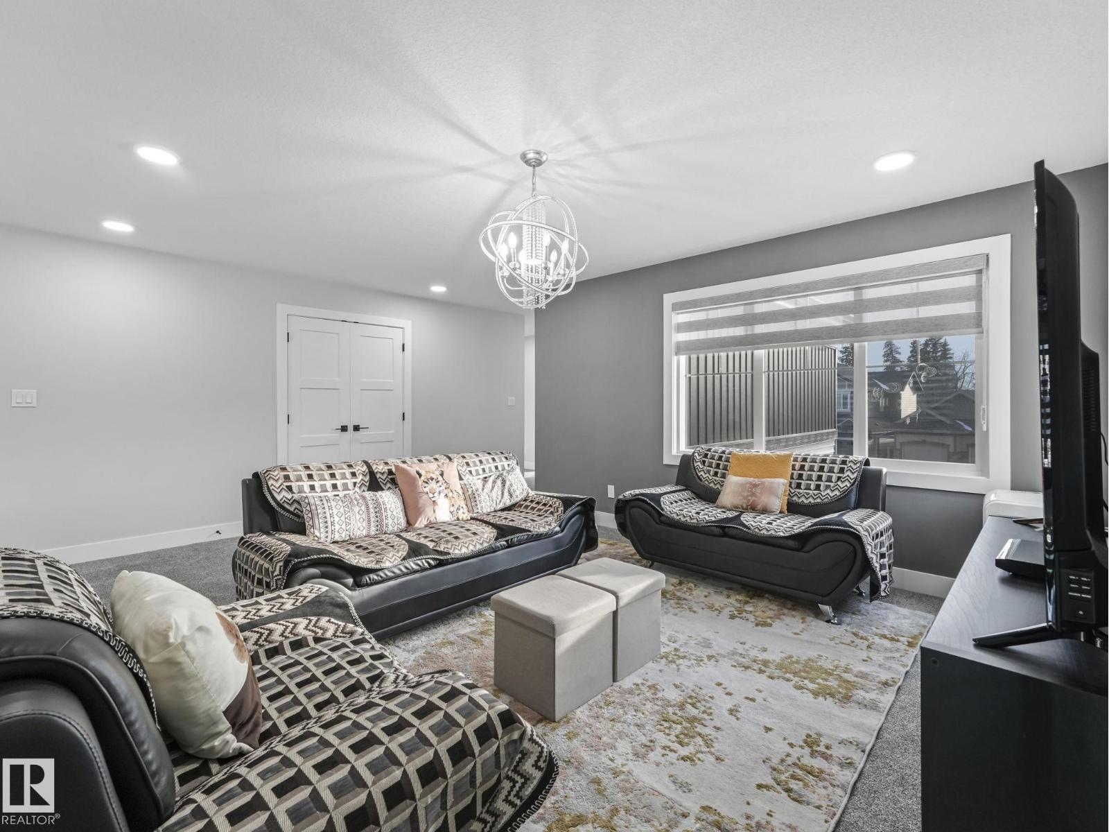 Welcome to your elevated Home2Love in Forest Heights—better than new & beautifully finished on a quiet cul-de-sac. Nearly 3000 sqft of thoughtfully designed space on a large landscaped lot, featuring a stunning open-to-above concept that fills the home with natural light. Built for everyday living & entertaining, enjoy a chef-inspired kitchen with oversized spice kitchen & pantry, quartz countertops, plus bar & wine cooler. The impressive 2-storey living room showcases an electric fireplace, wall of windows & porcelain tiled floors. The main floor den or 5th bedroom & full 3pc bath is perfect for guests or multi-generational living. Upstairs offers a king-sized primary retreat with spa-like ensuite, jetted tub, glass shower & walk-in closet. 3 generous bedrooms with walk-in closets & 2 additional full bath ensuites, spacious bonus room & convenient laundry complete the upper level. Oversized 3-car garage, separate entrance to the basement, dual zoned furnace, designer blinds & golf nearby all add value. (id:6769)
