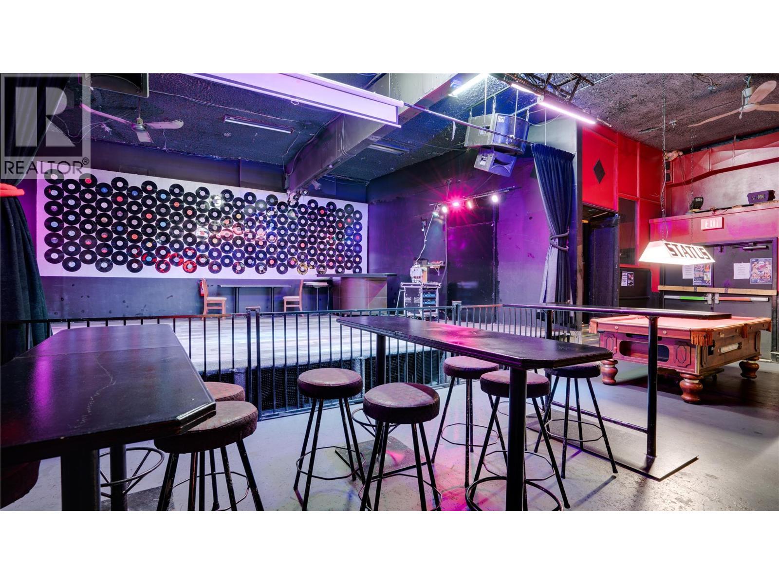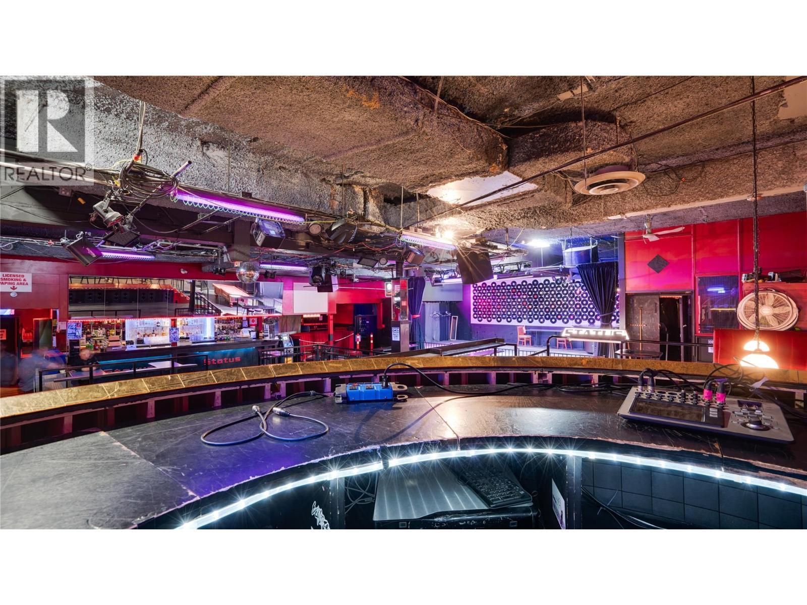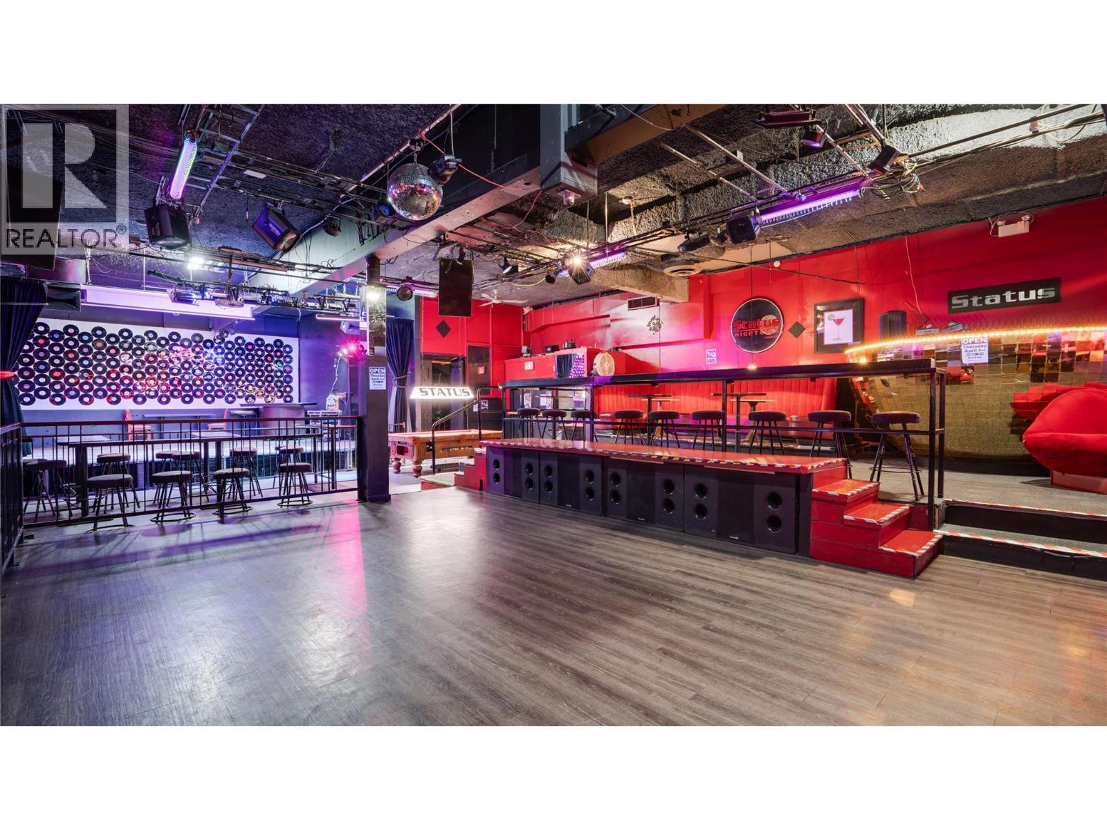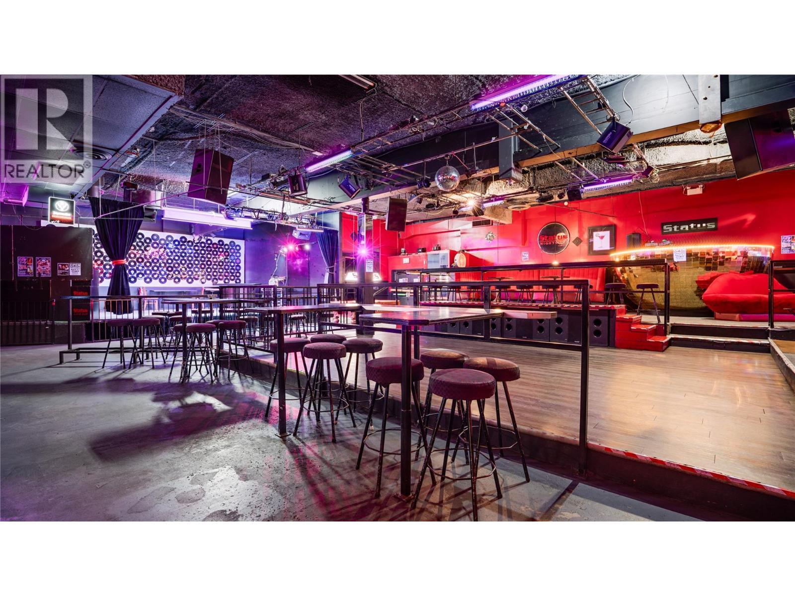 Established downtown Vernon nightclub offering a turnkey opportunity in one of the city’s primary entertainment locations. This well-known venue is fully built out and operational, providing an immediate opportunity for a new owner to step in and continue operations. The business benefits from a central location with strong visibility and consistent foot traffic, positioned within Vernon’s core commercial and nightlife district. The space is designed for entertainment use and includes bar service, seating areas, dance floor, and a fully operational stage, creating a complete nightlife experience. Additional features include a valid liquor license, a fully licensed outdoor smoking patio, and approximately 1,000 sq ft of basement storage, supporting efficient operations and event flexibility. With multiple years of operating history and financials available, this business presents a compelling opportunity for an owner-operator or investor seeking a proven concept with growth potential. The current setup allows for a variety of entertainment and hospitality uses, offering flexibility to maintain the existing concept or reposition to suit a new vision. Option to purchase the business together with the underlying real estate is also available. (See separate commercial listing MLS&# 10381922 for details.) (id:6769)