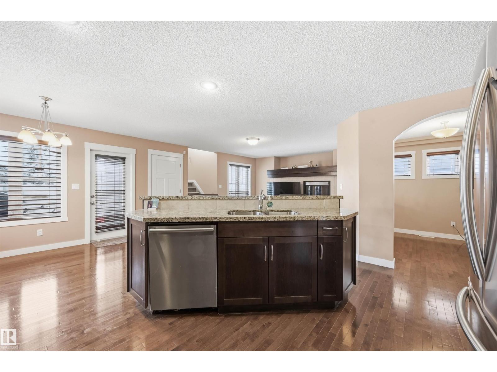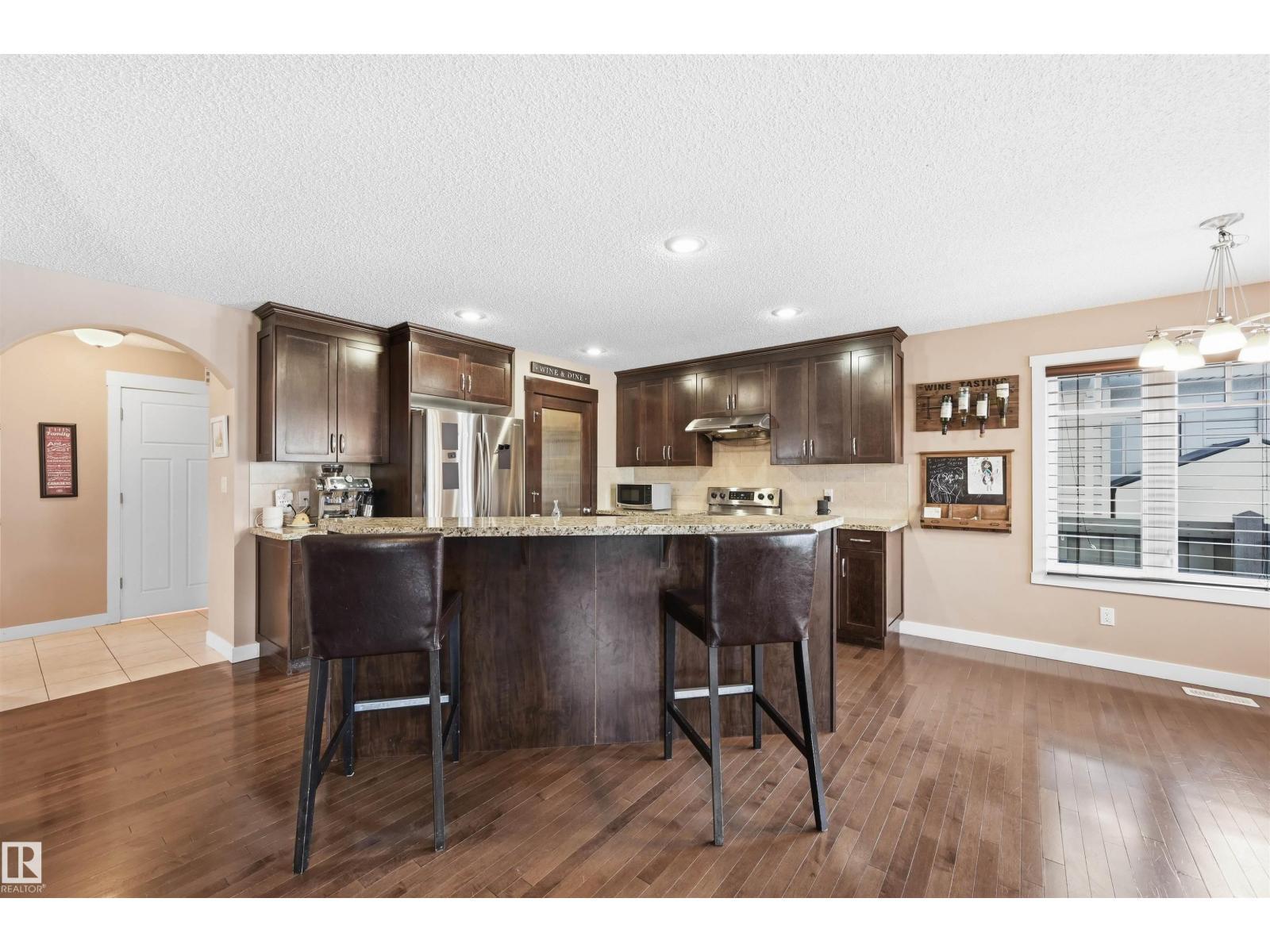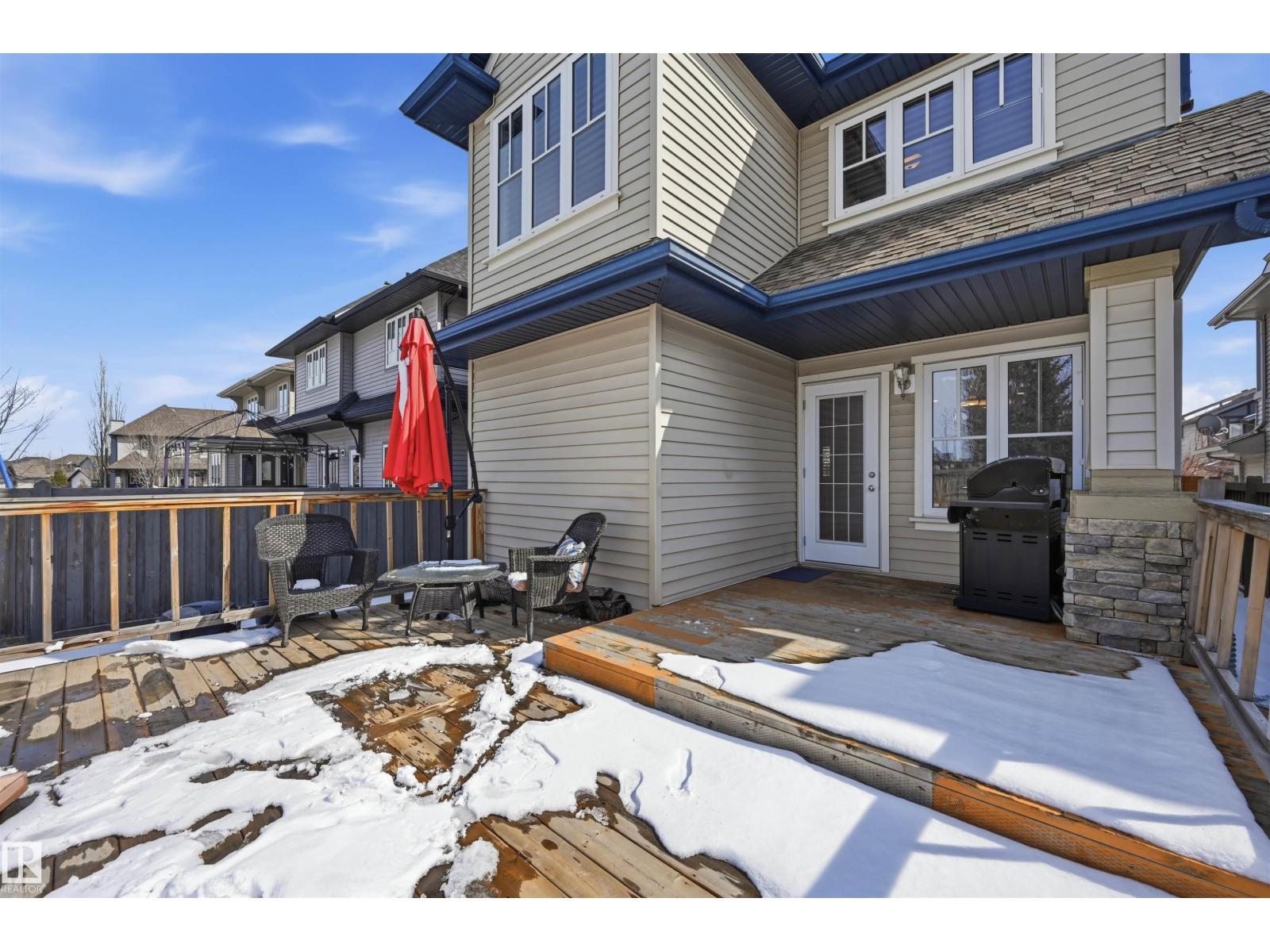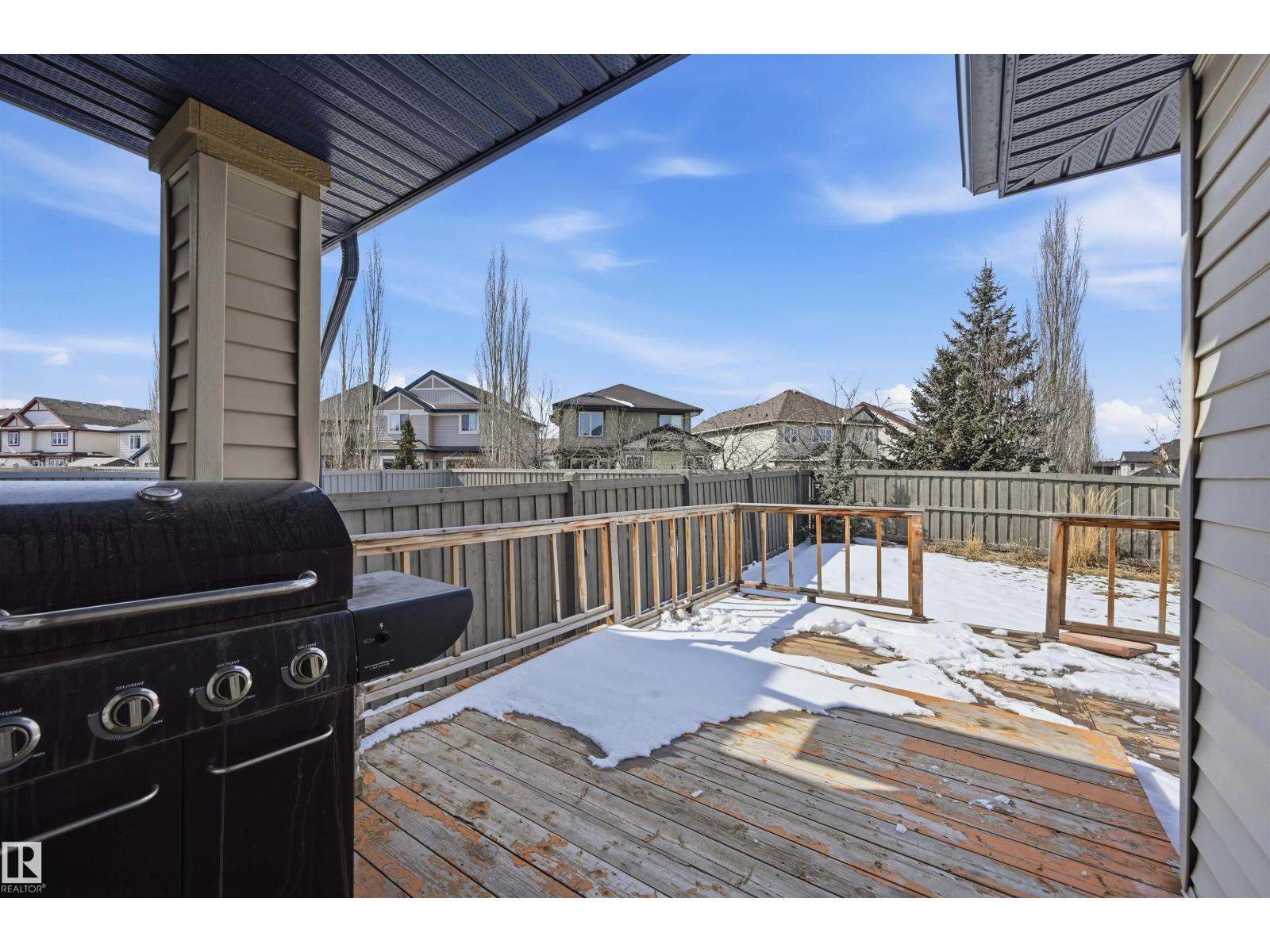 Fabulous Ambleside location just steps to Dr. Margaret-Ann Armour School & quality built by Cameron Homes boasting 5 bedrooms! Open concept plan w/ lots of natural light, ideal for those who love to entertain. Main floor flex rm can be used as a den or formal dining rm. Living rm located right off of kitchen & bright dining nook. Enjoy spacious kitchen w/ cabinets galore, stainless steel appliances & a walk through pantry leading to mudrm. Upper level has 3 spacious bdrms & bonus rm (all baths have granite counters & tile flooring). Sunny primary rm boasts a sitting area, walk-in closet plus double closets. Ensuite equipped w/ dual sinks, oversized soaker tub & separate shower. Extended deck for outdoor entertaining plus big yard! NEWER BASEMENT development w/ 2nd living rm, 2 more bdrms & bathrm roughed-in! Upgrades include newer carpet, AC, granite throughout, central vac, hardwood, water softener & more! Close to parks/pond, transit, shopping/Windermere Currents & easy access to the Henday! (id:6769)