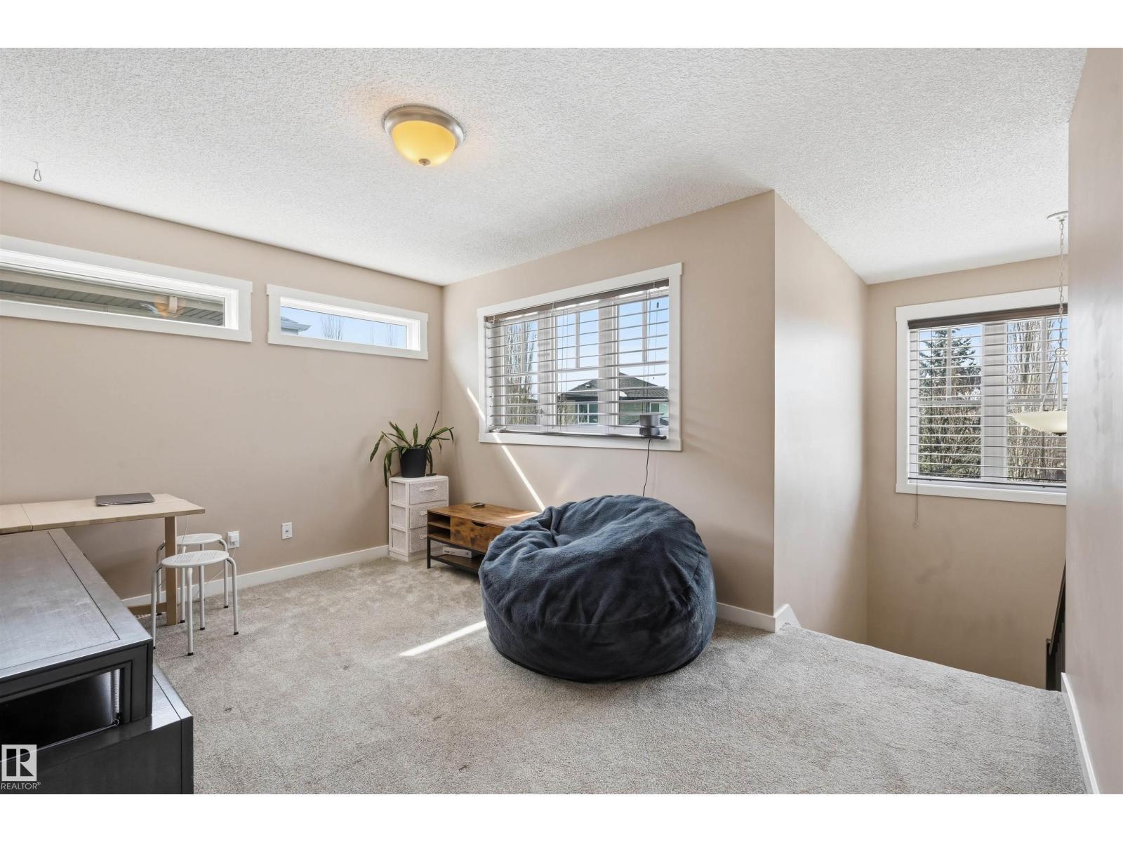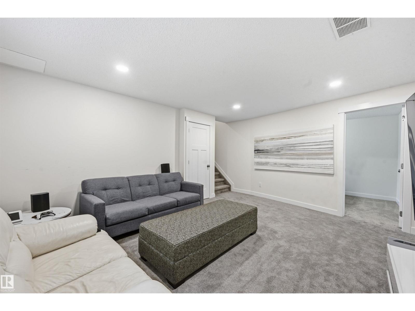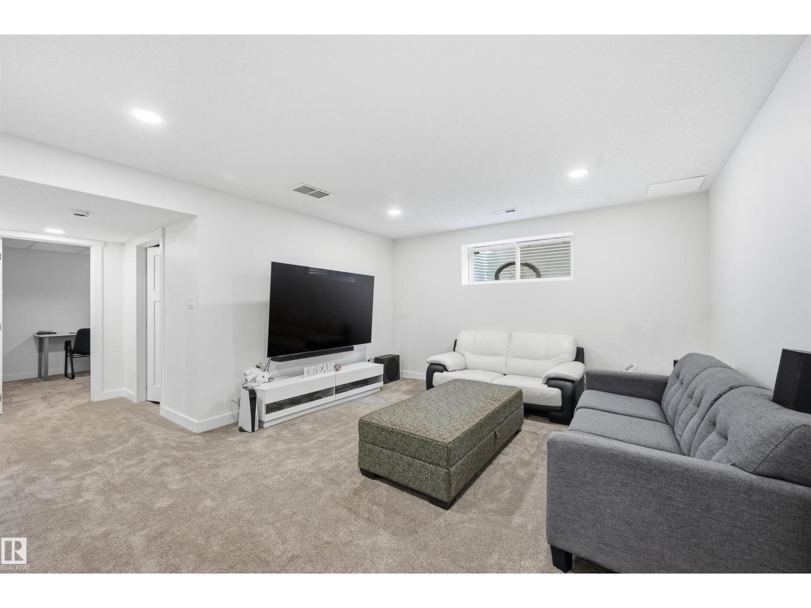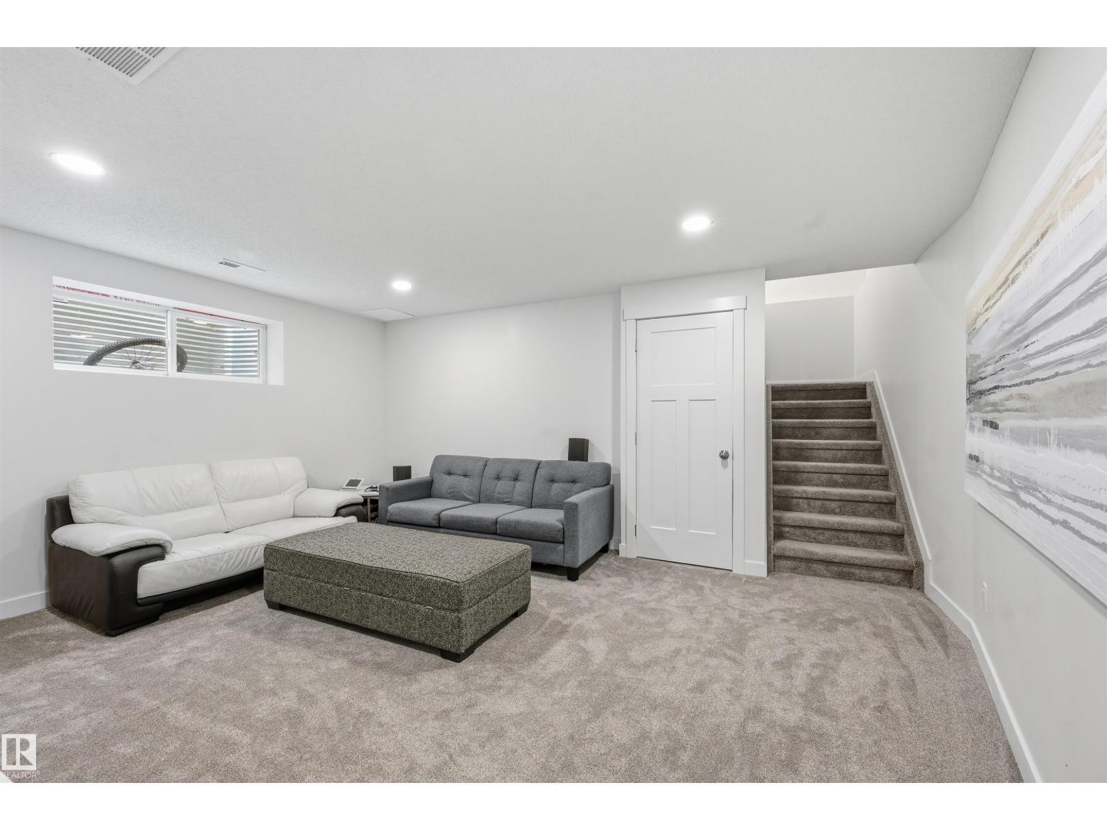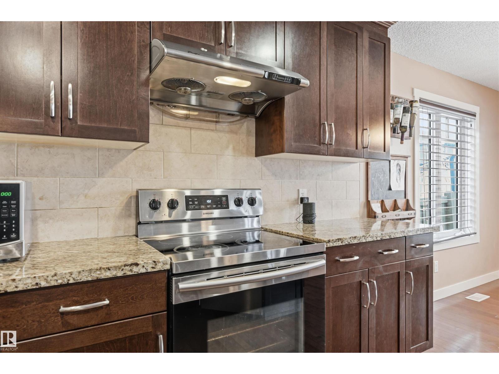 Fabulous Ambleside location just steps to Dr. Margaret-Ann Armour School & quality built by Cameron Homes boasting 5 bedrooms! Open concept plan w/ lots of natural light, ideal for those who love to entertain. Main floor flex rm can be used as a den or formal dining rm. Living rm located right off of kitchen & bright dining nook. Enjoy spacious kitchen w/ cabinets galore, stainless steel appliances & a walk through pantry leading to mudrm. Upper level has 3 spacious bdrms & bonus rm (all baths have granite counters & tile flooring). Sunny primary rm boasts a sitting area, walk-in closet plus double closets. Ensuite equipped w/ dual sinks, oversized soaker tub & separate shower. Extended deck for outdoor entertaining plus big yard! NEWER BASEMENT development w/ 2nd living rm, 2 more bdrms & bathrm roughed-in! Upgrades include newer carpet, AC, granite throughout, central vac, hardwood, water softener & more! Close to parks/pond, transit, shopping/Windermere Currents & easy access to the Henday! (id:6769)