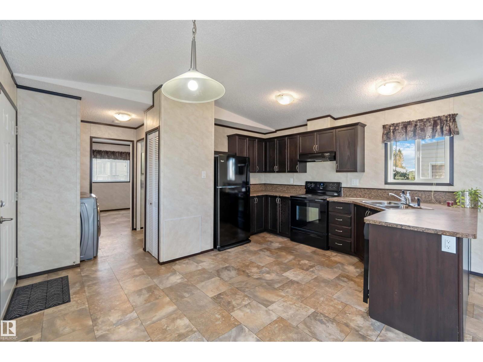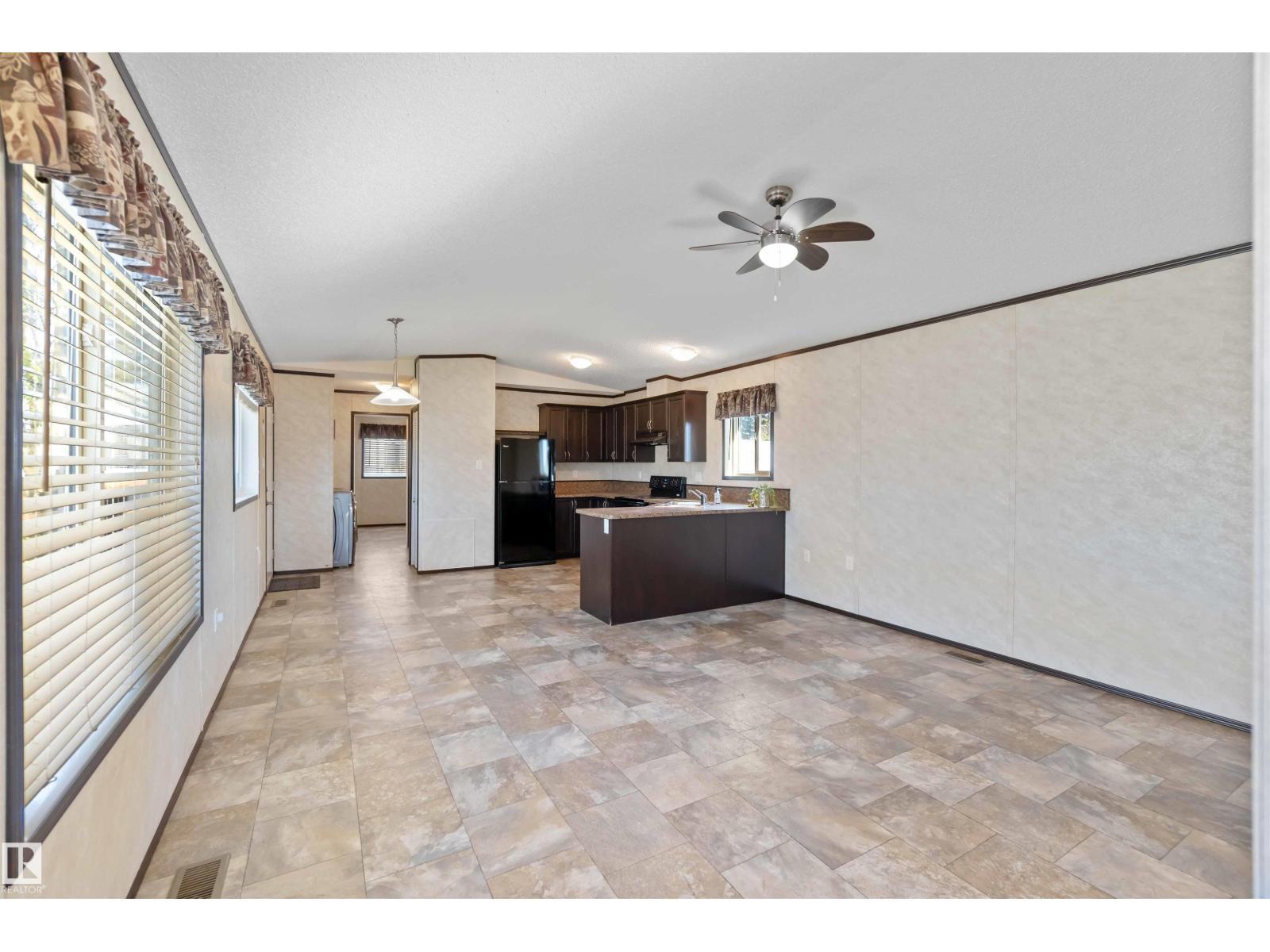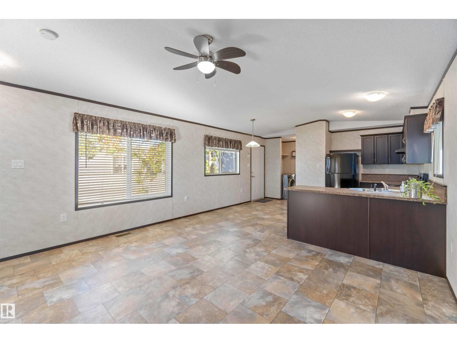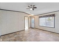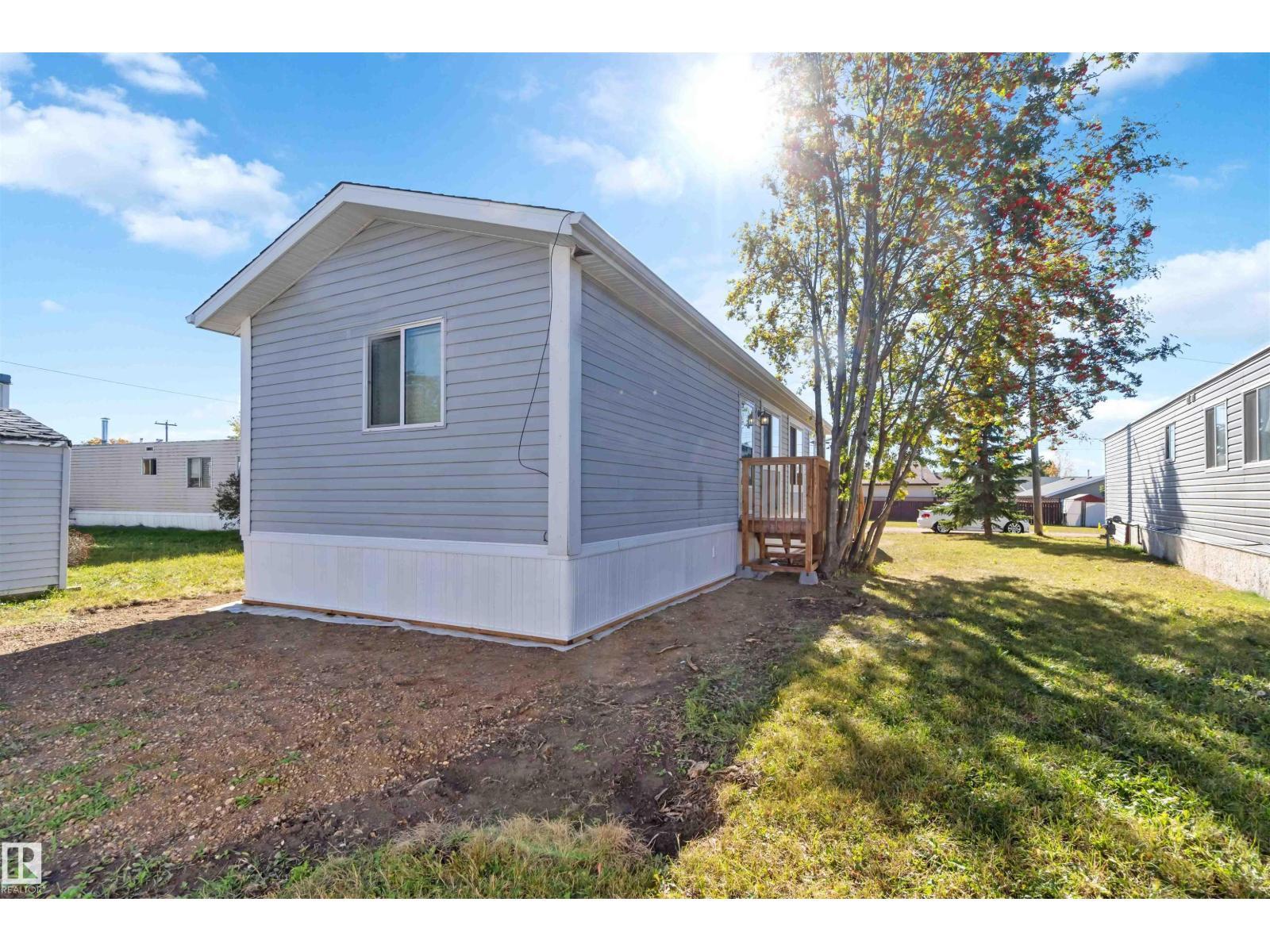 Located in the quiet community of Gibbons, this stunning 2013 16-foot wide mobile home offers 844 sq. ft. of comfortable living space, featuring 2 bedrooms and 1 bath. Better than new, this home comes with vaulted ceilings for an open, airy feel. Recent upgrades include a brand-new side skirt, new heat trace, and two newly installed staircases. Move-in ready—nothing needs to be done! Conveniently close to schools and Main Street, this home is perfect for first-time buyers or those looking to downsize. Some Picture have been virtually Stage . (id:6769)