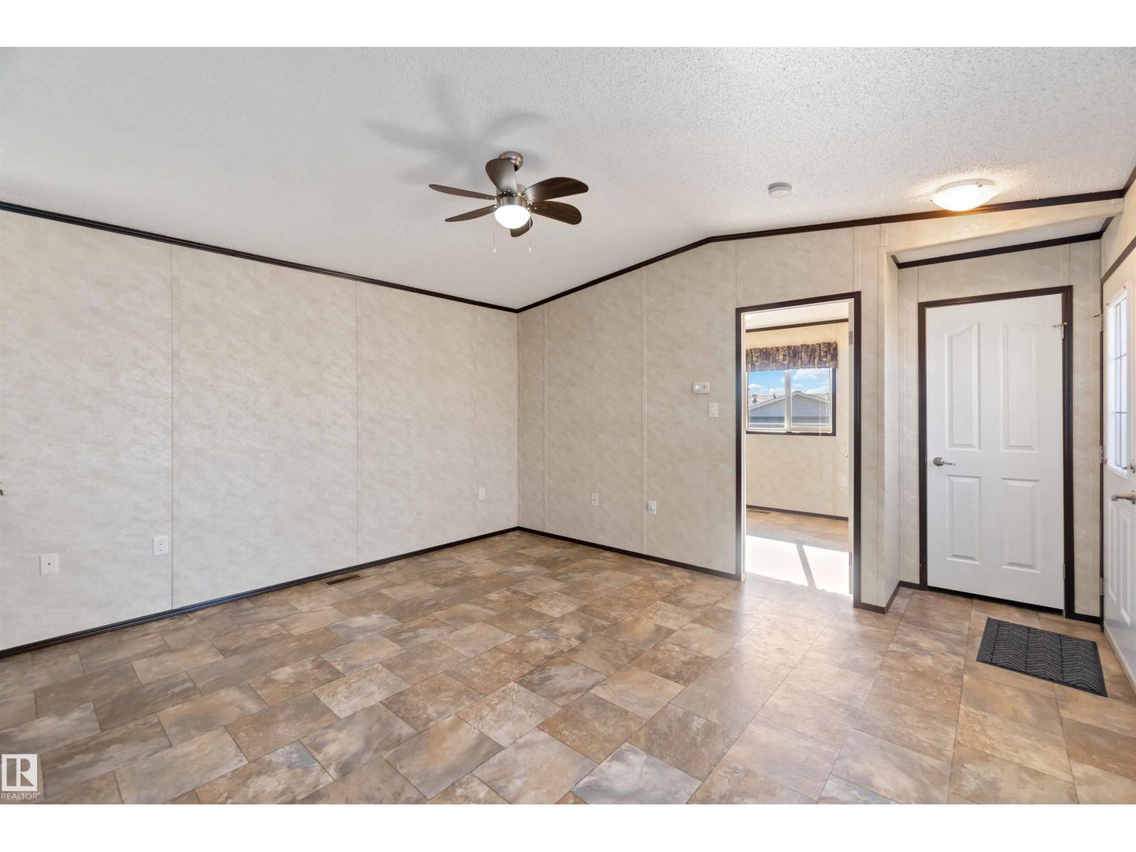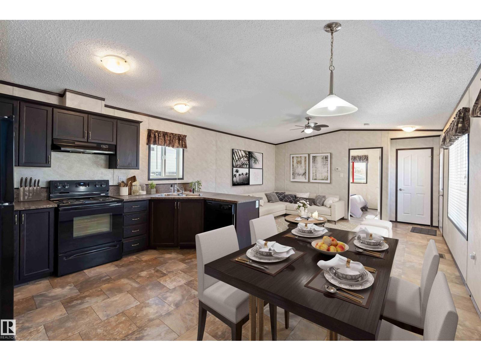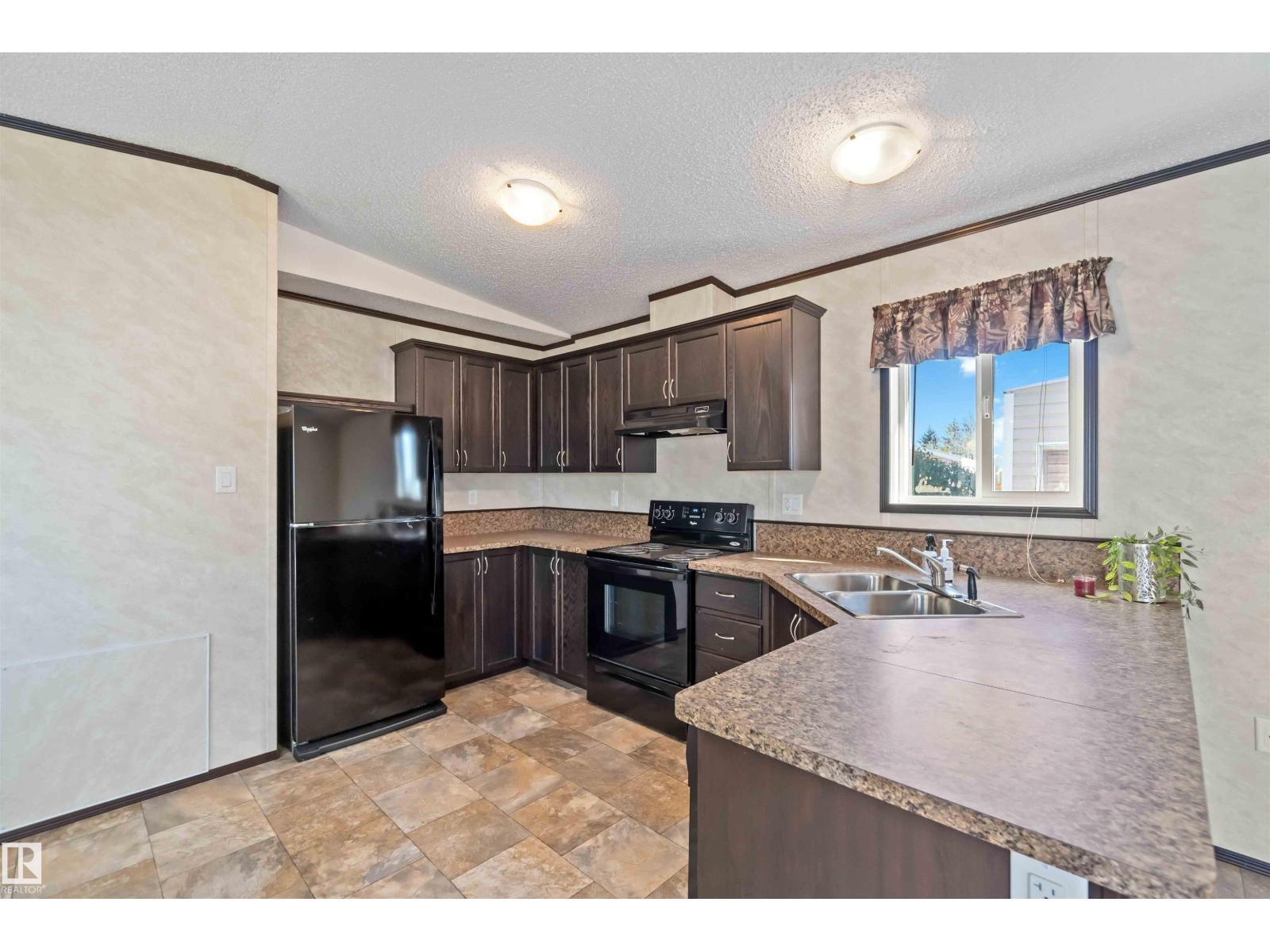 Located in the quiet community of Gibbons, this stunning 2013 16-foot wide mobile home offers 844 sq. ft. of comfortable living space, featuring 2 bedrooms and 1 bath. Better than new, this home comes with vaulted ceilings for an open, airy feel. Recent upgrades include a brand-new side skirt, new heat trace, and two newly installed staircases. Move-in ready—nothing needs to be done! Conveniently close to schools and Main Street, this home is perfect for first-time buyers or those looking to downsize. Some Picture have been virtually Stage . (id:6769)