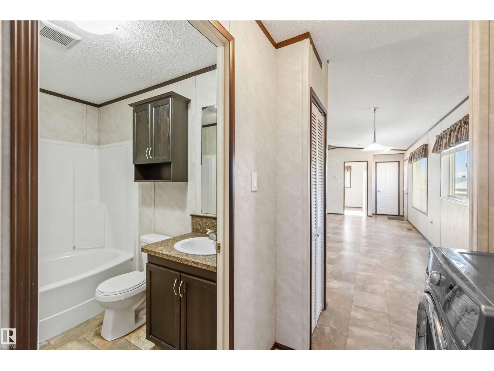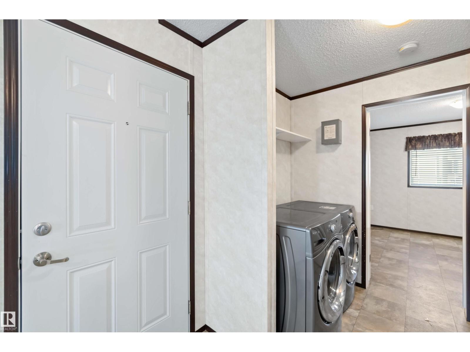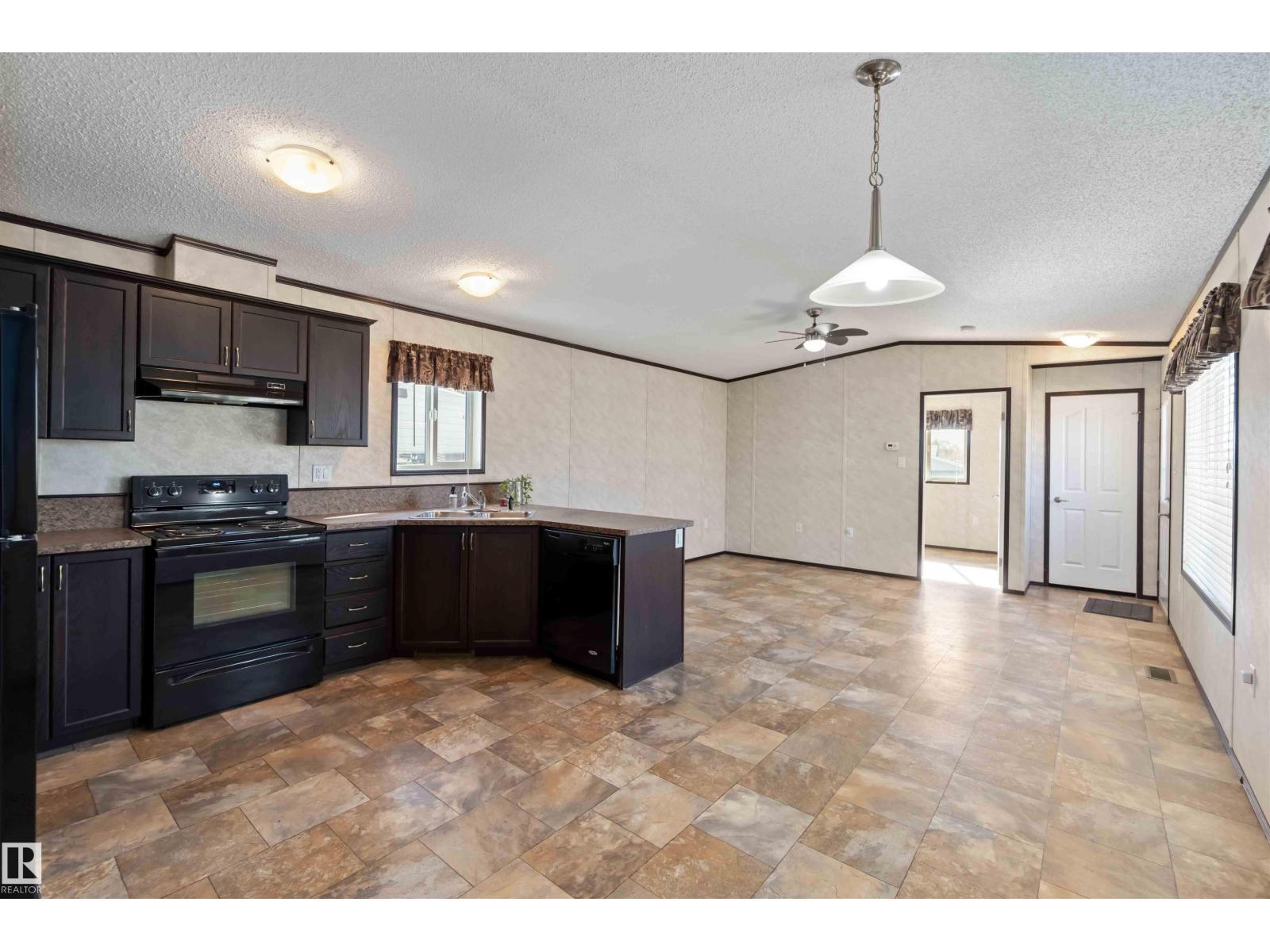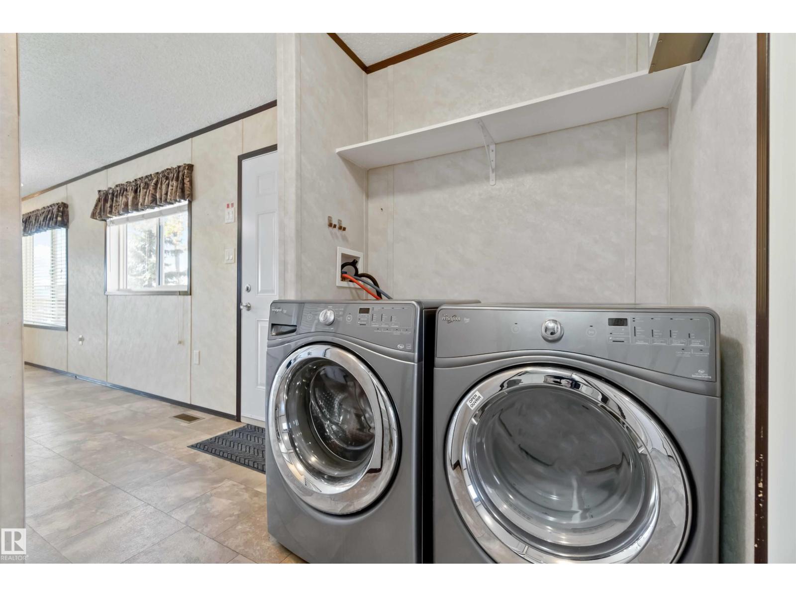 Located in the quiet community of Gibbons, this stunning 2013 16-foot wide mobile home offers 844 sq. ft. of comfortable living space, featuring 2 bedrooms and 1 bath. Better than new, this home comes with vaulted ceilings for an open, airy feel. Recent upgrades include a brand-new side skirt, new heat trace, and two newly installed staircases. Move-in ready—nothing needs to be done! Conveniently close to schools and Main Street, this home is perfect for first-time buyers or those looking to downsize. Some Picture have been virtually Stage . (id:6769)