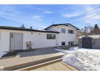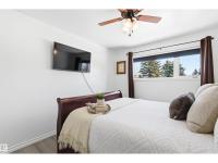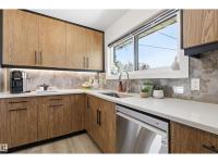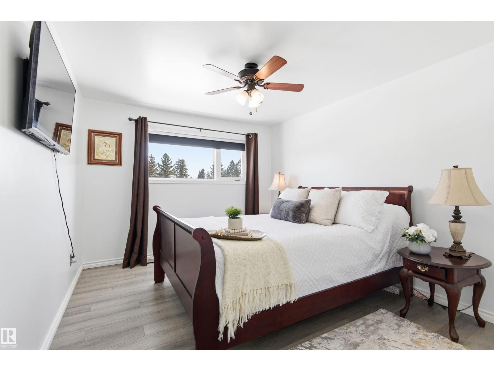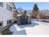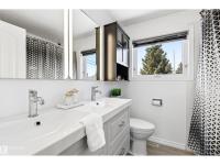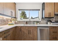 Beautifully renovated, air-conditioned home in a prime location facing a park! This inviting property offers a bright living room with adjoining dinette, flowing seamlessly into a fully remodelled kitchen featuring quartz countertops, updated cabinetry, backsplash, and newer appliances. The main level includes a spacious primary bedroom plus two additional bedrooms, all with large windows and ample closet space, along with a stylish full bath with double vanity. The lower level provides excellent versatility with a family room, fourth bedroom, and second bathroom. Enjoy the SUNNY west-facing fenced yard with a composite deck, greenhouse, garden space, and storage shed. The heated double garage offers both front drive and rear lane access with overhead doors on both sides. Recent upgrades include shingles (2018), furnace (2018), hot water tank (2024), A/C (2024), flooring, paint, doors, windows, and lighting. Close to schools, parks, shopping, dining, and transit. (id:6769)