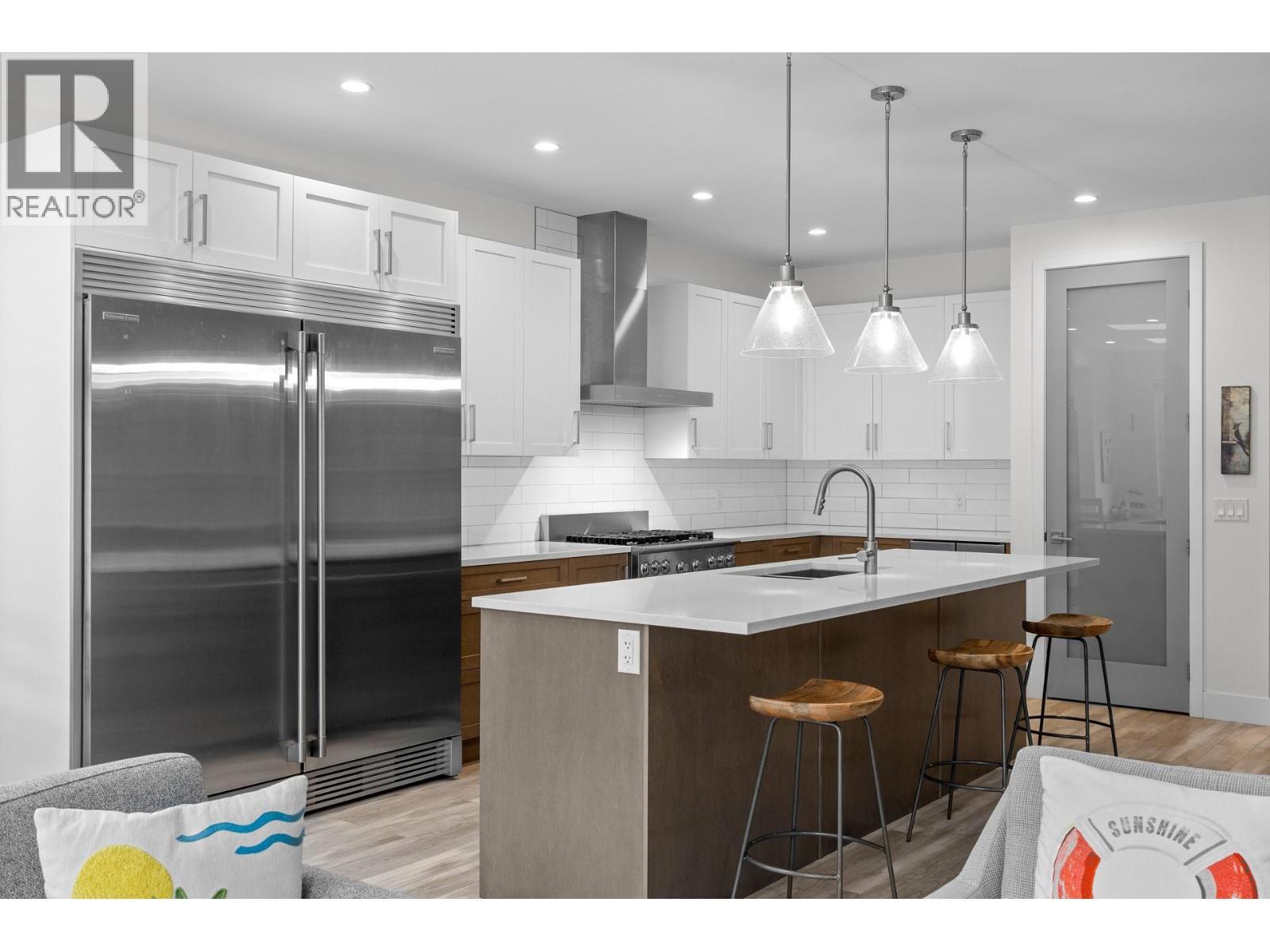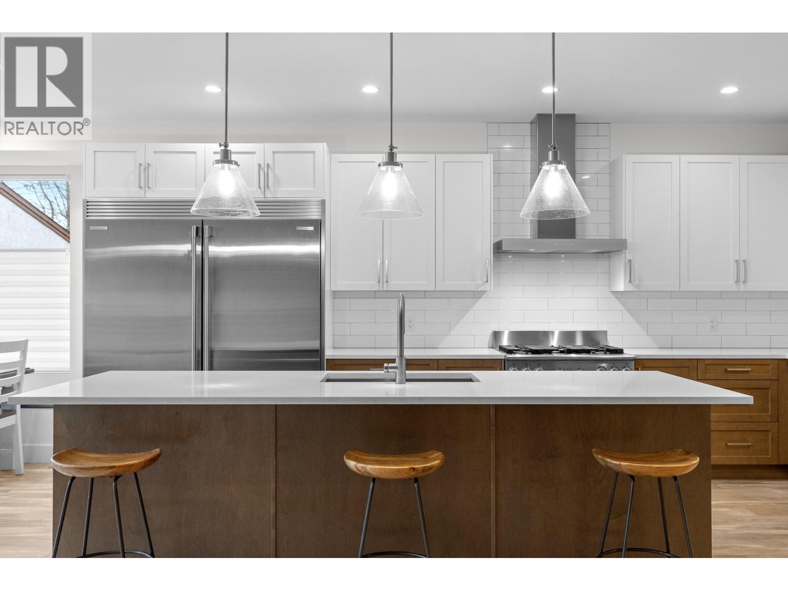 Beautiful Quality Modern Home in a vibrant central Kelowna neighbourhood. Just steps to parks, beach, schools, shops, transit and hospital. This bright 2300 sq ft home, built in 2017, by the award-winning Thomson Dwellings, is ideal for a modern family or empty nesters looking for a turn-key solution in the centre of the city. The main floor features a bright living room with 2 dining areas, a large open kitchen with designer appliances + a huge island, wine fridge and a unique built-in side bar or countertop. Relax in an oversized primary bedroom with soaring ceilings, a walk-in closet, spa-like bath with heated tiles and a private enclosed patio. Main floor living continues with a mudroom, laundry + sink, powder bath and a separate 9'x22' multi-purpose room that could be used for a gym, theatre room, home-based business (separate entrance), or even easily converted back to a garage. Upstairs, find an open-concept family/media room with a homework/desk area, 2 bdrms and a large shared bathroom. Outdoors is a custom-built studio/workshop with power and heat that could be a home office, gym, studio or workshop. The zen-like enclosed backyard is irrigated and features space for a sauna/plunge or hot tub, is anchored by a beautiful Magnolia tree, has a shaded spot for loungers and is maintenance-free. The home features built-in speakers, Hunter Douglas blinds, a hide-a-hose vacuum, an alarm system and is truly lock and leave. Great neighbours. Move in ready for Summer 2026. (id:6769)
