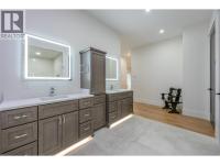 Custom-built with exceptional quality, this Augusta Lane home is perched on a 1/3 acre lot and offers over 5,500 sq.ft. of refined living—2,800 sq.ft. on the main and 2,700 sq.ft. below. Designed with unique styling and built to an uncompromising standard, this residence is priced well below replacement cost. Featuring an ICF foundation, Hardie siding, and concrete tile roof, with approx. 8 years of new home warranty remaining. Inside, 10-ft ceilings, 8-ft solid wood doors, and wide plank white oak flooring create a strong architectural presence. The chef’s kitchen delivers premium cabinetry, quartz counters and backsplash, a full butler’s pantry, Bosch appliances with double wall ovens, and a 5-element induction cooktop. The primary suite offers a custom walk-in closet with island and a spa-inspired ensuite with oversized tiled shower. Comfort and efficiency are elevated with natural gas on-demand hot water, standby generator, and full home water filtration, softener, and reverse osmosis. Outdoor living is anchored by a massive covered deck, gas BBQ hookups, hot tub, and pool-ready yard with underground irrigation. Parking and workspace are unmatched with an oversized double garage for full-size pickups plus a massive 2-bay approx. 1,300 sq.ft. commercial-grade shop with 16-ft ceilings, heating, A/C, and private bathroom. Complete with Hunter Douglas blinds, security, and holiday lighting. Just minutes to Osoyoos Golf Club and Osoyoos Lake. (id:6769)
