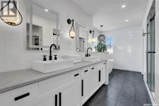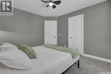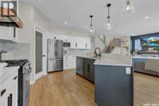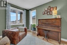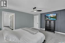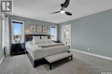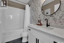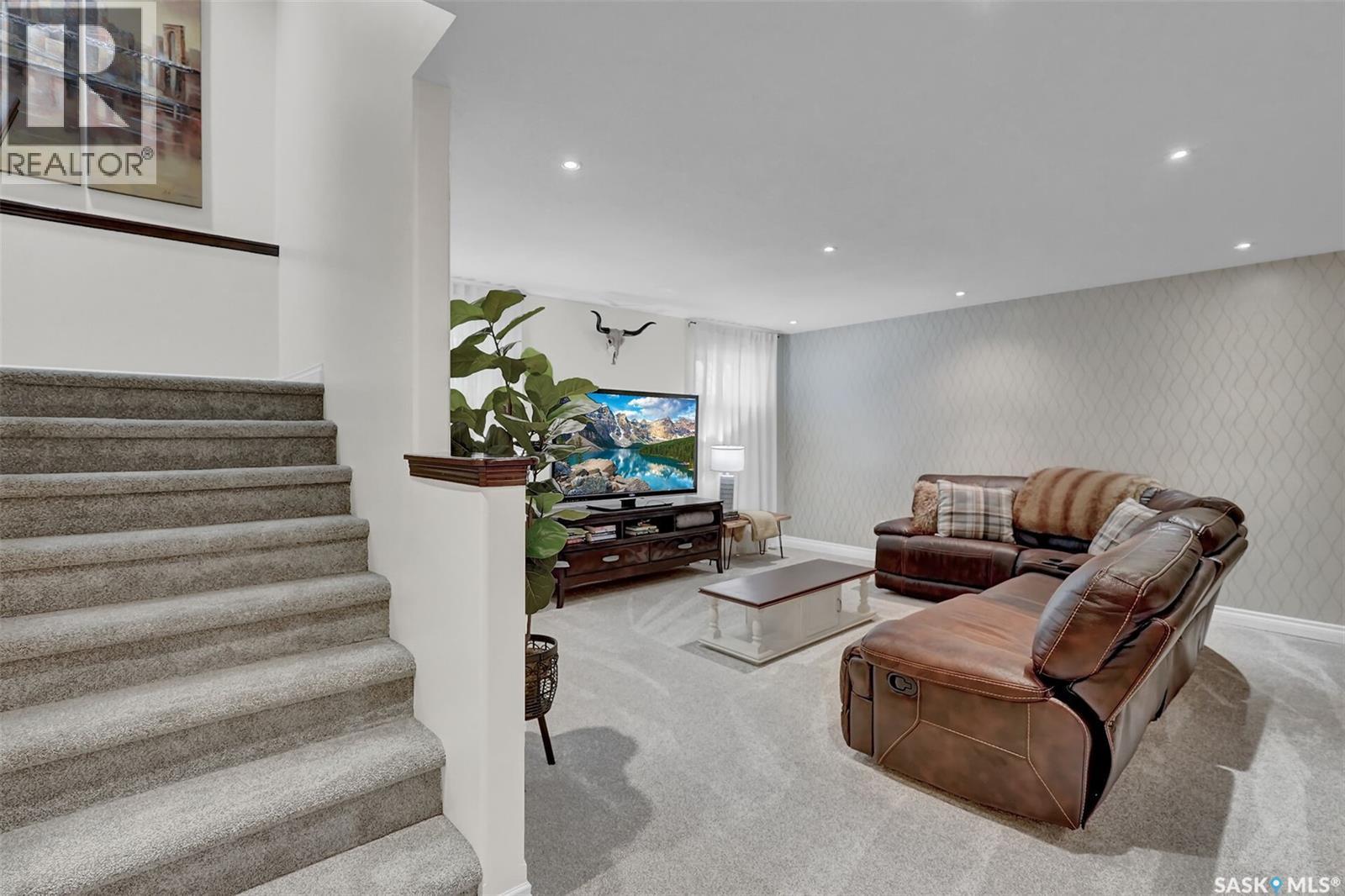 Enjoy the best of both worlds in White City—peaceful, small-town living just minutes from Regina, with easy access to schools, shopping, and amenities. This 4 bedroom 4 bathroom home is set on a 0.5-acre pie-shaped lot backing the 4th hole of Aspen Links Golf Course. This impressive two-storey built by Gilroy Homes offers privacy and scenic views. The main floor features 9-foot ceilings and light hardwood throughout the living and dining areas, with a gas fireplace and built-in shelving adding warmth and style. The gorgeous kitchen includes two-tone cabinetry, quartz countertops, tiled backsplash, and a large island with seating. A walk-through pantry connects to the mudroom and heated garage. Spacious dining area is a great spot to enjoy family dinners and entertain guests. Added bonus is the office/flex room and the 2-piece powder room that complete the main level. Upstairs offers a spacious primary suite with a spa like 5-piece ensuite featuring heated tile floors, custom shower, soaker tub, and heated towel bar. Primary retreat also includes a wonderful walk in closet space. Two additional bedrooms and another 4 piece bath along with a laundry room offering good storage complete the second level. The fully developed basement includes a family room with wet bar that is just perfect for family movie nights of enjoying time with friends. An additional bedroom (window may not meet current egress) a 3-piece bath, a versatile storage room or gym space with rough-in for second laundry as well as the utility room complete the lower level. The heated, insulated double garage includes built-in storage and a dog wash station. The stunning landscaped yard features a spacious trex deck, lower patio area, underground sprinklers, plus a 20’ x 20’ insulated shop with overhead door—perfect for storage or a golf cart. This property has been very well cared for and offers many unique features. A true pleasure to show! (id:6769)