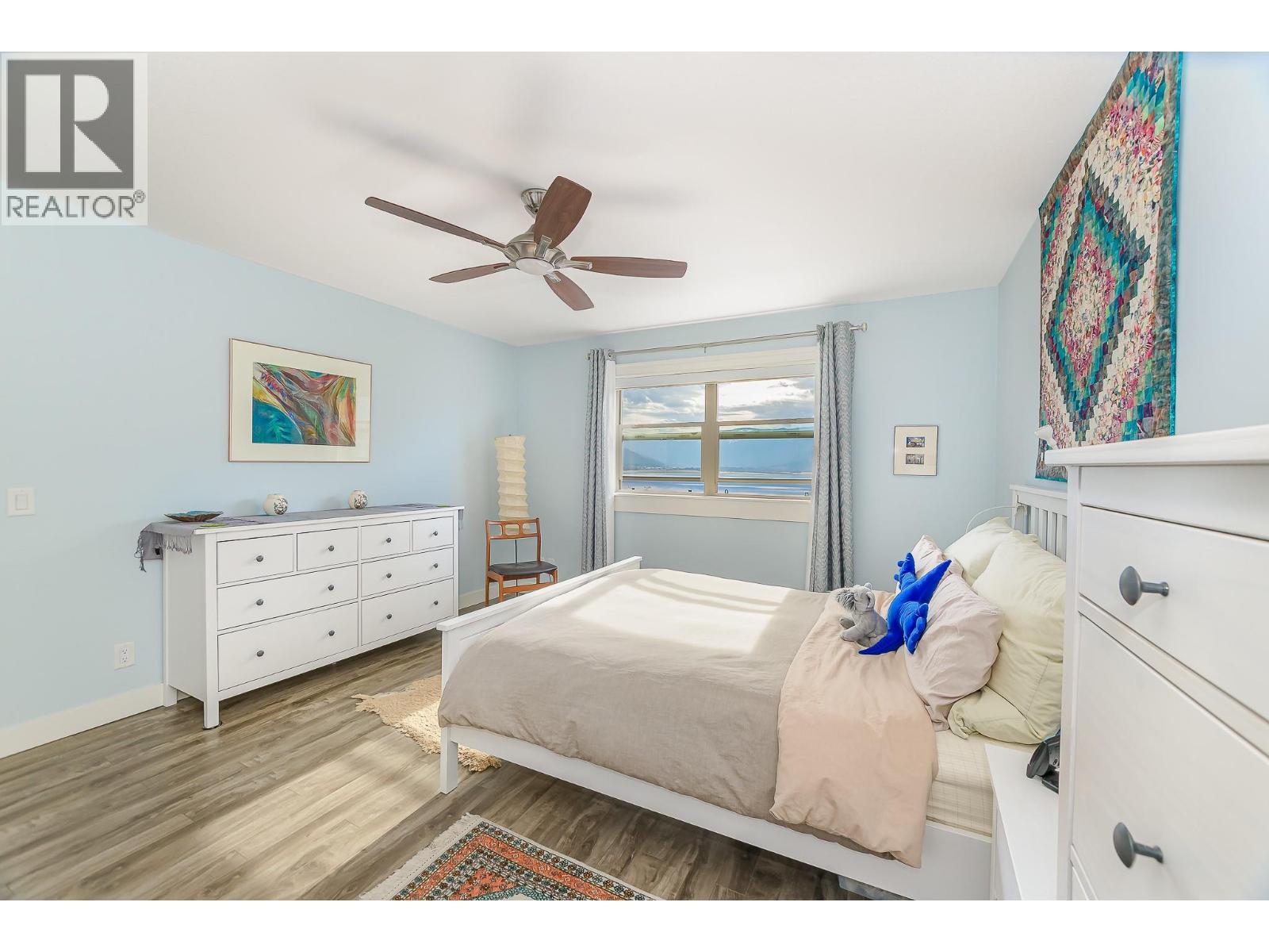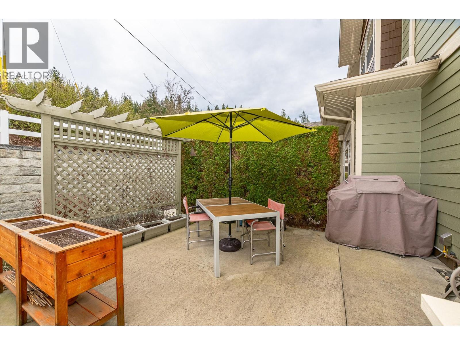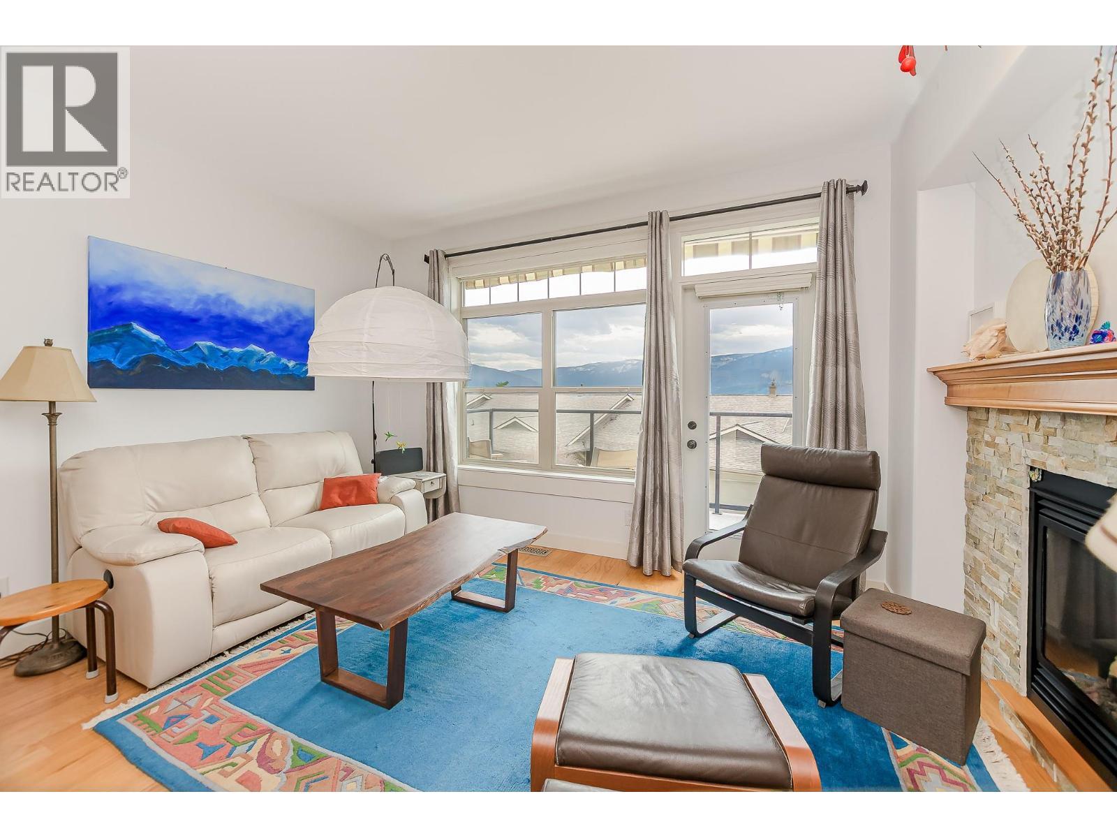 SPOIL YOURSELF with this beautiful LAKE VIEW townhome in sought after Ravens’ Croft. Thoughtfully crafted and filled with natural light, the main level features a contemporary kitchen with Corian counters, new stainless appliances, hardwood floors, and exceptional storage. The living room offers a rock faced gas fireplace and stunning views of the lake and Mt. Ida. A main floor bedroom or flex room (with included Murphy bed), full bath, laundry, dining area, and both a front sun deck and a back private patio with flower garden is perfect for summer entertaining. Upstairs, an open office/family room space captures breathtaking lake views. The spacious primary suite includes a luxurious ensuite with double sinks, soaker tub, tiled walk-in shower, and vanity area. A second bedroom and full bath provide ideal guest accommodation. Designed with comfort and efficiency in mind, this home includes geothermal heating/cooling, new hot water tank 2025, and an oversized 27' x 20' double garage suitable for a full sized truck. Exterior maintenance is included in the strata fee for worry-free living. Ravens’ Croft is age friendly, pet friendly (dogs up to 16"" at shoulder), and allows rentals with restrictions. A rare blend of quality construction, smart design, and unforgettable views is truly one of a kind. Easy walking access to trials, Coyote Park and the Foreshore Trail. (id:6769)