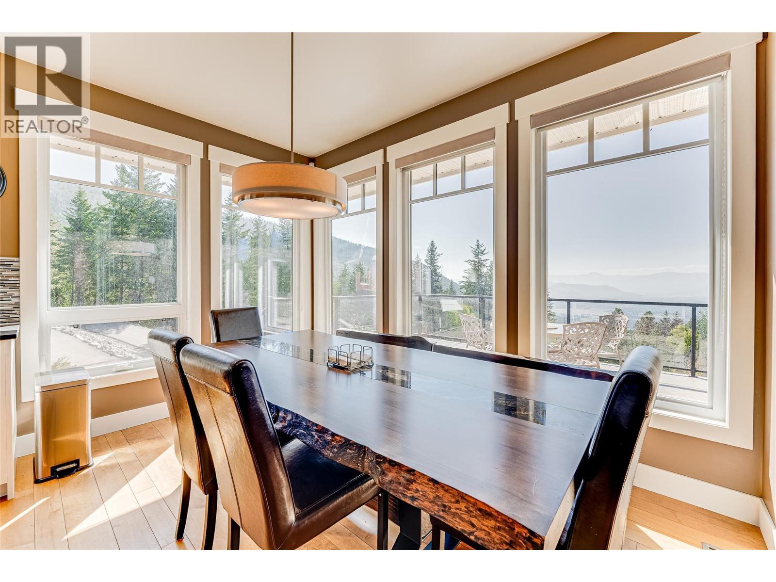 Welcome to this custom designed 5-bedroom rancher offering over 5,000 sqft of beautifully finished living space. Tucked away on a private 5-acre parcel surrounded by nature, this peaceful retreat captures sweeping views of the city and Okanagan Lake blending privacy, luxury, and comfort in perfect harmony. Thoughtfully crafted with highend finishes and generous living areas throughout this home is truly exceptional. The chef-inspired kitchen is a showpiece, featuring custom cabinetry, an oversized island with built-in sink, gas stove, under-cabinet lighting, and a striking glass tile backsplash. The bright and airy dining nook showcases panoramic lake and city views and opens onto a partially covered stamped concrete deck perfect for entertaining or quiet mornings. The stunning great room impresses with spectacular inlaid ceilings, a cozy fireplace, and expansive windows that flood the space with natural light. Canadian long-length maple hardwood flooring flows throughout the main level, enhancing the home’s warmth and elegance. The primary suite offers direct deck access, a large walk-in closet, and a spa-inspired 5-piece ensuite designed for relaxation. Downstairs, the walkout basement features in-floor radiant heating and includes two spacious bedrooms, a full bathroom, games room, flex space, TV room, and laundry room providing plenty of room for family and guests. All this and a three car garage. Outdoor enthusiasts will appreciate the easy access to nearby hiking and ATV trails. For those needing extra space for work or hobbies, the fully finished 40’ x 50’ heated detached shop is a rare find, complete with 12’ x 14’ drive-thru doors, 16-foot ceilings, and ample paved parking for vehicles and recreational toys. This one-of-a-kind luxury estate offers the lifestyle you’ve been dreaming of privacy, space, and unforgettable views all in one remarkable property. (id:6769)