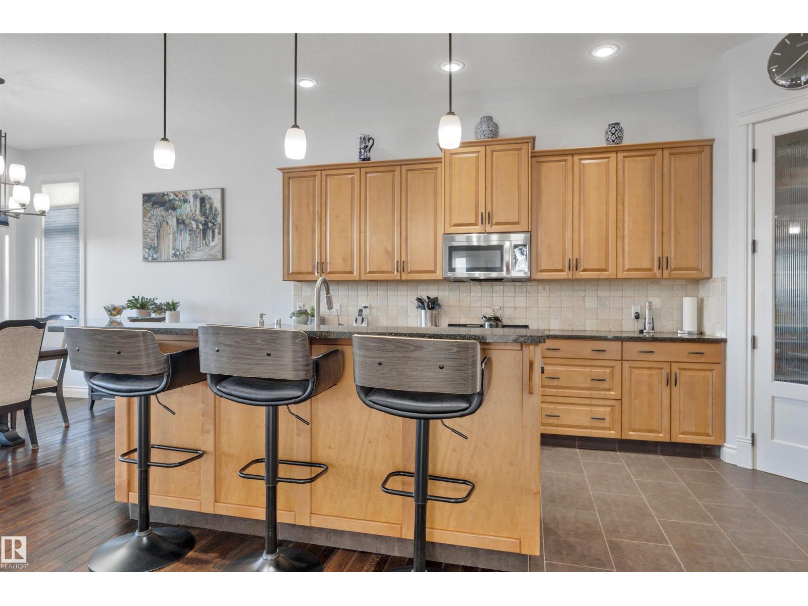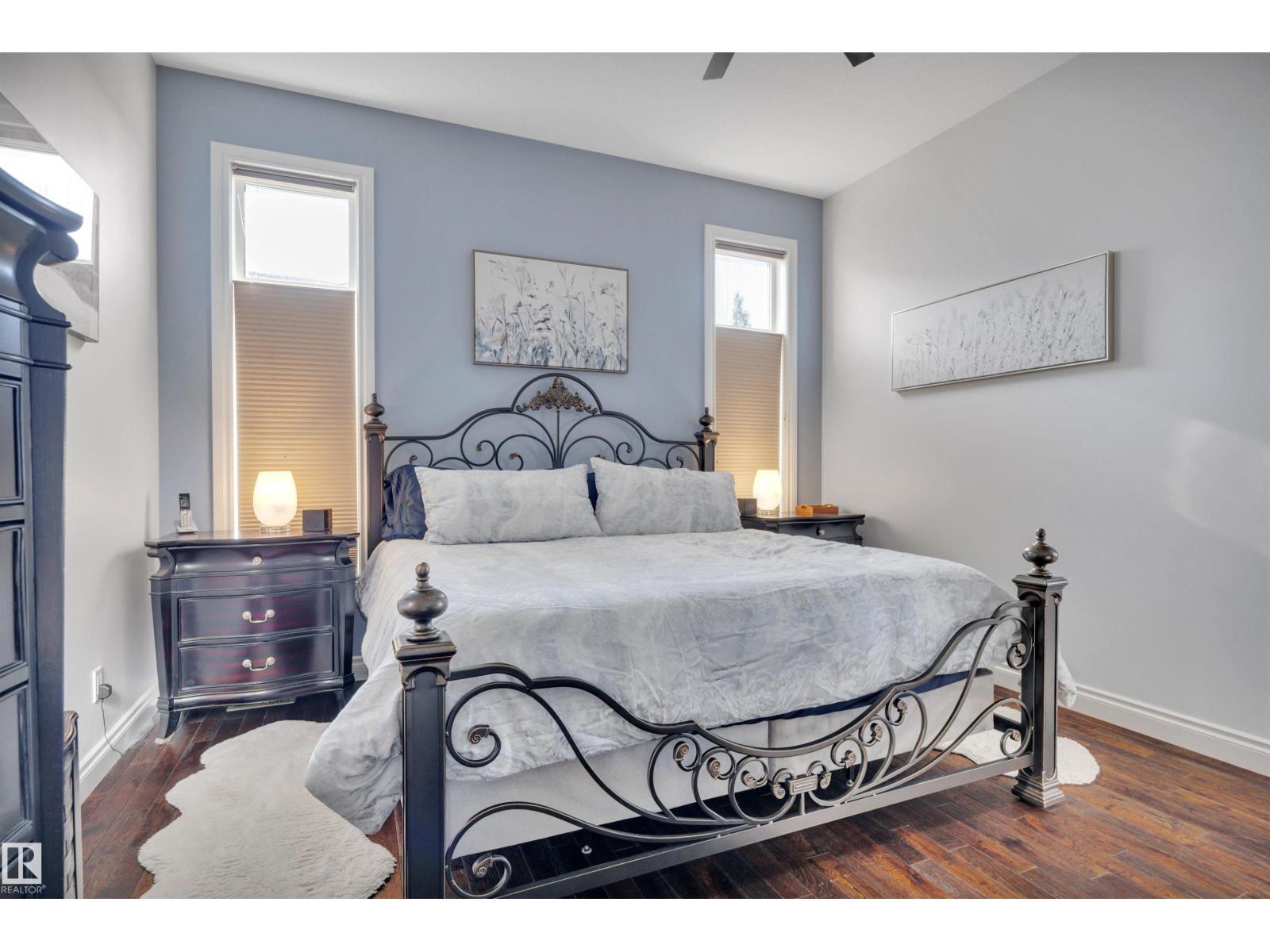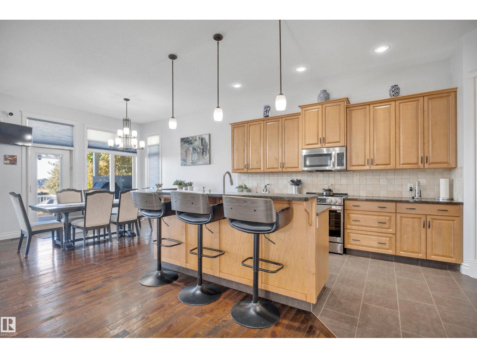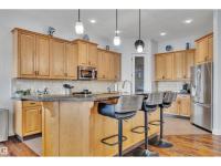 Welcome to your elevated Home2Love bungalow in Leduc—designed for comfort, connection & effortless living. The bright open-concept main floor showcases 10’ ceilings, rich hardwood floors, A/C & an abundance of natural light. The chef-inspired kitchen features a massive granite island & flows seamlessly into the spacious living area—perfect for everyday living & entertaining. Escape to your king-sized primary retreat with a large walk-in closet & relaxing soaker tub. A private home office, second bedroom & full bath complete the main level. The fully finished basement with 9’ ceilings is built to impress—featuring a stunning wet bar, space for a pool table & the ultimate setup for movie nights, game days or hosting guests. Two generous bedrooms & another full bath included below. Step outside to your maintenance-free deck with no rear neighbours—ideal for BBQs, quiet mornings & evening sunsets. The oversized heated garage offers incredible space & includes a mobility lift for easy access. (id:6769)