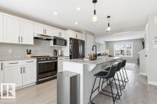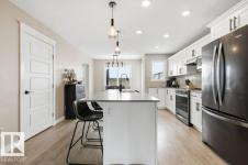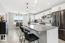 This 1399sq ft 2 story end unit row home has no condo fees is a must see. The property features 3 bedrooms, 2.5 bathroms, an open concept main floor, fully fenced and landscaped back yard and a double detached garage. The main floor is perfect for entertaining with with a spacious great room layout and vinyl plank flooring throughout. The kitchen has quartz countertops, upgraded black stainless steel appliances, a large centre island and a convenient pantry. The living room has space for your complete home entertainment setup. Don't miss the main floor laundry room and 2pc bathroom. Upstairs there are 3 bedrooms and a 4pc bathroom. The Primary bedroom can easily fit your king size bedroom set and has a sizeable walk in closet as well as a 4pc en-suite bathroom. The basement is unfinished but has a great future layout potential. The backyard is fenced and landscaped and ready for your enjoyment during the upcoming summer patio season. (id:6769)