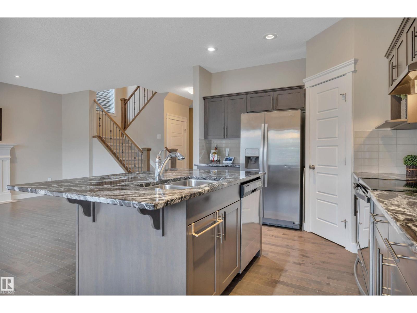 Welcome home to Glenridding, where this former Pacesetter SHOW HOME blends style, space, and an unbeatable location. Backing onto a scenic WALKING TRAIL and just minutes to Anthony Henday and Currents of Windermere, schools and parks, this 2286 sq ft home checks all the boxes. The open-concept main floor features gleaming hardwood floors, a bright living room with gas fireplace, and a versatile DEN, perfect for working from home. The gorgeous kitchen offers ample cabinetry, beautiful granite counters and a corner pantry for effortless everyday living. Upstairs you’ll find 4 BEDROOMS, a large bonus room, full bath, and a stunning primary retreat with walk-in closet and luxurious 5-piece Ensuite. The basement is ready for your personal touch. Enjoy a fully landscaped, south-facing backyard and double attached garage. This one truly has it all. (id:6769)