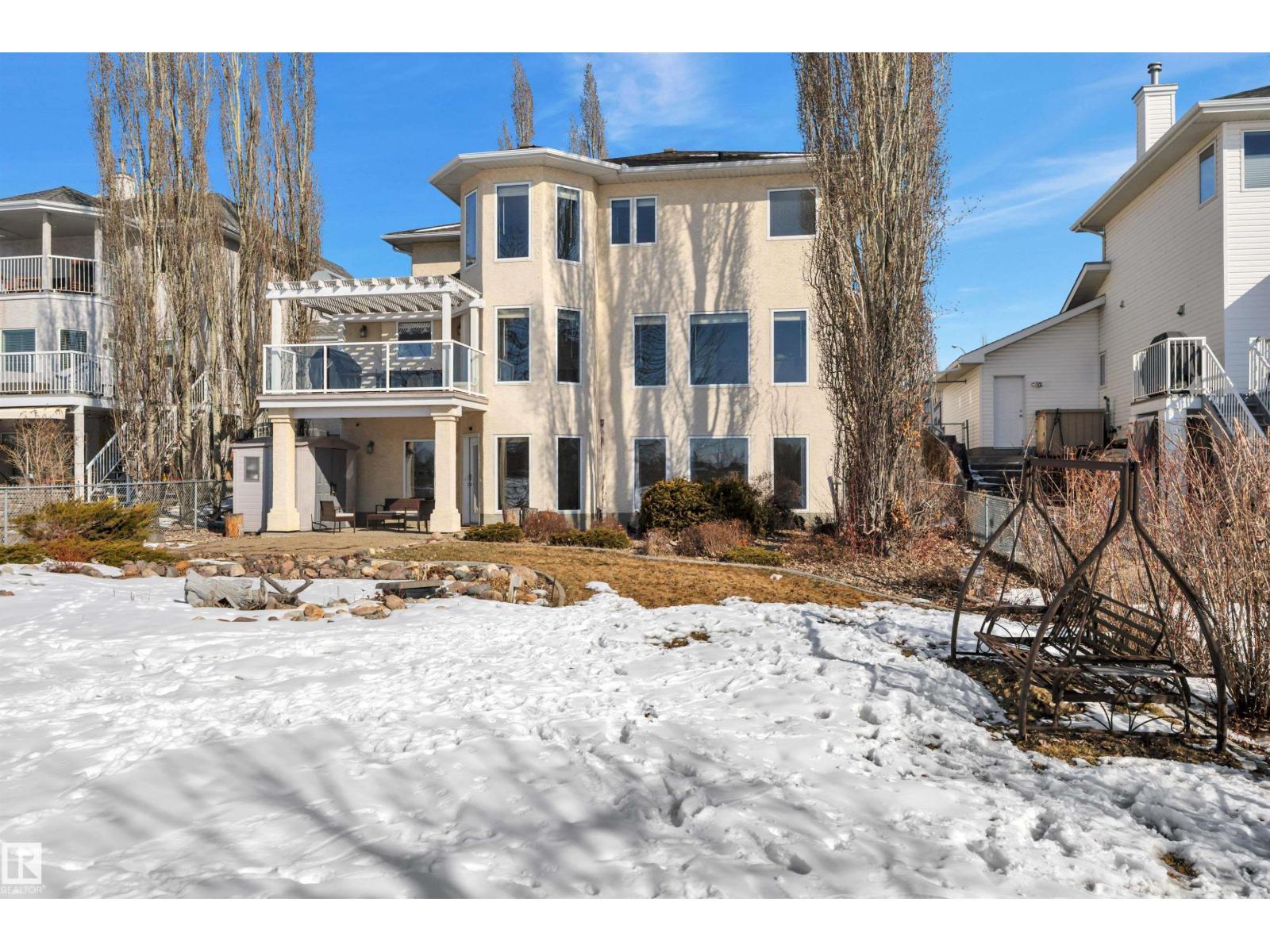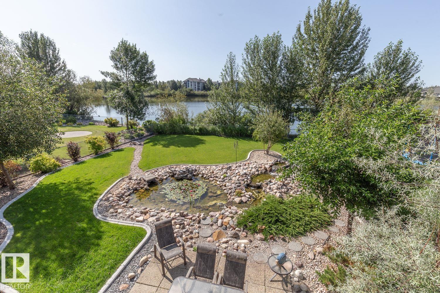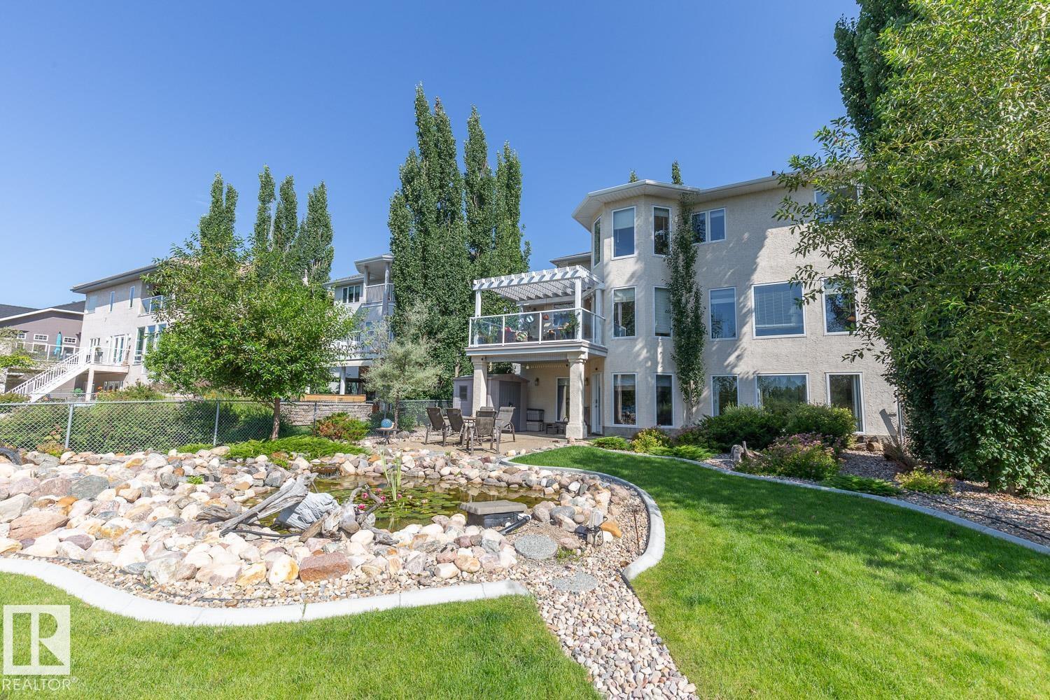 SPARKLING OPPORTUNITY IN HERITAGE HILLS. BACKING ONTO A LARGE LAKE (yes! you can kayak on this lake) this WALK-OUT home has it all. NO CARPET anywhere. 4 TOTAL BEDROOMS including the fourth bedroom and a FULL BATH in the basement which also features IN-FLOOR HEATING. Spacious 2600+ SF of living space above grade plus an additional 1300 SF on the lower level which leads onto your MAINTENANCE-FREE south facing backyard complete with a waterfall pond & a new WIFI controlled 10 Zone irrigation system that covers the front and back lawns. Stay cool in your AIR CONDITIONED home this summer. Enjoy family gatherings with lake views and steaks on the BBQ. Natural light streams through your massive vaulted window in your grand living room. Enjoy chilling in the family room facing the lake or your lower level rumpus room. Heritage Hills boasts beautiful wide streets, a nearby elementary school, a skating rink plus an OFF LEASH dog park. Another bonus is there is NO WALKING TRAIL at the back - SO PRIVATE! (id:6769)