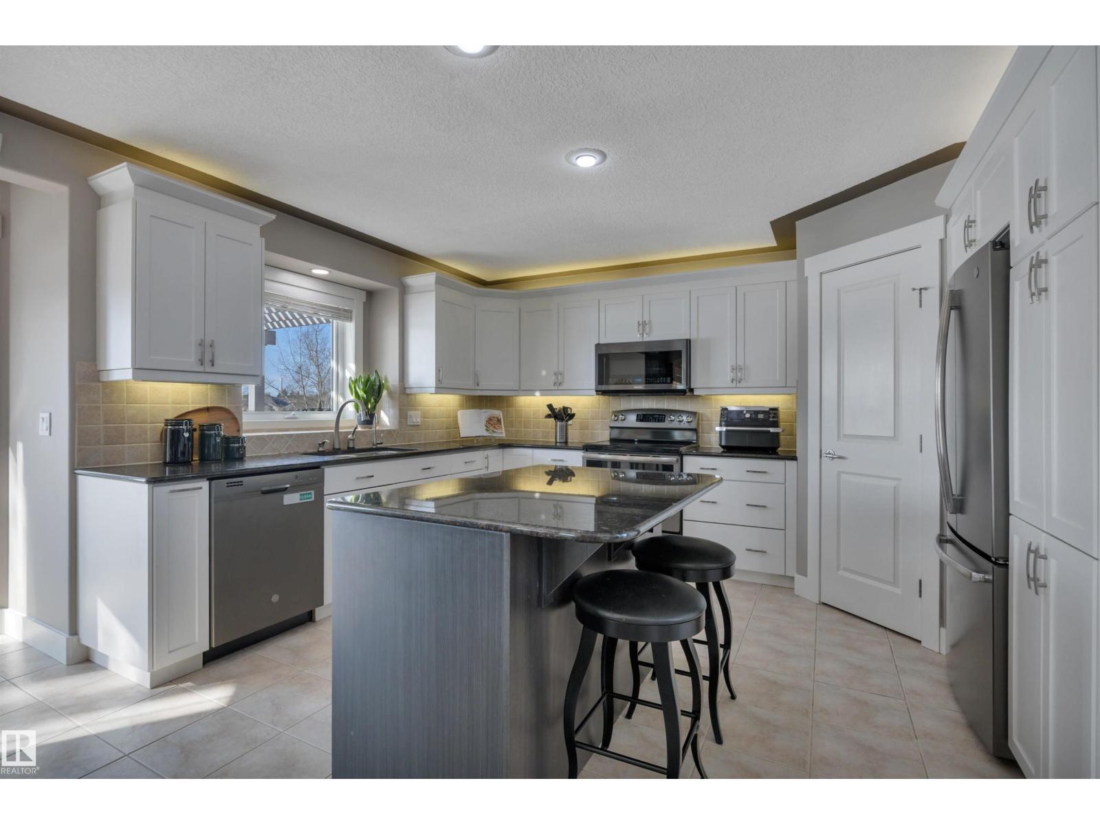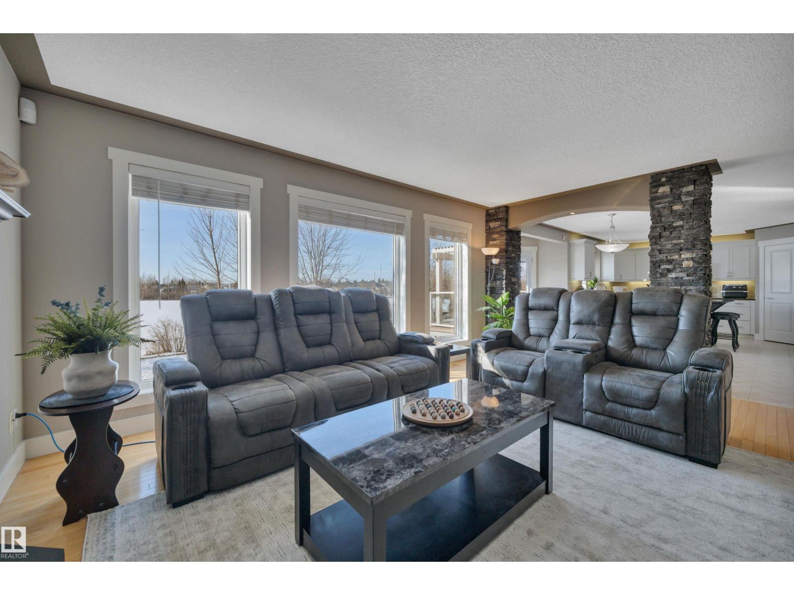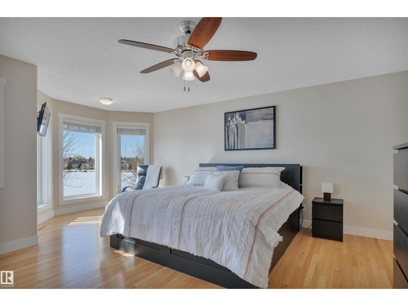 SPARKLING OPPORTUNITY IN HERITAGE HILLS. BACKING ONTO A LARGE LAKE (yes! you can kayak on this lake) this WALK-OUT home has it all. NO CARPET anywhere. 4 TOTAL BEDROOMS including the fourth bedroom and a FULL BATH in the basement which also features IN-FLOOR HEATING. Spacious 2600+ SF of living space above grade plus an additional 1300 SF on the lower level which leads onto your MAINTENANCE-FREE south facing backyard complete with a waterfall pond & a new WIFI controlled 10 Zone irrigation system that covers the front and back lawns. Stay cool in your AIR CONDITIONED home this summer. Enjoy family gatherings with lake views and steaks on the BBQ. Natural light streams through your massive vaulted window in your grand living room. Enjoy chilling in the family room facing the lake or your lower level rumpus room. Heritage Hills boasts beautiful wide streets, a nearby elementary school, a skating rink plus an OFF LEASH dog park. Another bonus is there is NO WALKING TRAIL at the back - SO PRIVATE! (id:6769)