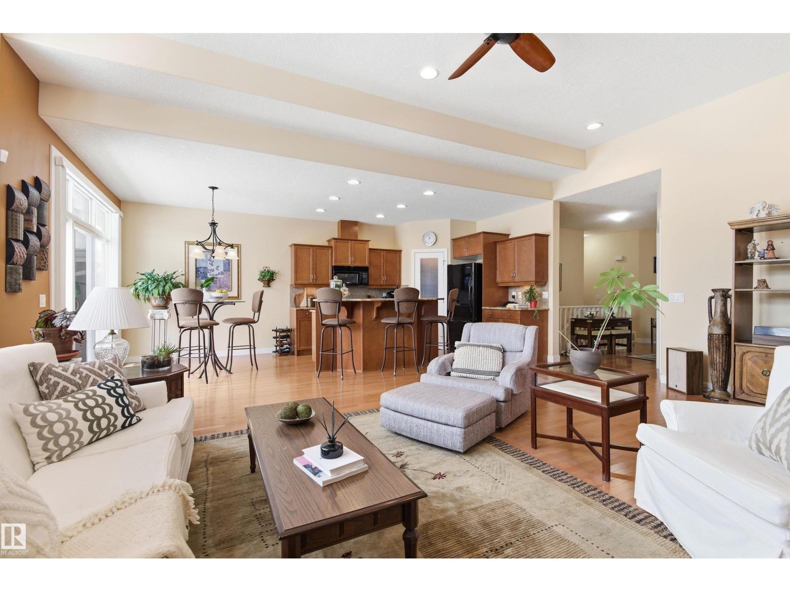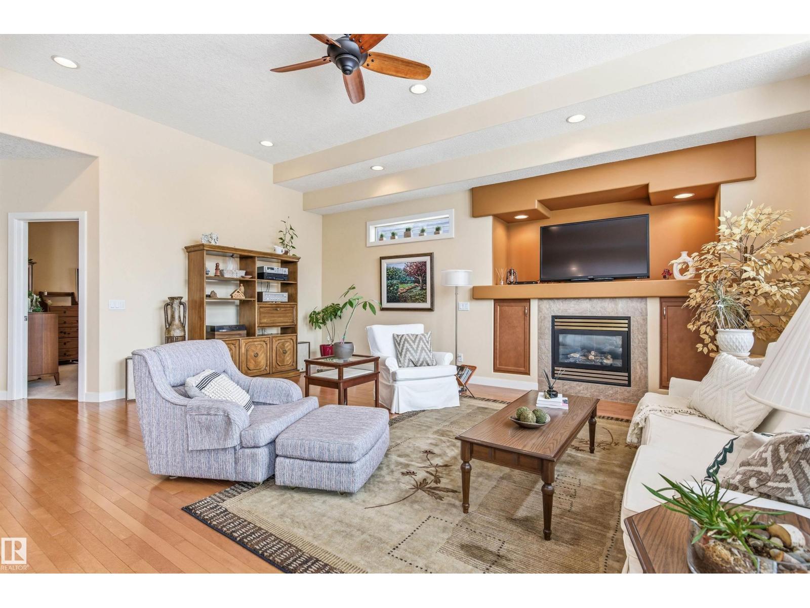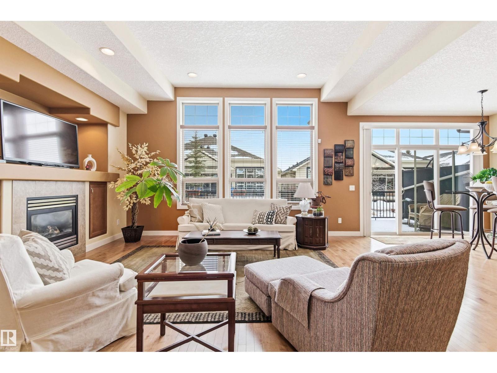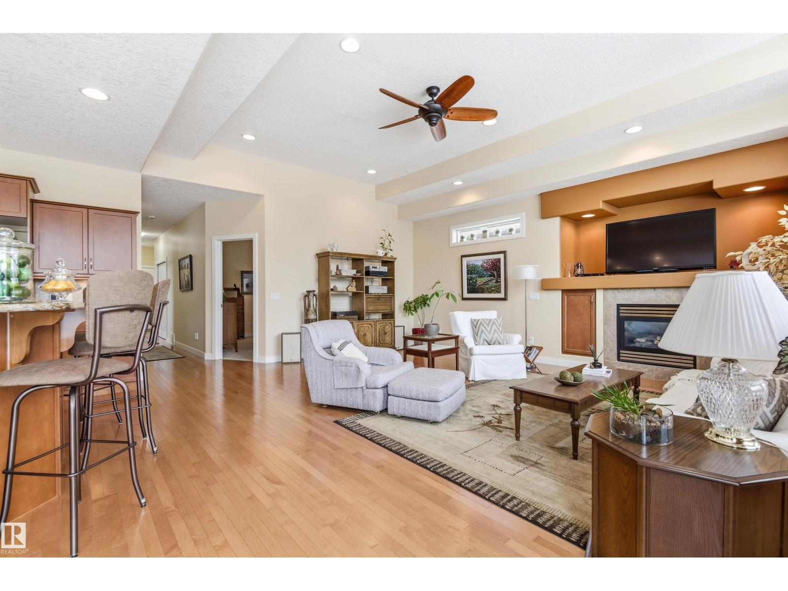 Beautiful bungalow-style condo in a quiet, low-maintenance complex designed for easy living. Offering over 2,200 sq ft of living space, this executive home features 11 ft ceilings, floor-to-ceiling windows, and a bright open-concept layout. The spacious kitchen showcases granite countertops and updated appliances, flowing seamlessly into the living and dining areas—perfect for entertaining. The main floor includes a large primary suite, additional bedroom or office, and convenient laundry. The fully finished basement adds incredible flexibility with a rec room, games area, wet bar, double-sided fireplace, guest bedroom, and full bath. Recent upgrades include a newer roof and air conditioning for year-round comfort. Complete with a double attached garage and located near walking trails, amenities, and transit—this is low-maintenance luxury living at its finest. (id:6769)