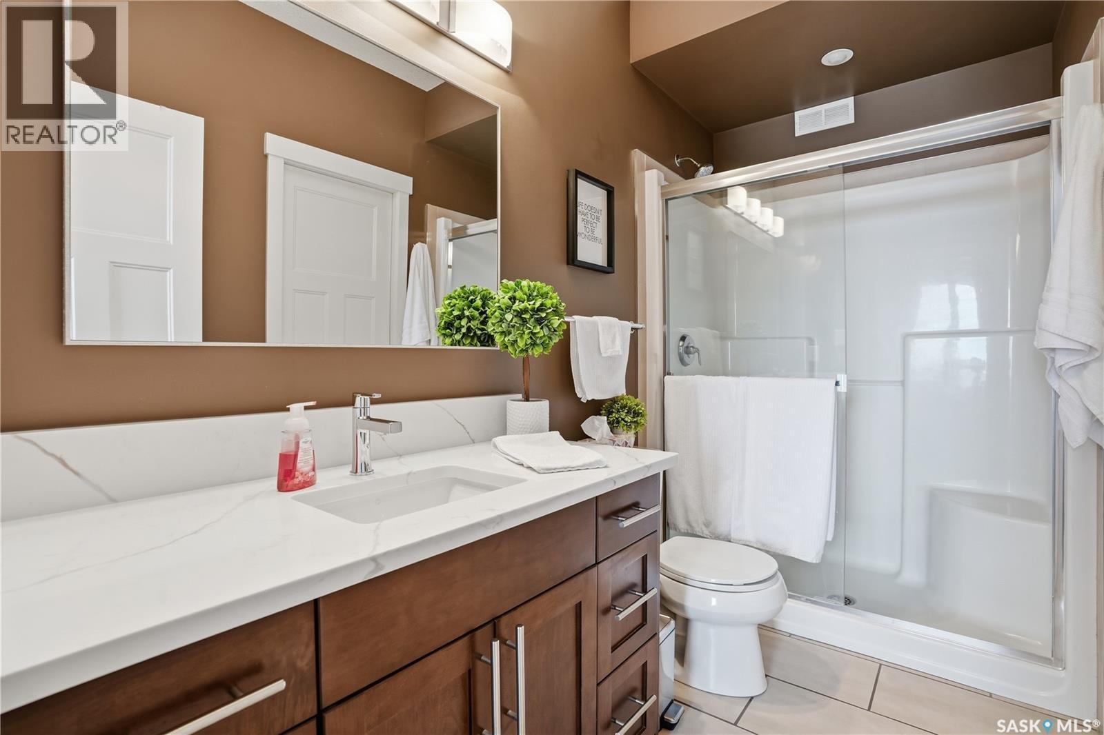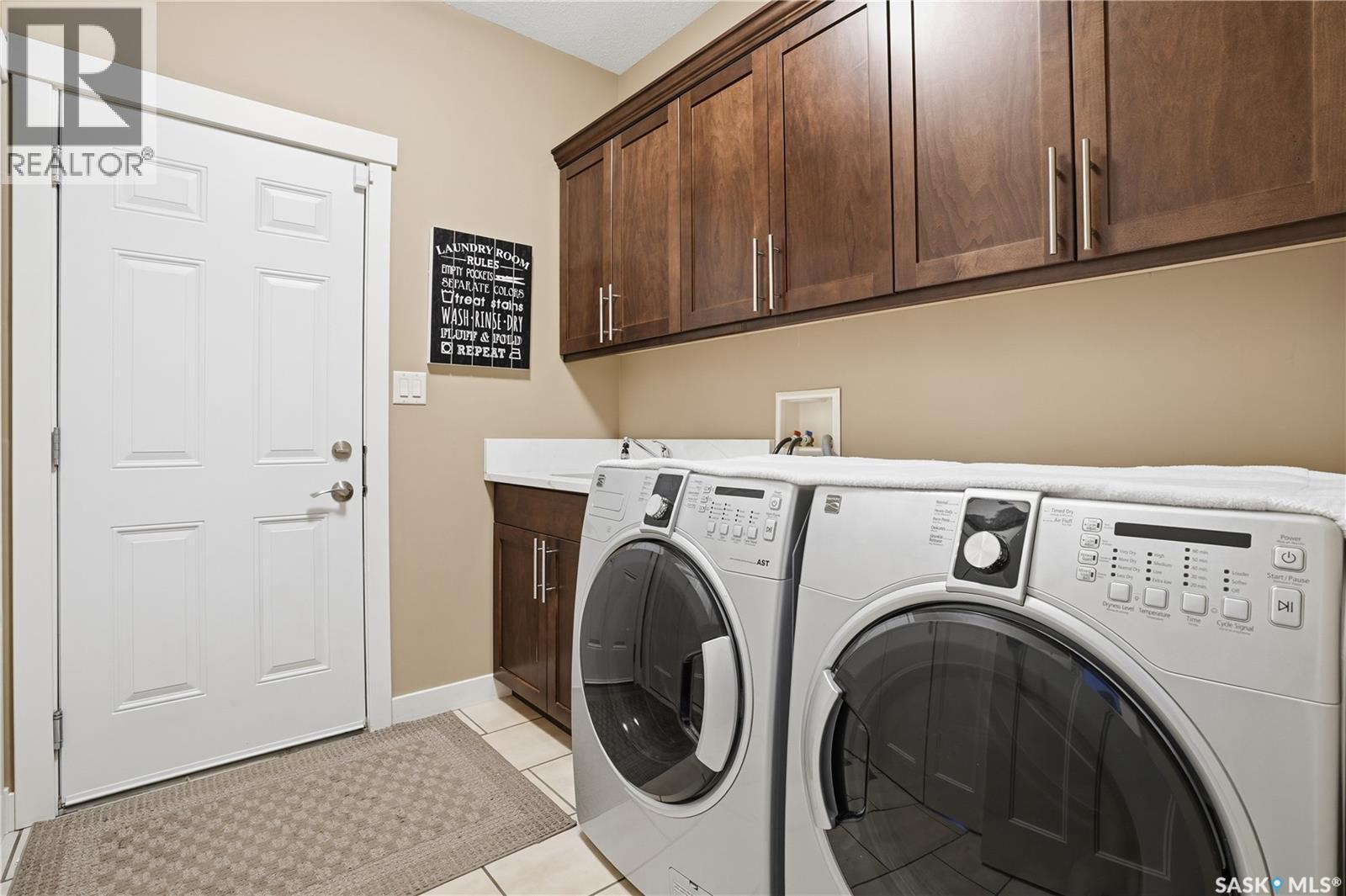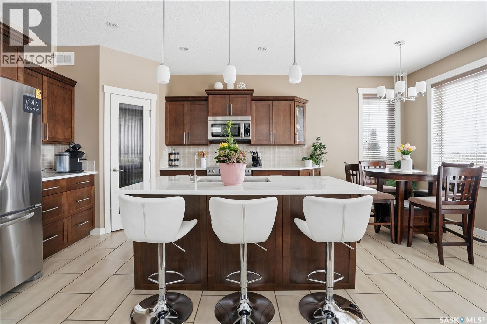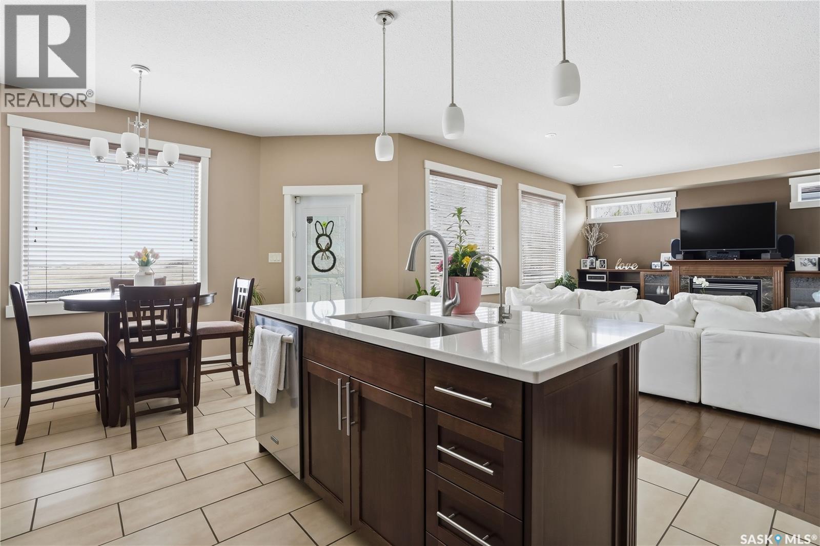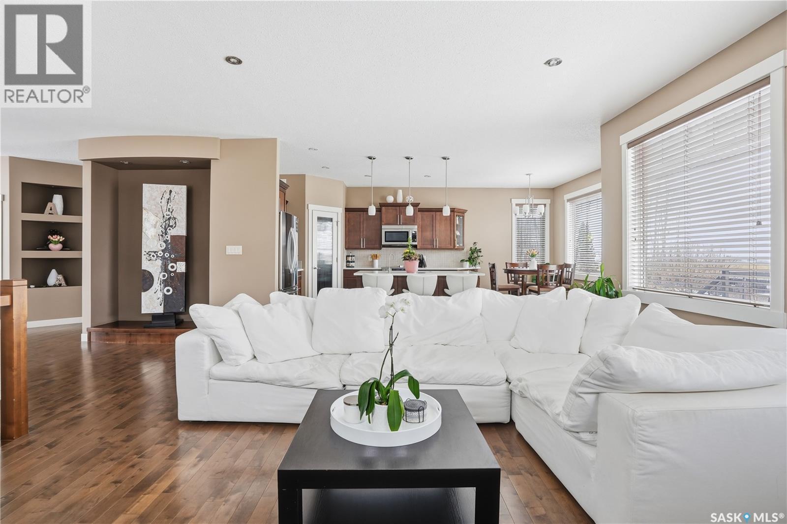 Welcome to 68 Fairway Crescent in White City, this original owner 5 bedroom 1646 sq ft bungalow home was custom built by Camelot Homes. Setting a high standard in Quality & Design which boasts 9ft ceilings throughout the entire main floor. The foyer is highlighted by a stunning front entry with ceramic tile flooring, 3 lighted wall niches, double closet with privacy glass. Maple hardwood floors flow seamlessly throughout the living room, which offers a gas fireplace with a Maple & marble mantle, pot lighting, and three large windows overlooking the backyard. The stunning kitchen with eating area offers slow close maple cabinets, a corner walk-in pantry with automatic light, Quartz countertops, pendant lighting over the island, chandelier lighting over the eating area with large windows, and above & under counter lighting. The four-piece main bath is perfectly detailed with a Maple vanity, oversized Maple linen closet, Quartz countertops, and soaker tub surround. Escape to the master bedroom boasting pot lighting, maple hardwood floors, lighted walk-in closet and a three-piece ensuite featuring glass door shower with seat, ceramic tile flooring & Quartz countertops. The secondary bedroom offers a lighted double closet with bi-fold doors and the continued Maple hardwood flooring. The main floor laundry with stainless steel sink off the hallway accesses the garage and completes the main level. The spacious basement family room is a great space for entertaining, offering carpet, pot lighting, and opens to an additional bonus room which can be used as an exercise or games room. Fitness equipment is in included. The two basement bedrooms are generously sized and both offer lighted closet space, large windows. The exterior front of the home and garage is finished Acrylic stucco with stack stone accents, an exposed aggregate driveway & Trex decking in front, 12.2 x 21.6 back Trex deck with glass railing & an oversized California style 26x30 double attached garage. As per the Seller’s direction, all offers will be presented on 04/13/2026 3:00PM. (id:6769)