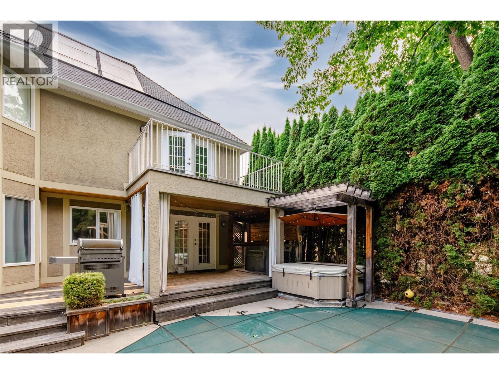 Beautiful, private 0.24-acre yard on treed property backing onto Bellevue Creek with a saltwater pool, hot tub, pergola, outdoor gas fireplace, and multiple patios/decks. Inside, the granite kitchen with stainless appliances opens to a family room with gas fireplace and direct yard access. Formal living and dining with French doors extend the entertaining space. Main floor also offers a bedroom/office, full bath, and mudroom with laundry chute. Upstairs are 4 bedrooms plus a bonus room (or 5th bed). The primary retreat overlooks the yard with private deck, walk-in closet, and ensuite with heated floors, soaker tub, and separate shower. Updated roof, furnace, A/C, hot water tank, granite counters, appliances, and fresh paint. All this just a short walk to beaches, restaurants, shops, schools, and more! (id:6769)